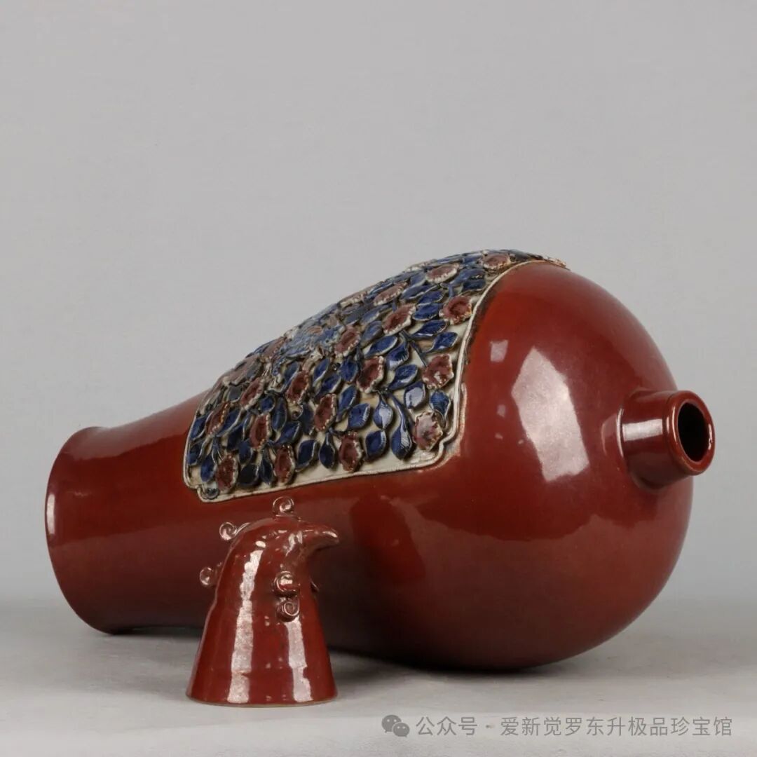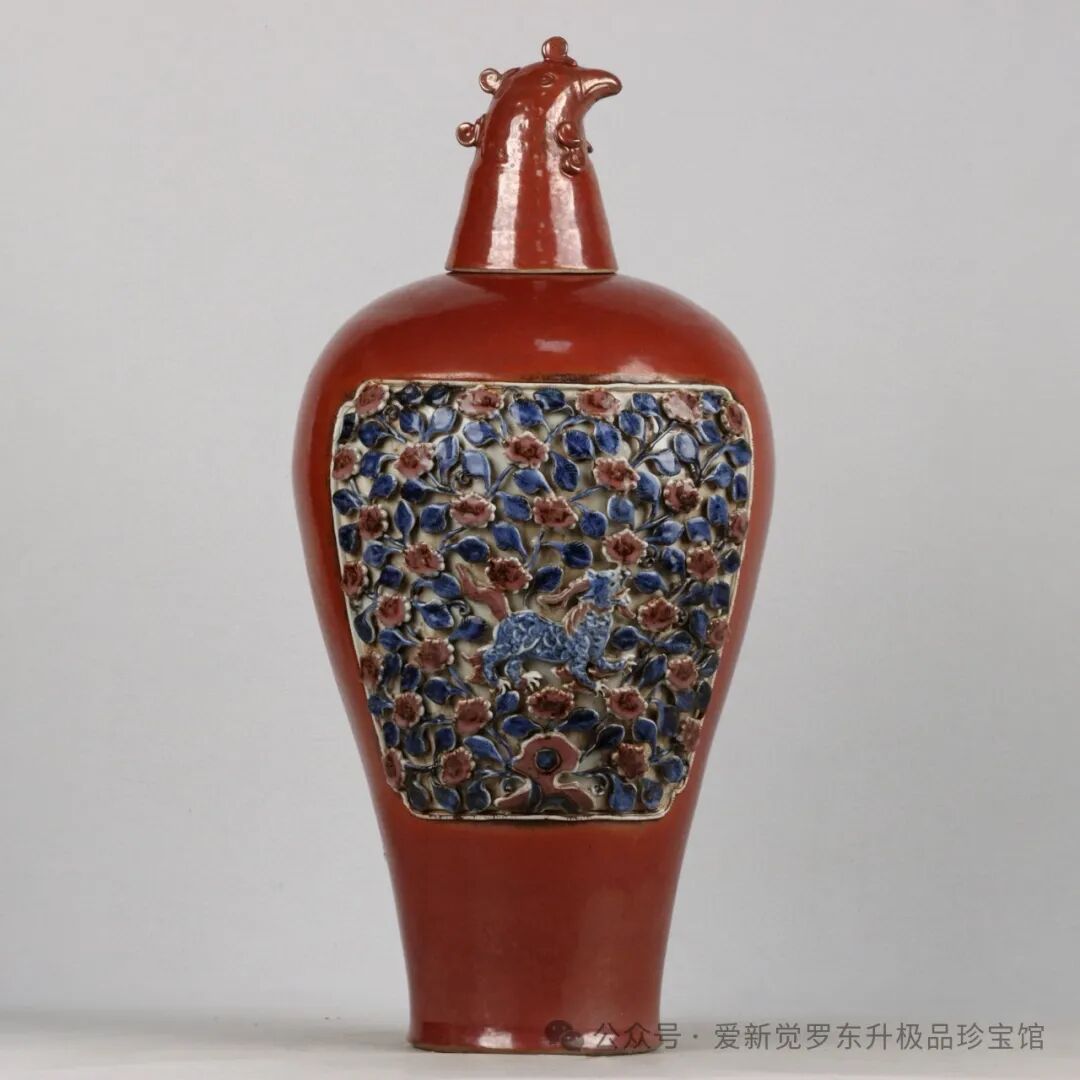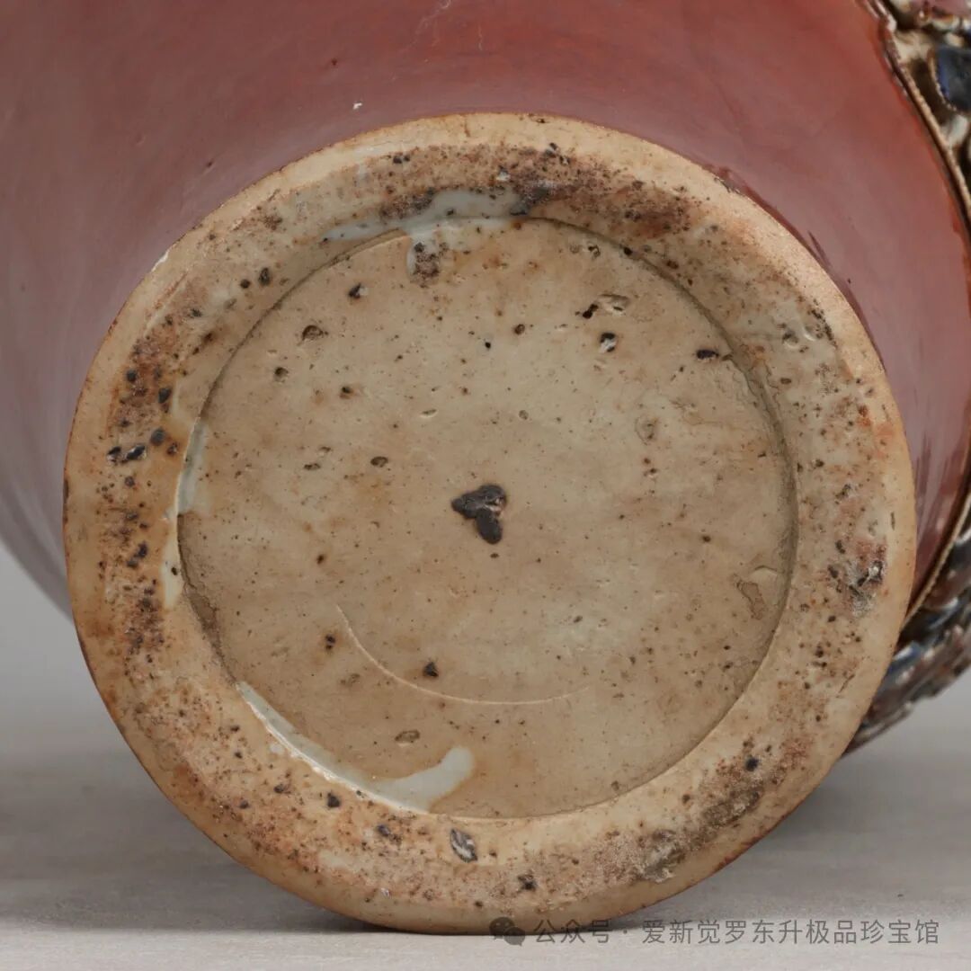 2. 釉里红釉里红是元代瓷器中的另一大特色。它以铜红料为着色剂,在瓷坯上绘制花纹,然后罩上一层青白釉,经高温烧制而成。釉里红的色彩鲜艳明快,器型以碗、盘、瓶等为主,装饰图案多为花卉、人物等,风格独特。