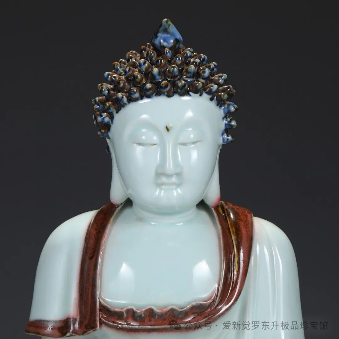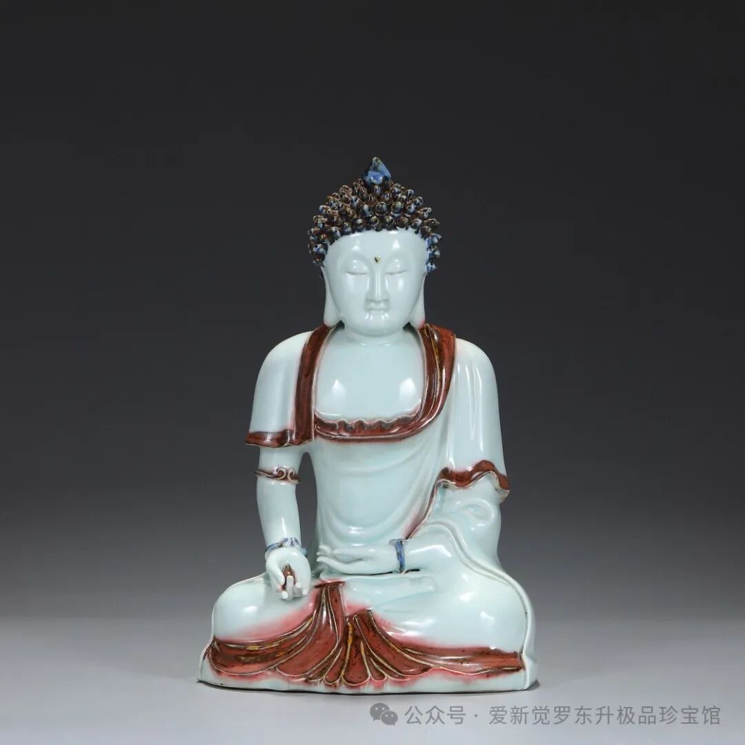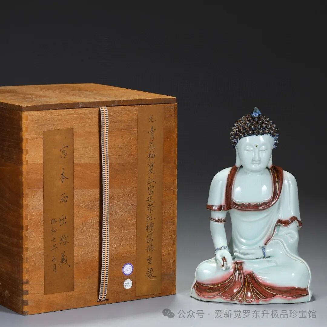 旧藏 元代 青花釉里红宫廷祭祀礼器佛坐像 尺寸:高31.5公分 长19.5公分