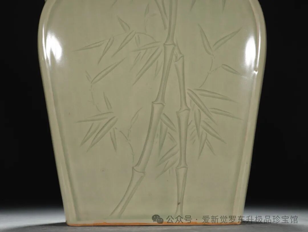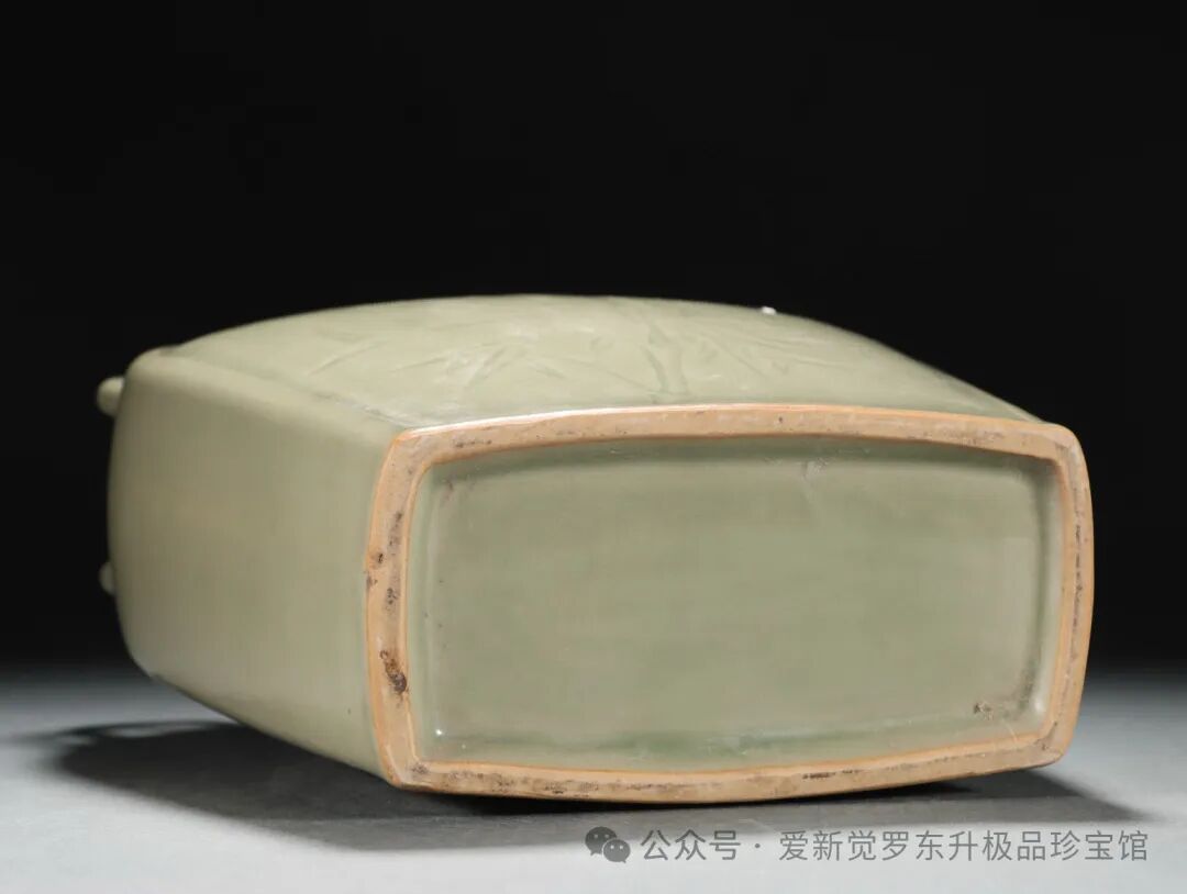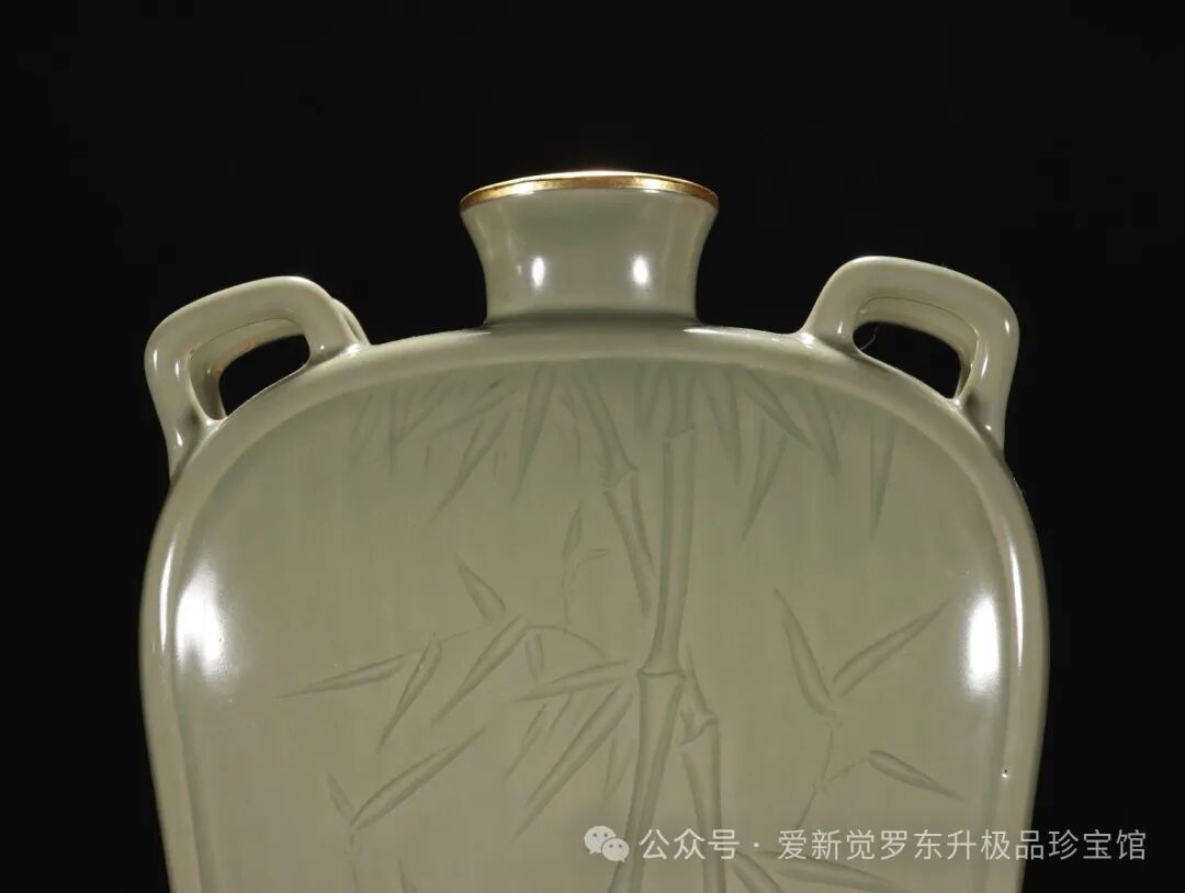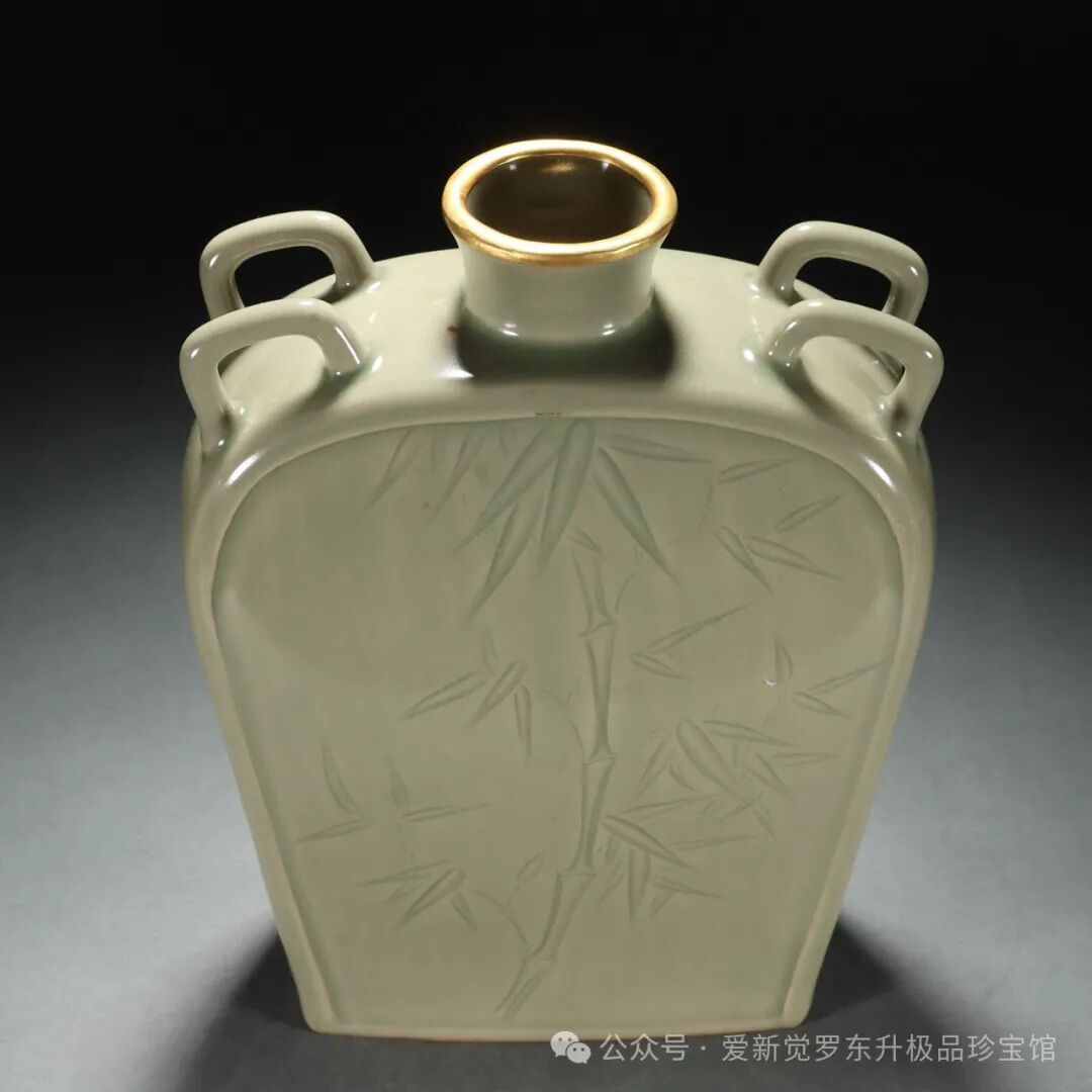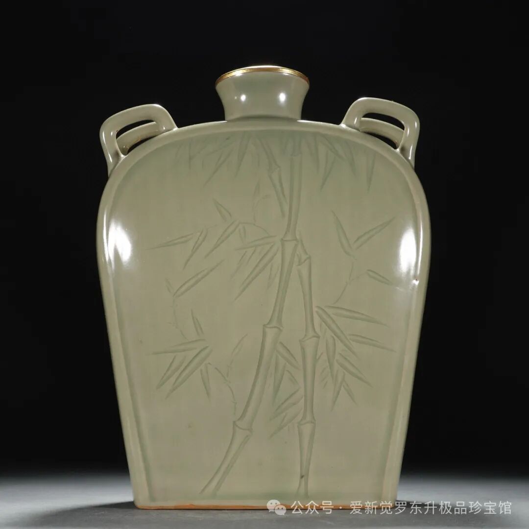 3. 多元文化的融合元代瓷器不仅继承了宋代、金代瓷器的优良传统,还吸收了中亚、西亚地区的文化艺术形式,呈现出多元文化融合的特点。这种文化交融不仅丰富了元代瓷器的艺术内涵,也为中国陶瓷史留下了宝贵的遗产。元代 青瓷竹节纹酒壶规格:宽20㎝高26㎝重1612g