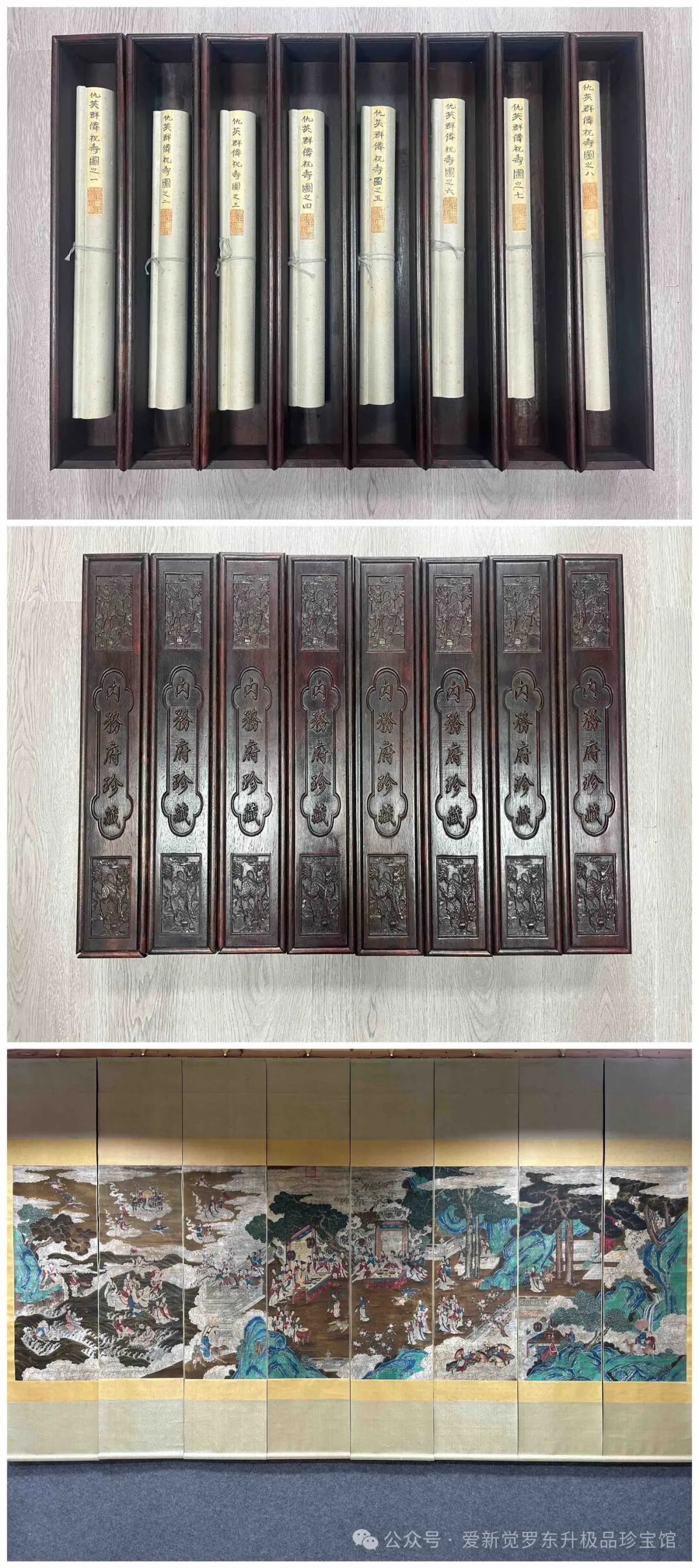 旧藏.明.仇英.精品丝绢(群仙祝寿图)画心尺寸:47cm*120cm。