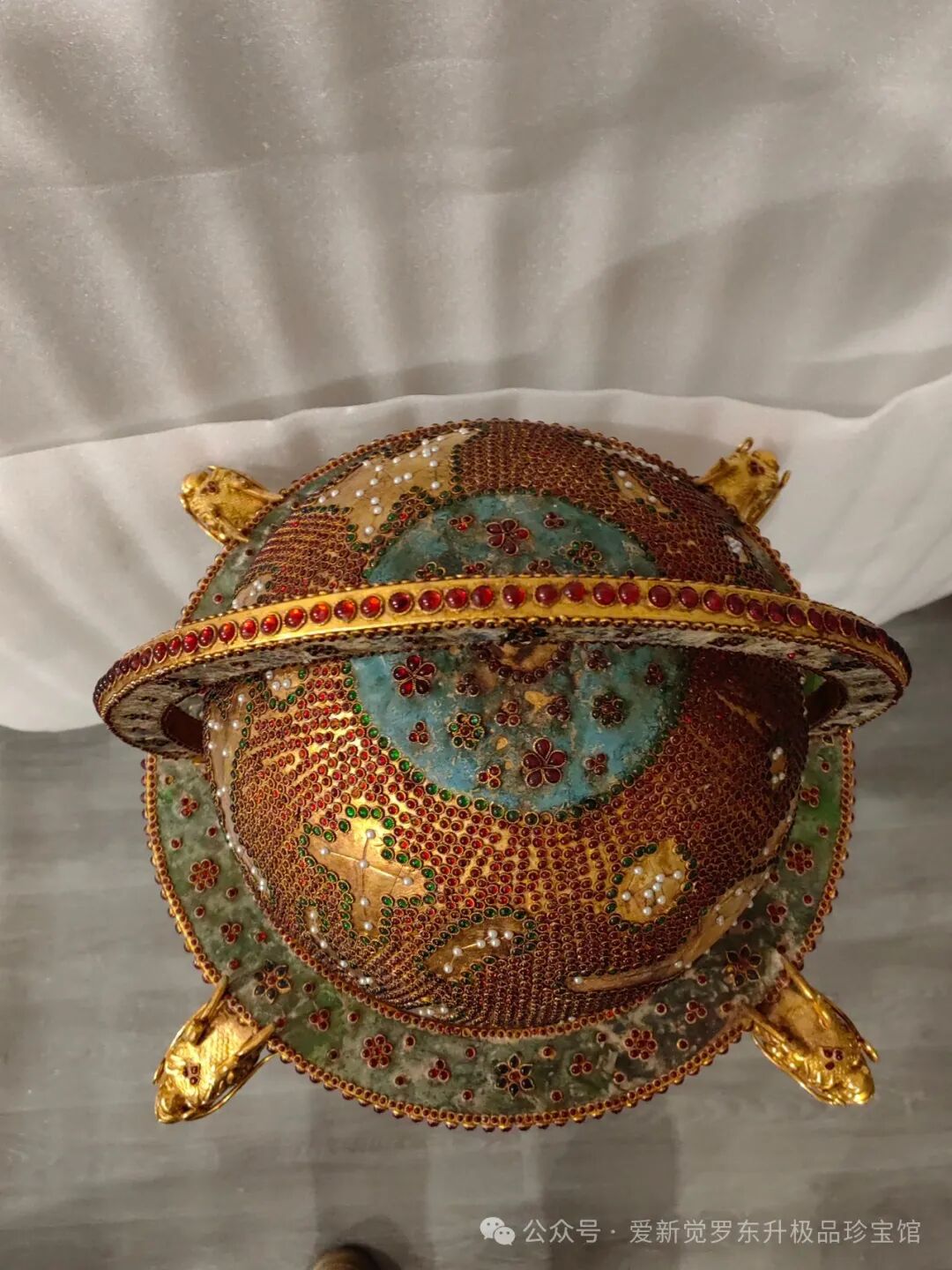 更为难得的是,这件地球仪上还镶嵌着珍贵的红宝石。这些红宝石宛如夜空中最亮的星星,点缀在地球仪的各个角落,不仅增添了地球仪的华丽感,更是寓意着乾隆皇帝对于天下万民的庇佑与祝福。