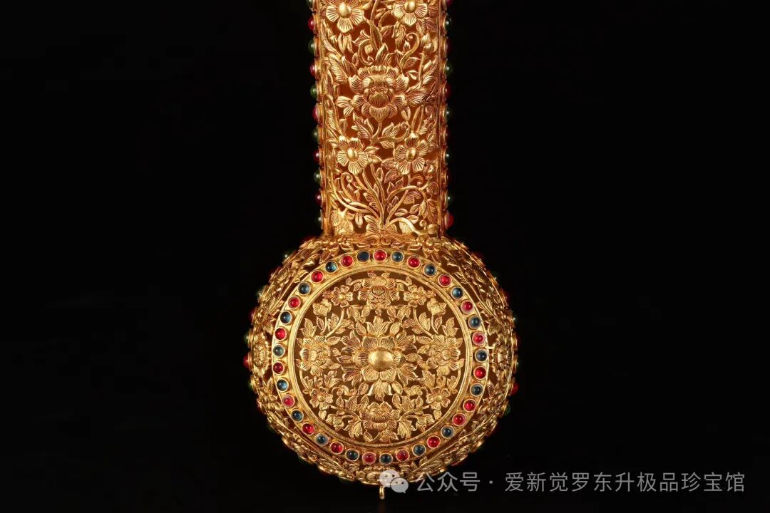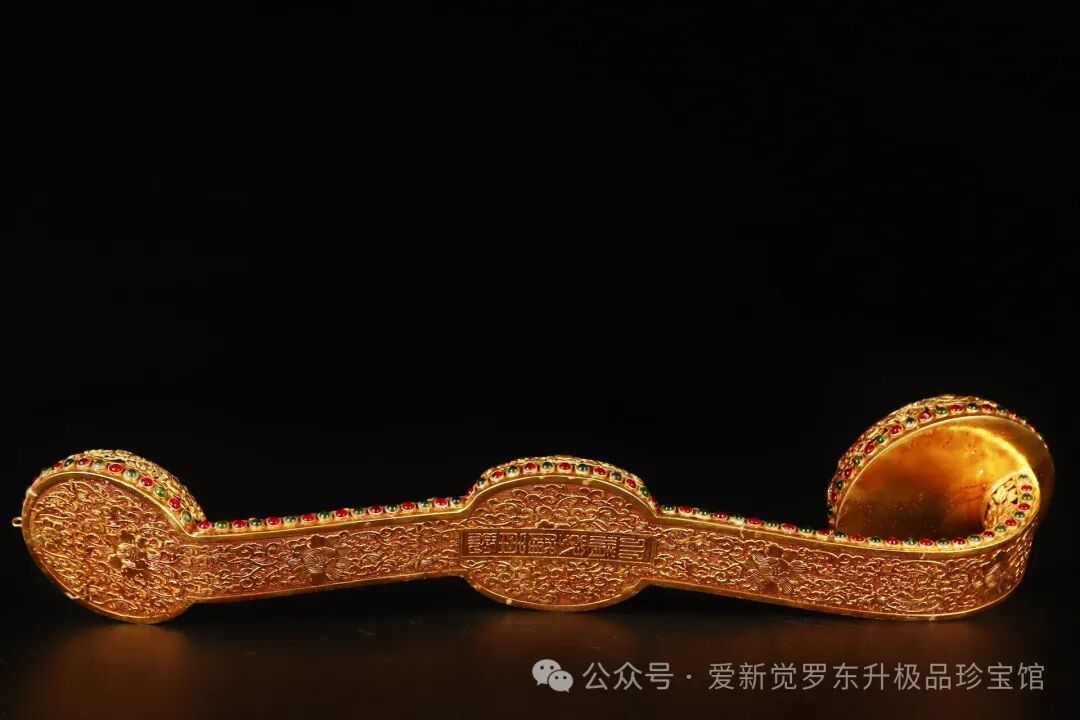 乾隆皇帝对这件如意的喜爱,不仅仅是因为它的工艺精美,更是因为它所蕴含的美好寓意。如意,自古便是吉祥如意的象征,代表着人们对美好生活的向往和追求。而这件铜鎏金镂空如意,更是将这份美好寓意发挥到了极致。