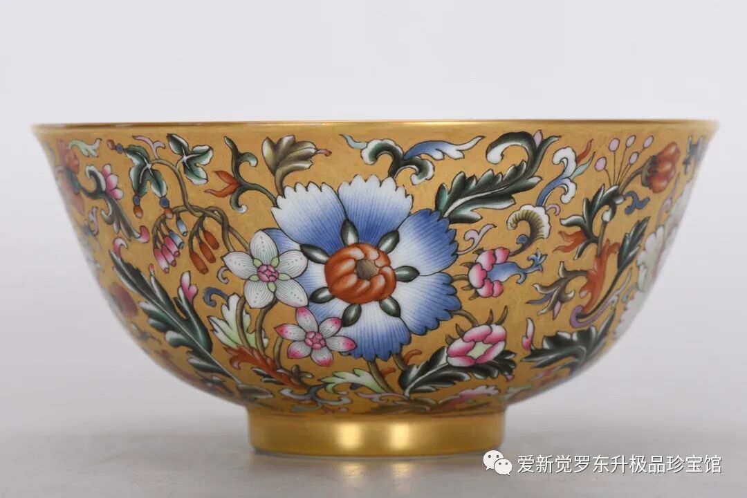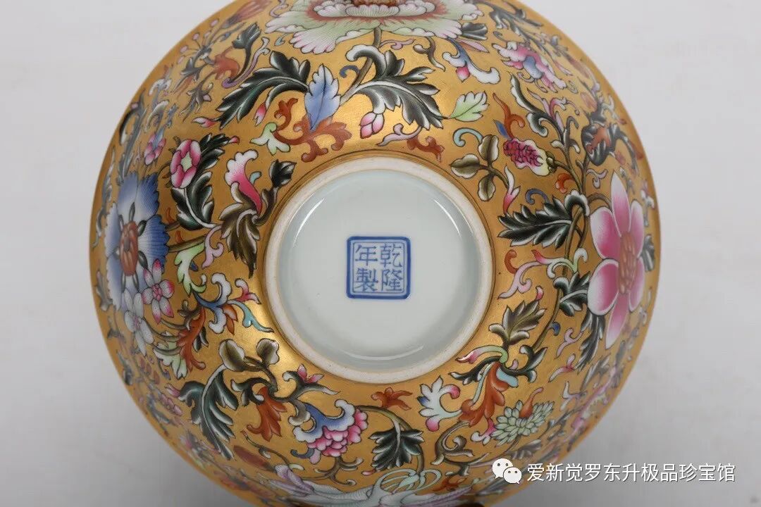 清乾隆,珐琅彩金地图案花卉碗,高7.3厘米,口径15.3厘米,底径5.7厘米。