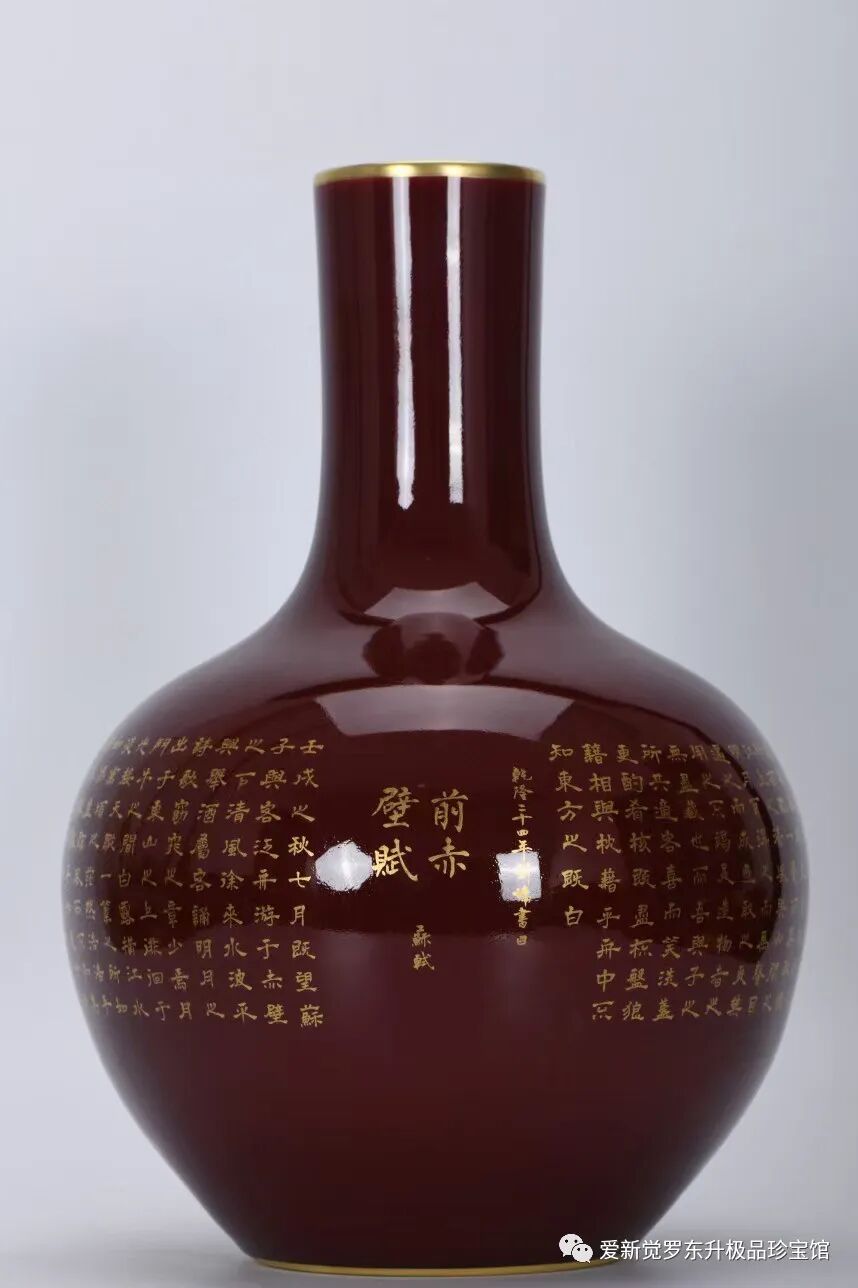 大清乾隆祭红描金写诗(前赤壁赋),天球瓶,高41.7厘米,肚径26.1厘米