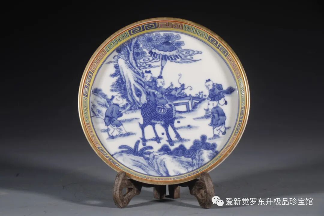 清雍正:青华加彩麒麟送子盘子壶沉高2厘米 直径16厘米 底径12.5厘米