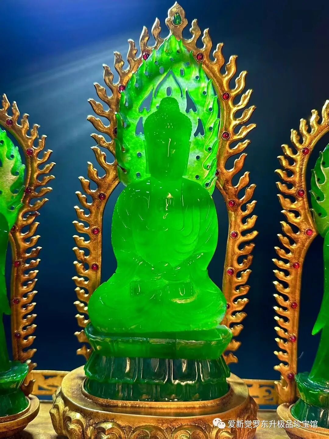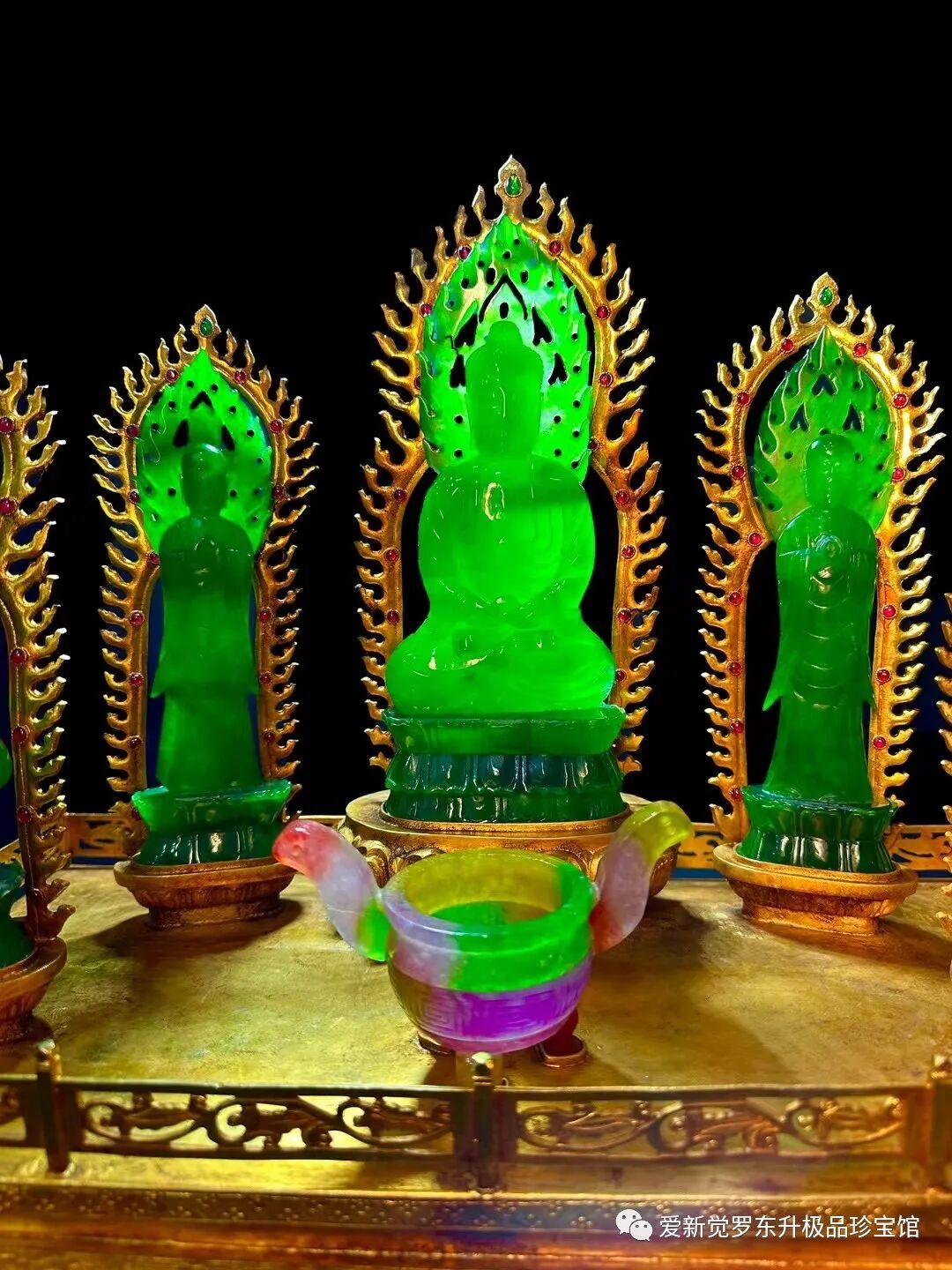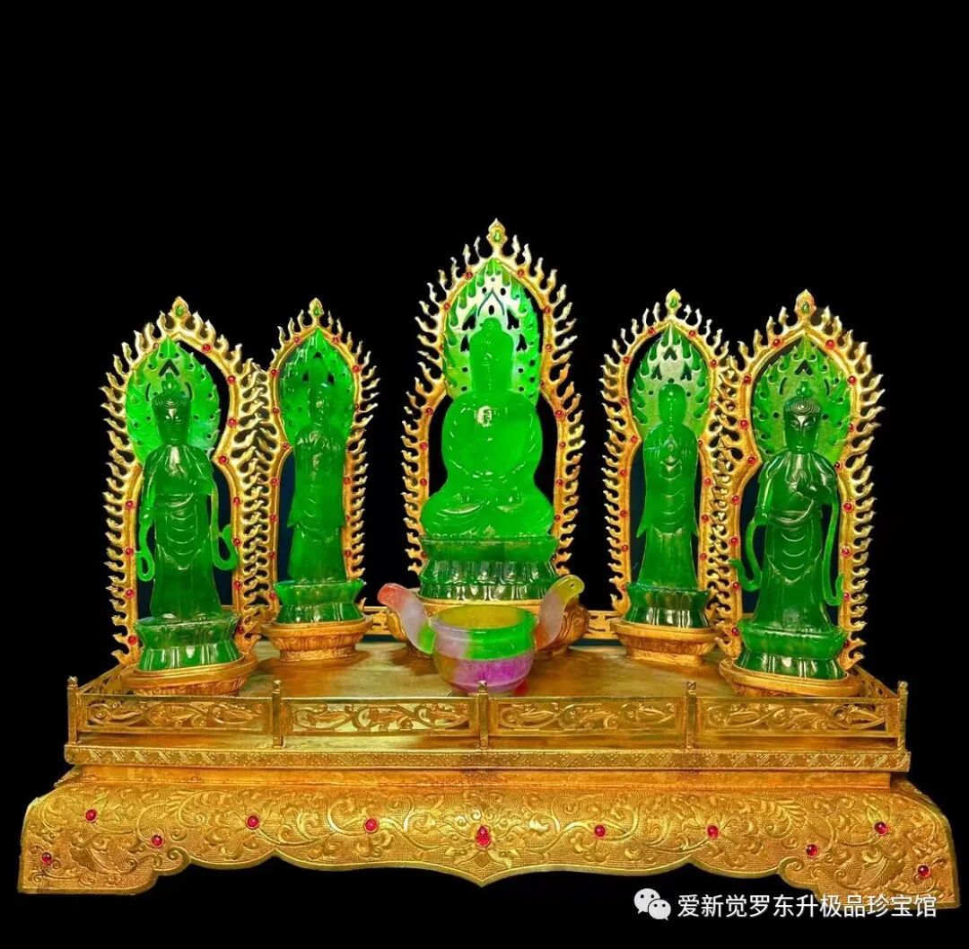 旧藏清代老翡翠 鎏金精工工艺【大日如来佛 众佛听经】高35cm、长43cm、宽25cm总重11斤