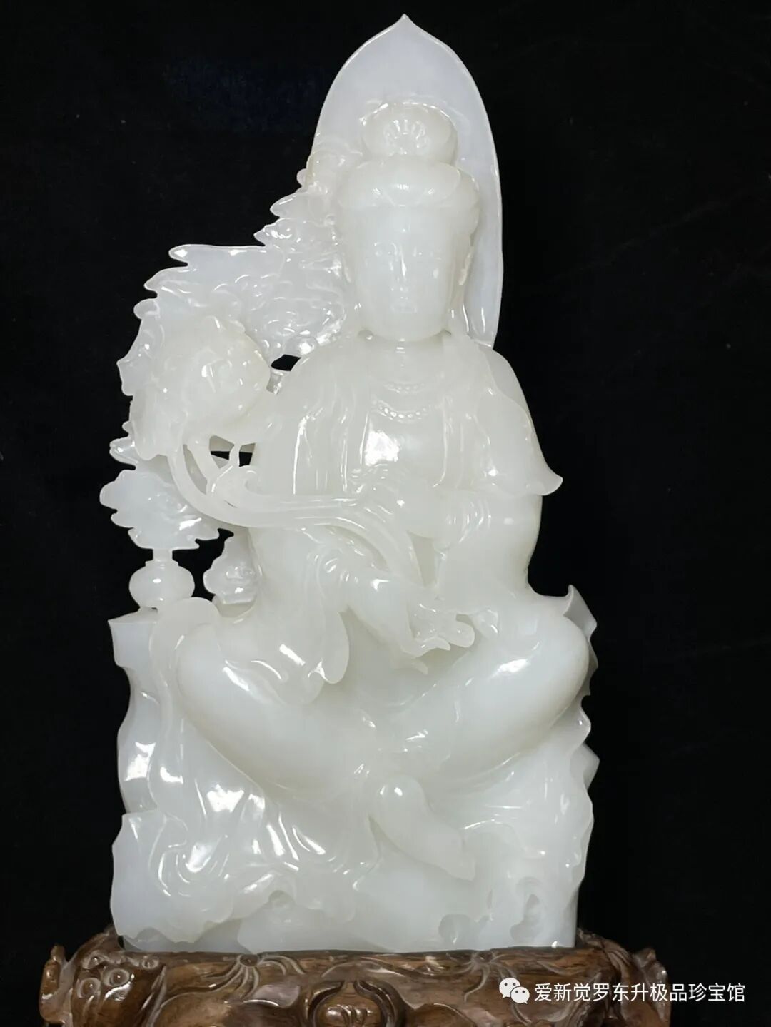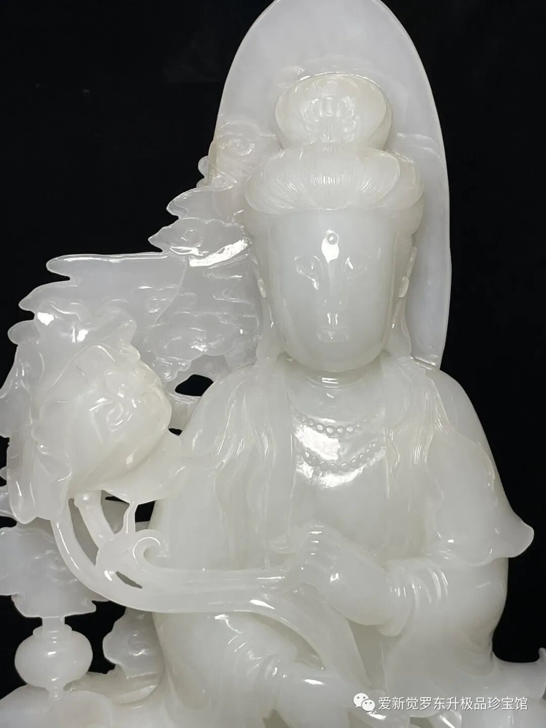 和田玉羊脂观音摆件,普度众生,护佑平安,一心向善,雕工精湛传神,刻画细致入微,玉质细腻白润,收藏佳品。净尺寸305×175×55mm净重3260g