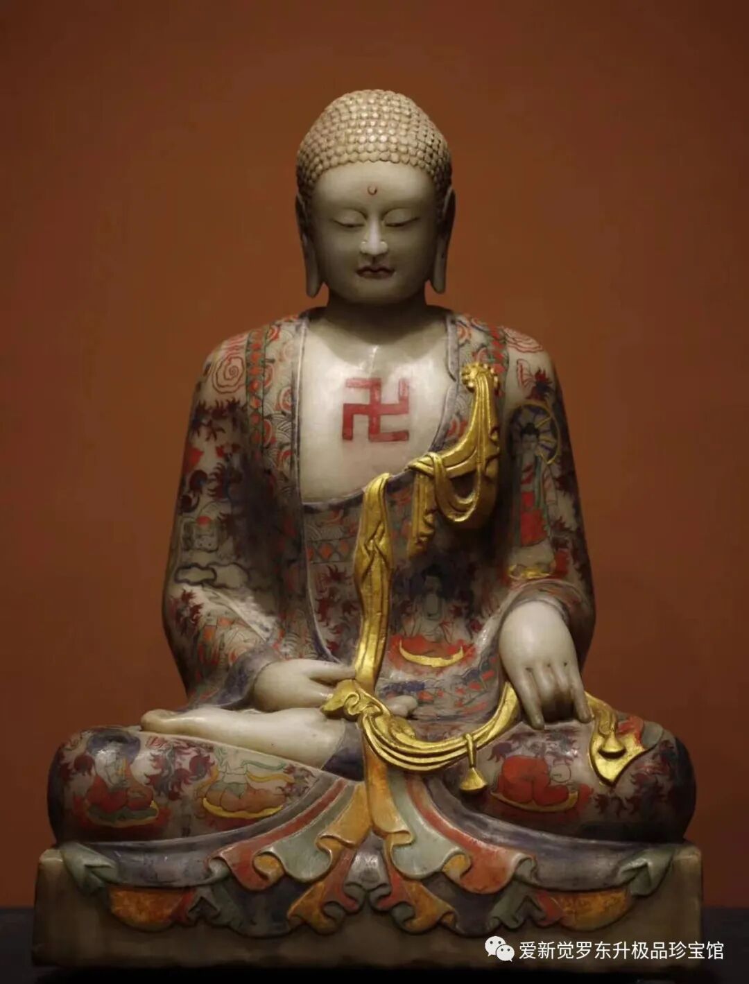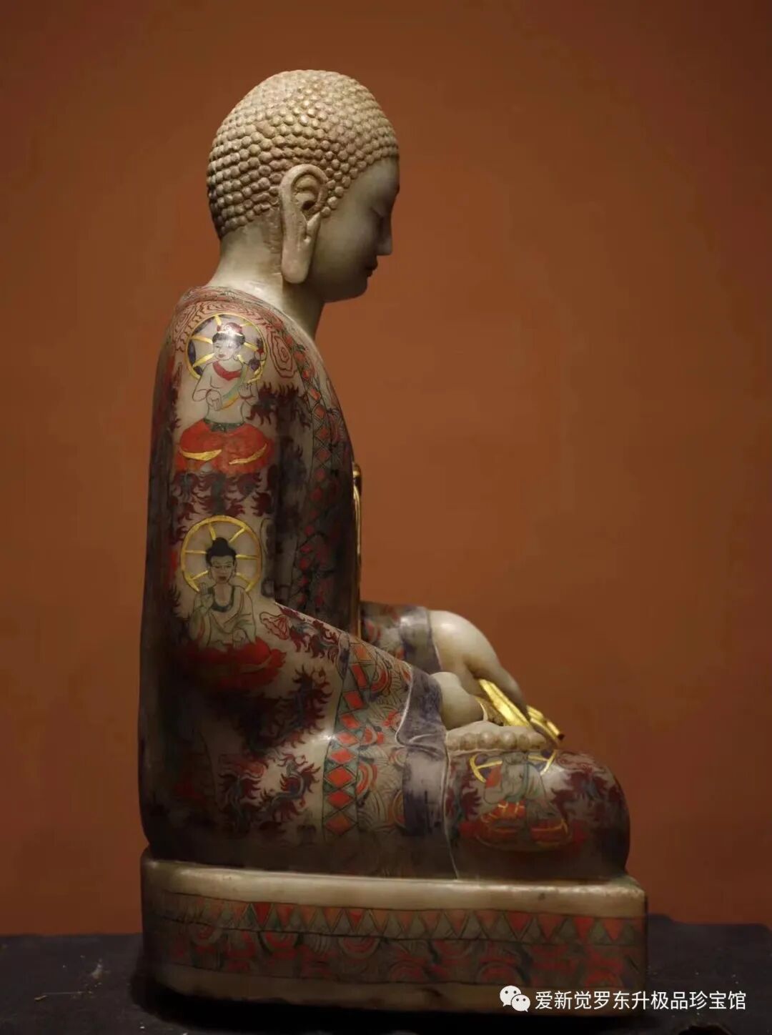 汉白玉 彩绘佛像满彩绘佛像,法相庄严高70公分、宽47公分、厚36公分、