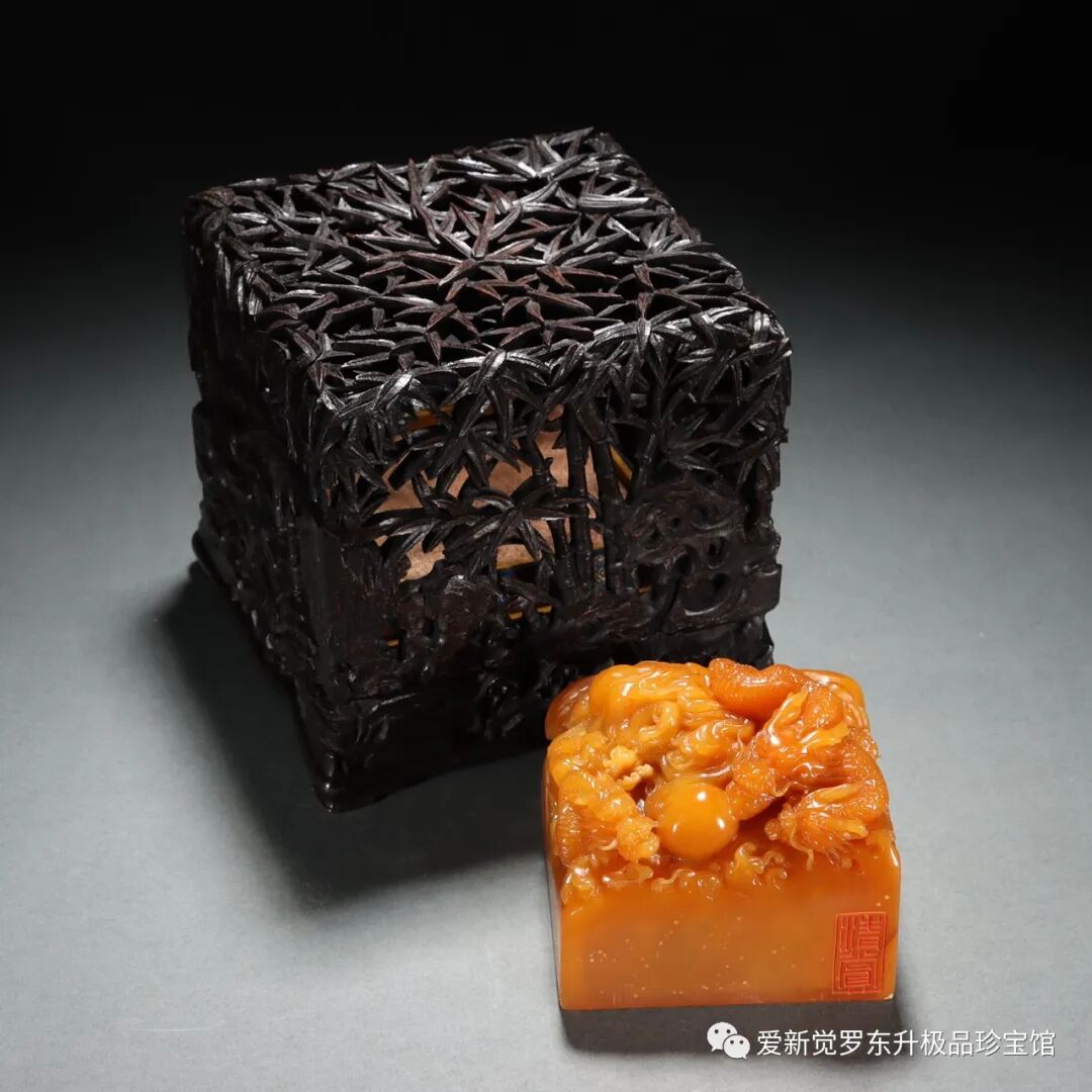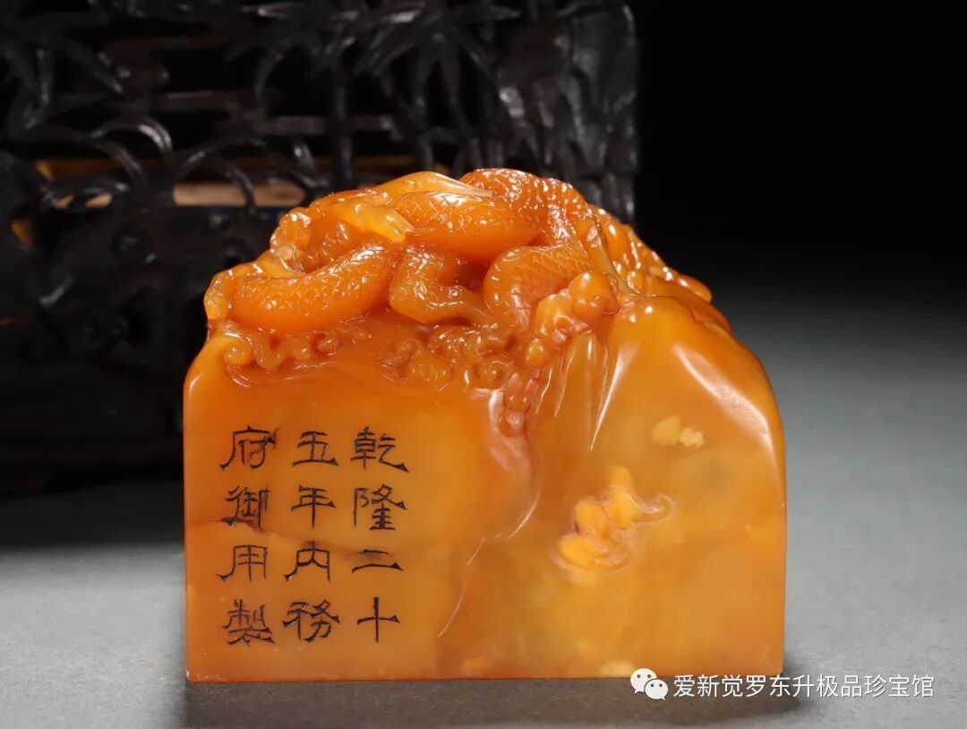 清 乾隆内务府田黄五龙钮大印规格:宽9㎝高7.3㎝重1123g