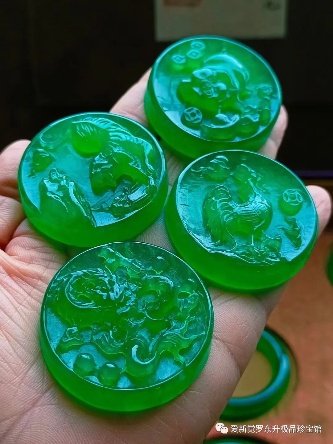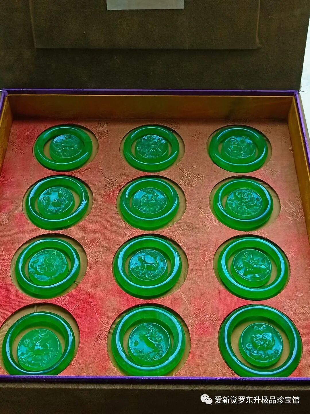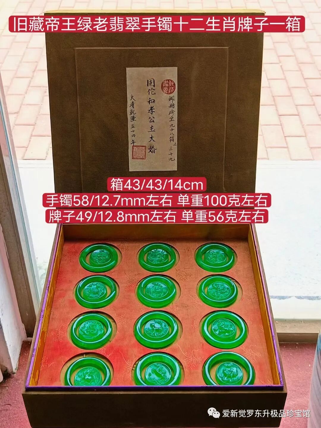 旧藏帝王绿老翡翠手镯十二生肖牌子一箱