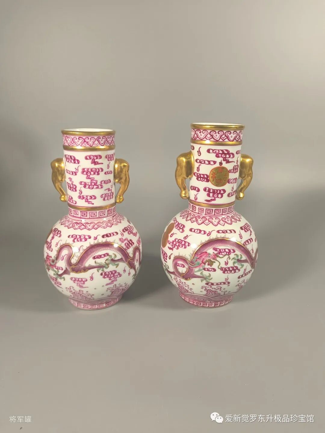 3. 提高国民素质民间收藏是一种高雅的文化活动,可以丰富人们的精神世界,提高国民素质。通过收藏和欣赏艺术品,人们可以培养审美情趣、拓展知识面、增强文化自信,进一步提升自身的综合素质。玛瑙红双龙戏珠象耳天球瓶-高24厘米,肚径13.5厘米