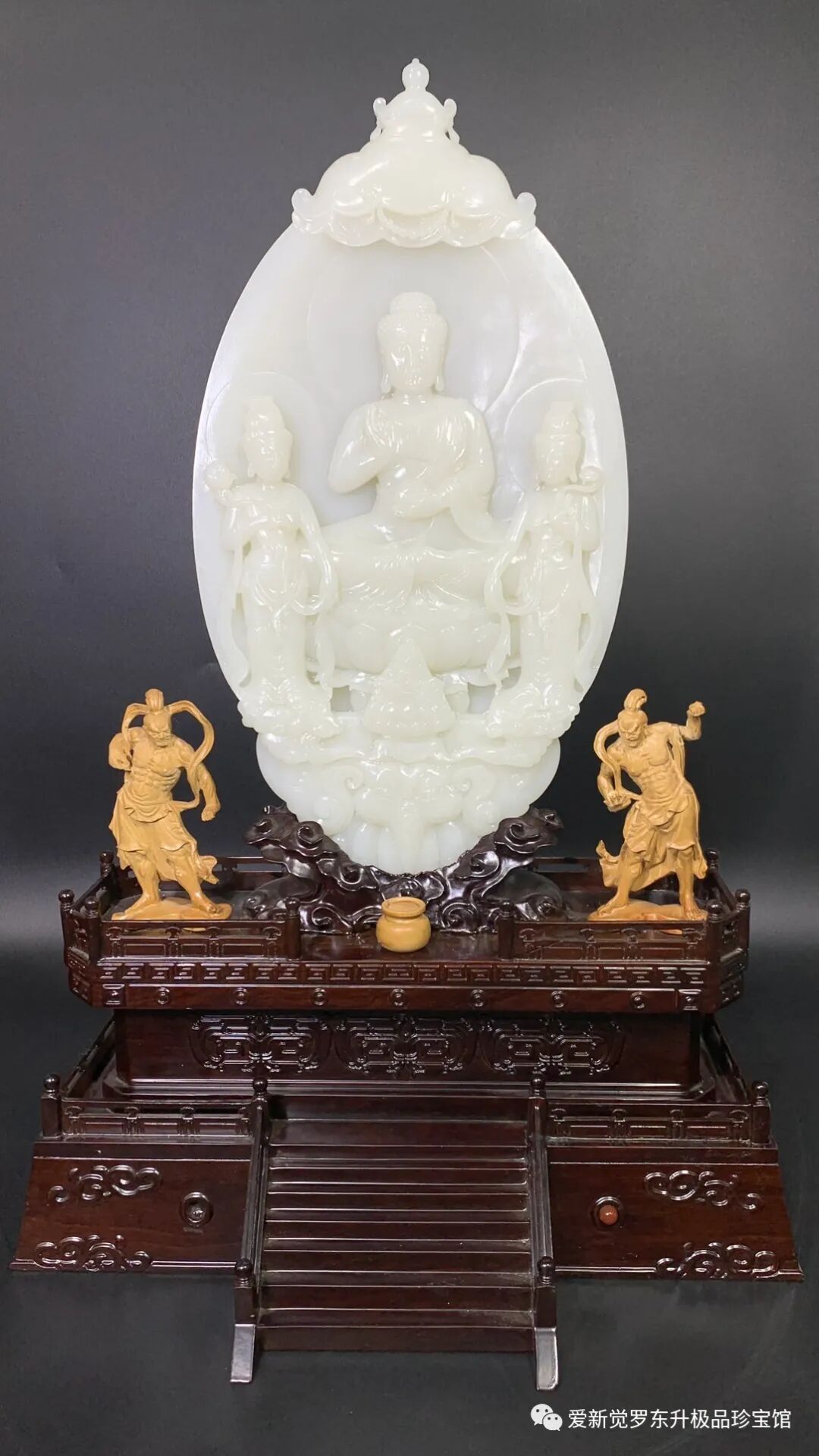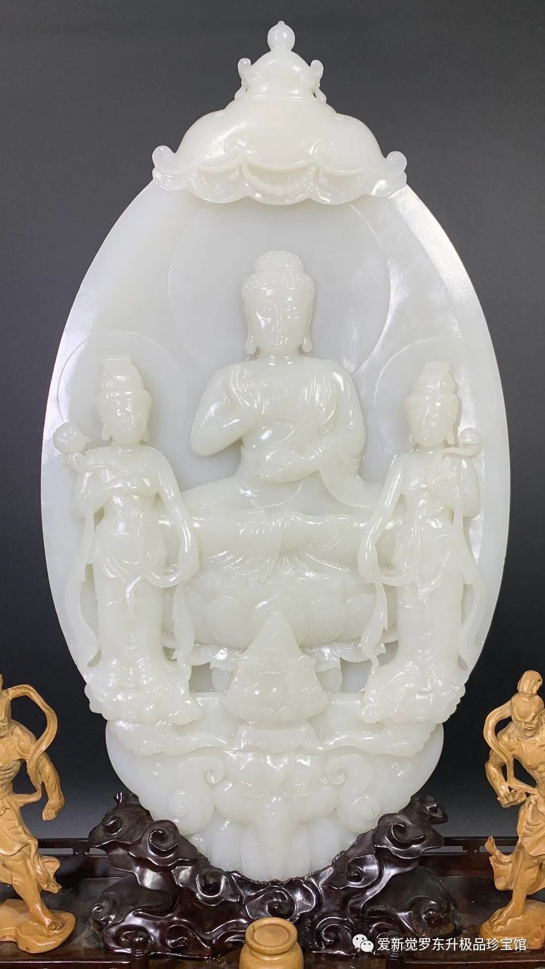 和田白玉【西方三圣】玉质细腻 干净 白润 完美一级白 可鉴定整体高54cm玉高35cm宽23cm