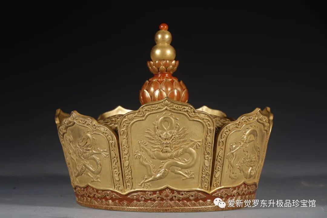艺术品收藏的历史可以追溯到古代,当时艺术品主要是作为皇室和贵族的收藏品而存在。随着时间的推移,艺术品逐渐进入民间,成为一种普遍的收藏品。特别是在20世纪以来,随着艺术市场的兴起和人们对于艺术品价值的认识不断提高,艺术品收藏已经成为了一种时尚和文化现象。清乾隆:皇帝御用九龙官帽子纯金雕刻九龙高20厘米 直径23厘米