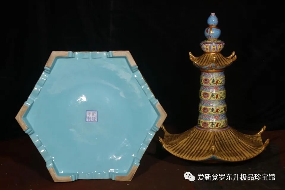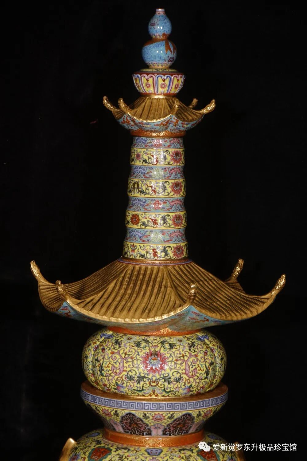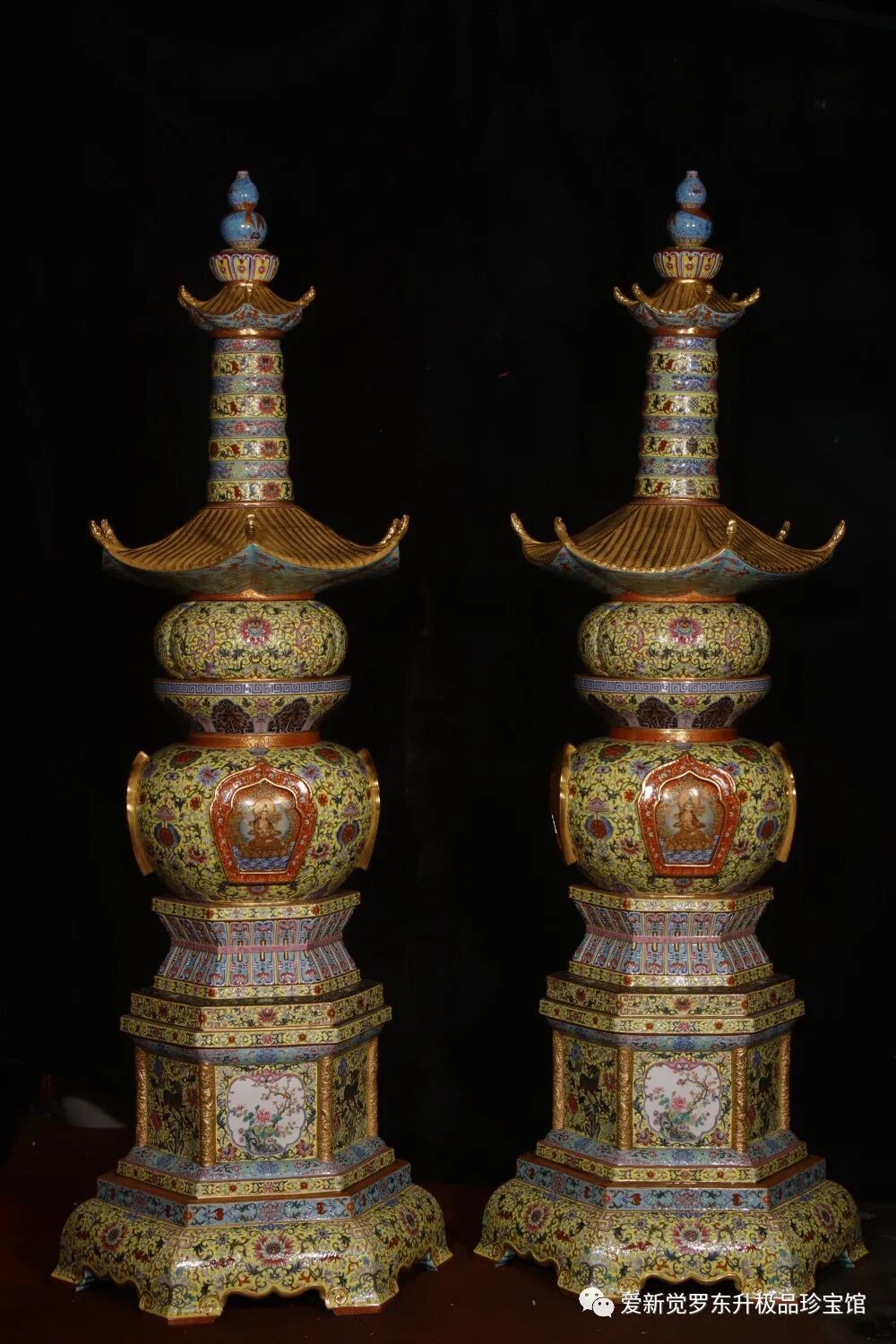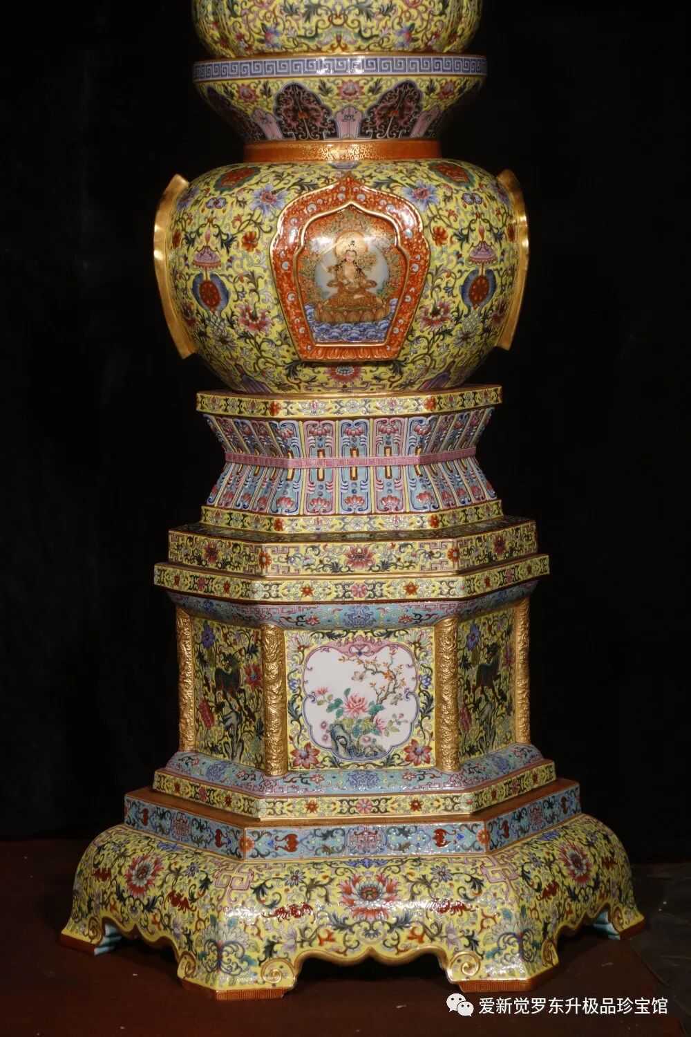 清乾隆:珐瑯彩重器唐卡六方塔黄地缠枝厘米连高146厘米底部50厘米盖互48厘米肚子35