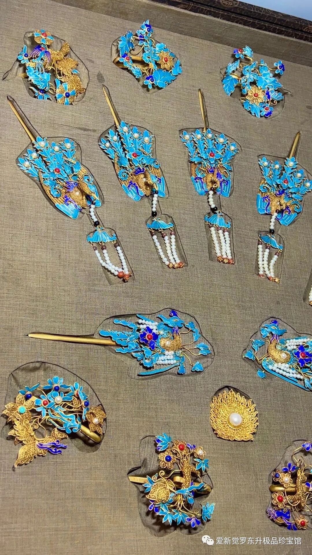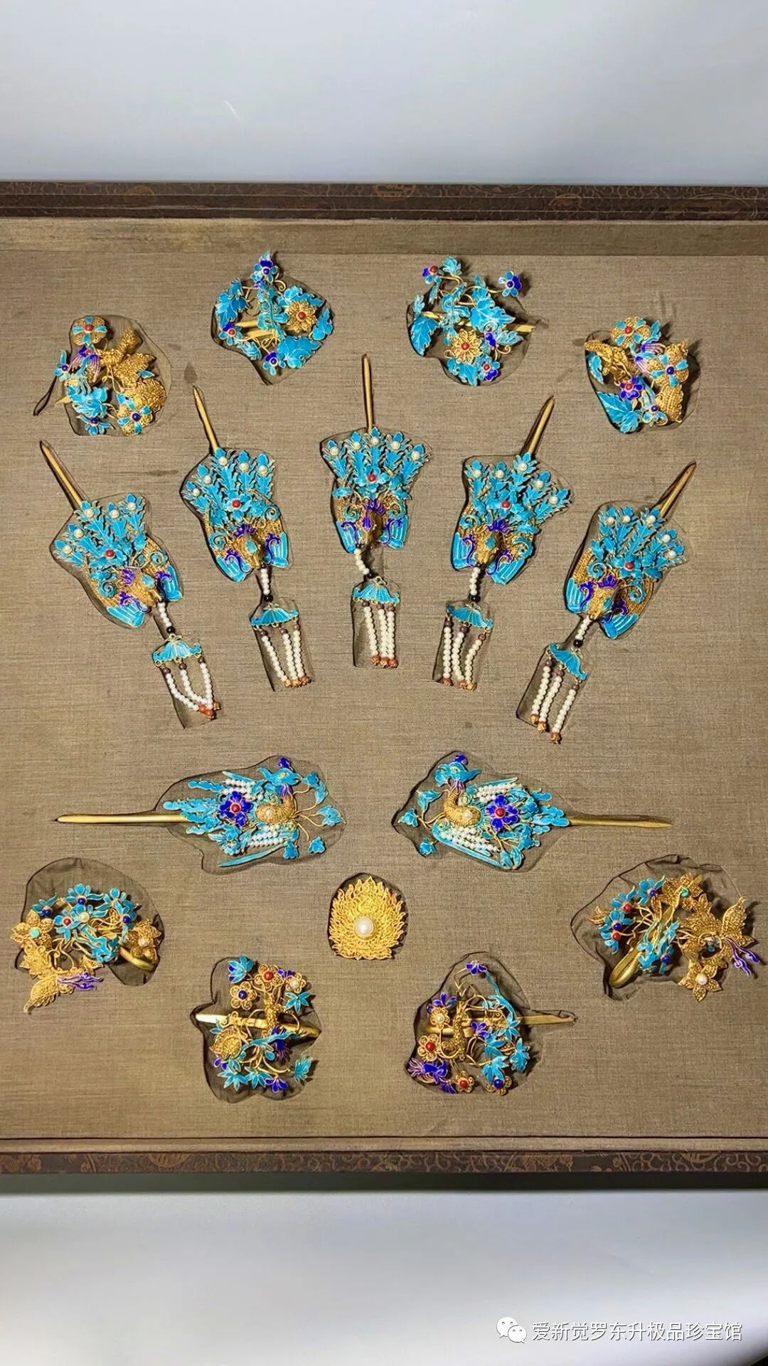 纯银鎏金一套 头饰 满点翠【七凤簪】