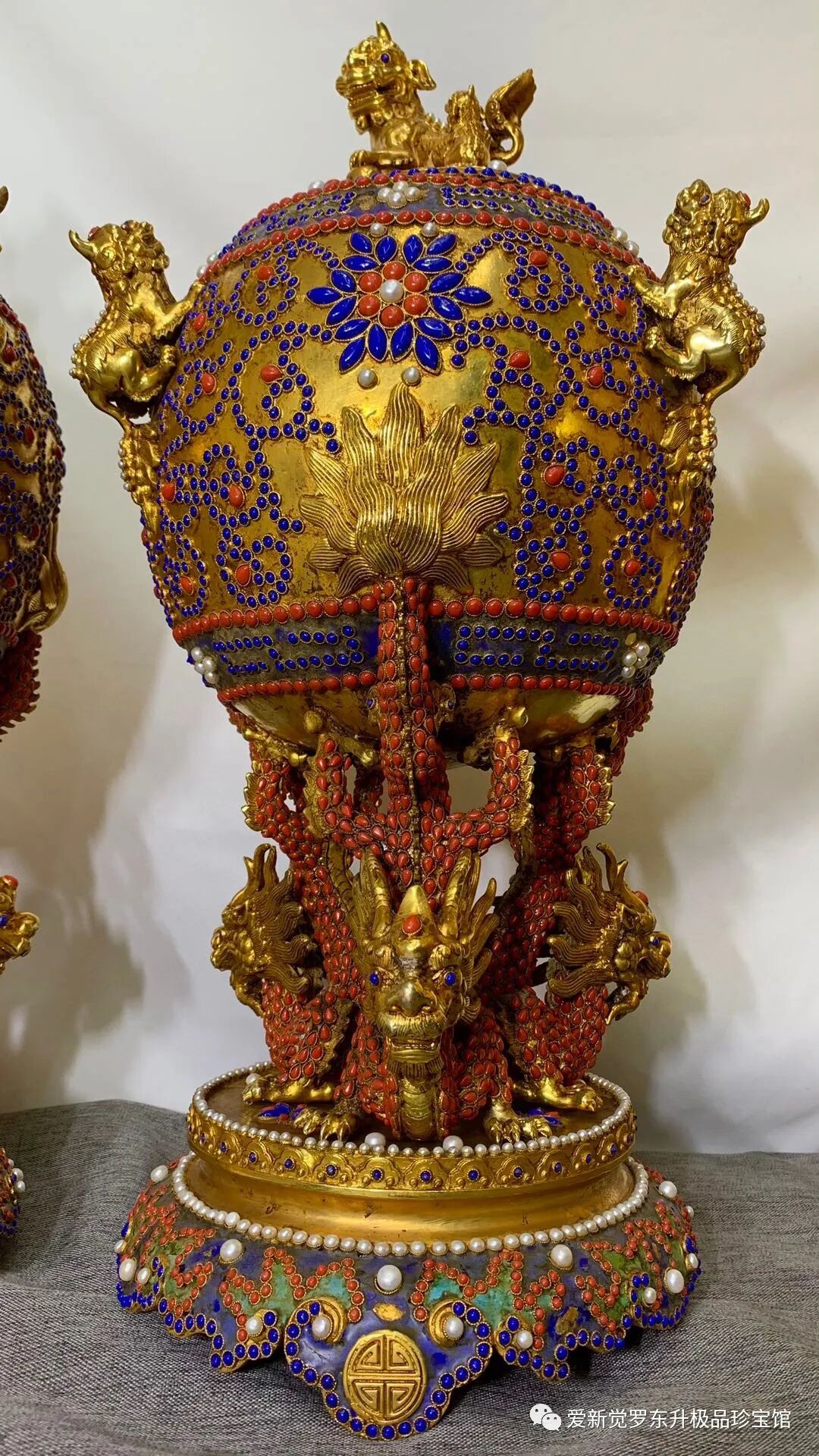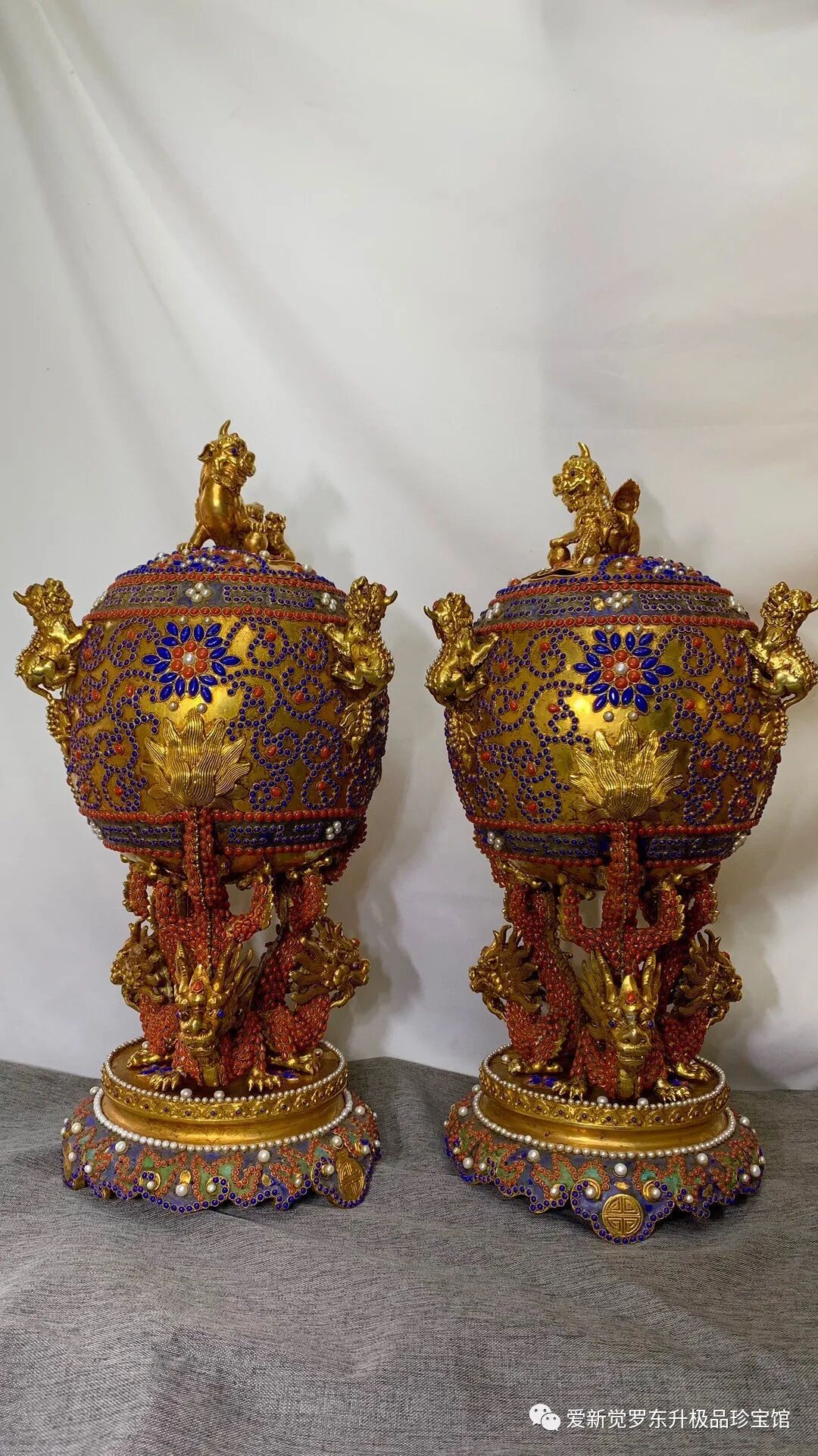 鎏金满镶嵌天然珍珠、珊瑚、松石、青金石【神龙炉】一对高60cm 宽30cm一对重50斤