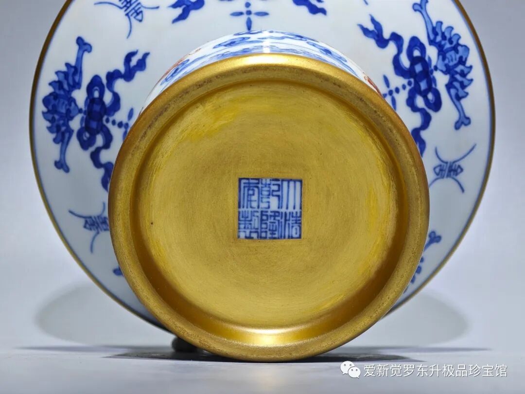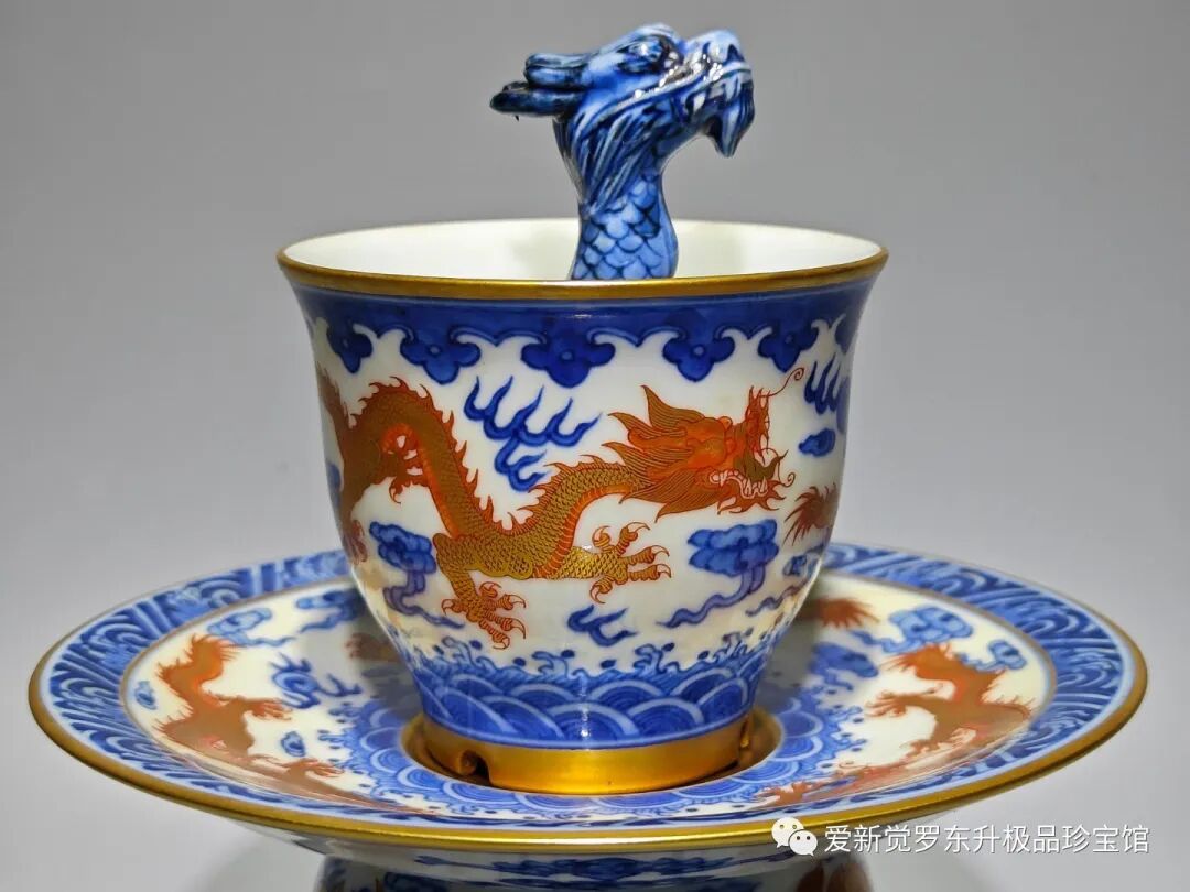 大清乾隆年制,青花矾红海水龙纹描金公功道杯,高:19.8cm,肚直径:16.7cm