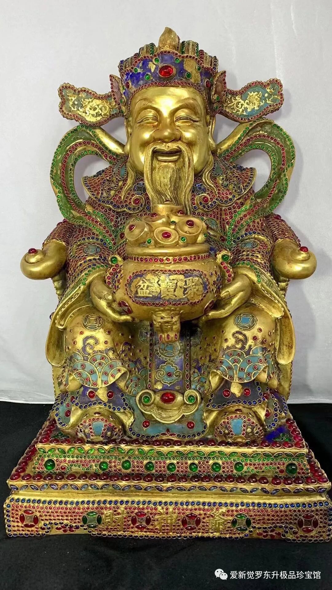 艺术品市场长期以来一直存在着一些问题,其中最突出的问题之一是艺术品的合法性和流动性。在过去,艺术品被视为不动产,很难在市场上流通和交易。这导致了艺术品的价值被低估,同时也限制了艺术品市场的规模和发展。鎏金镶嵌宝石【财神】高60cm 宽35cm
