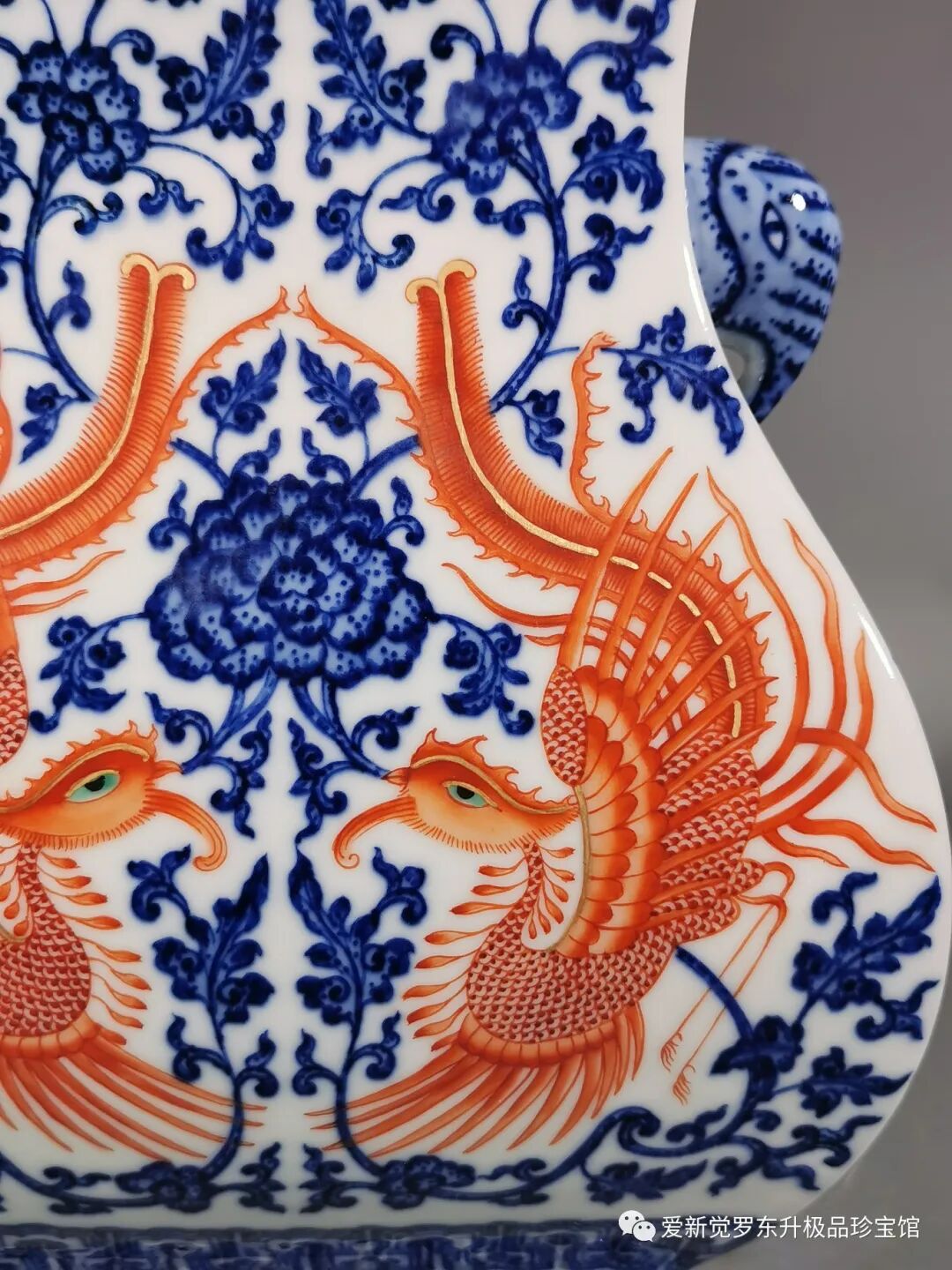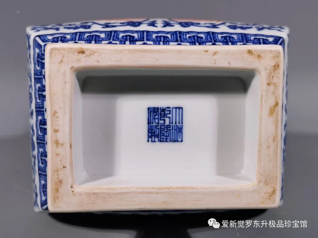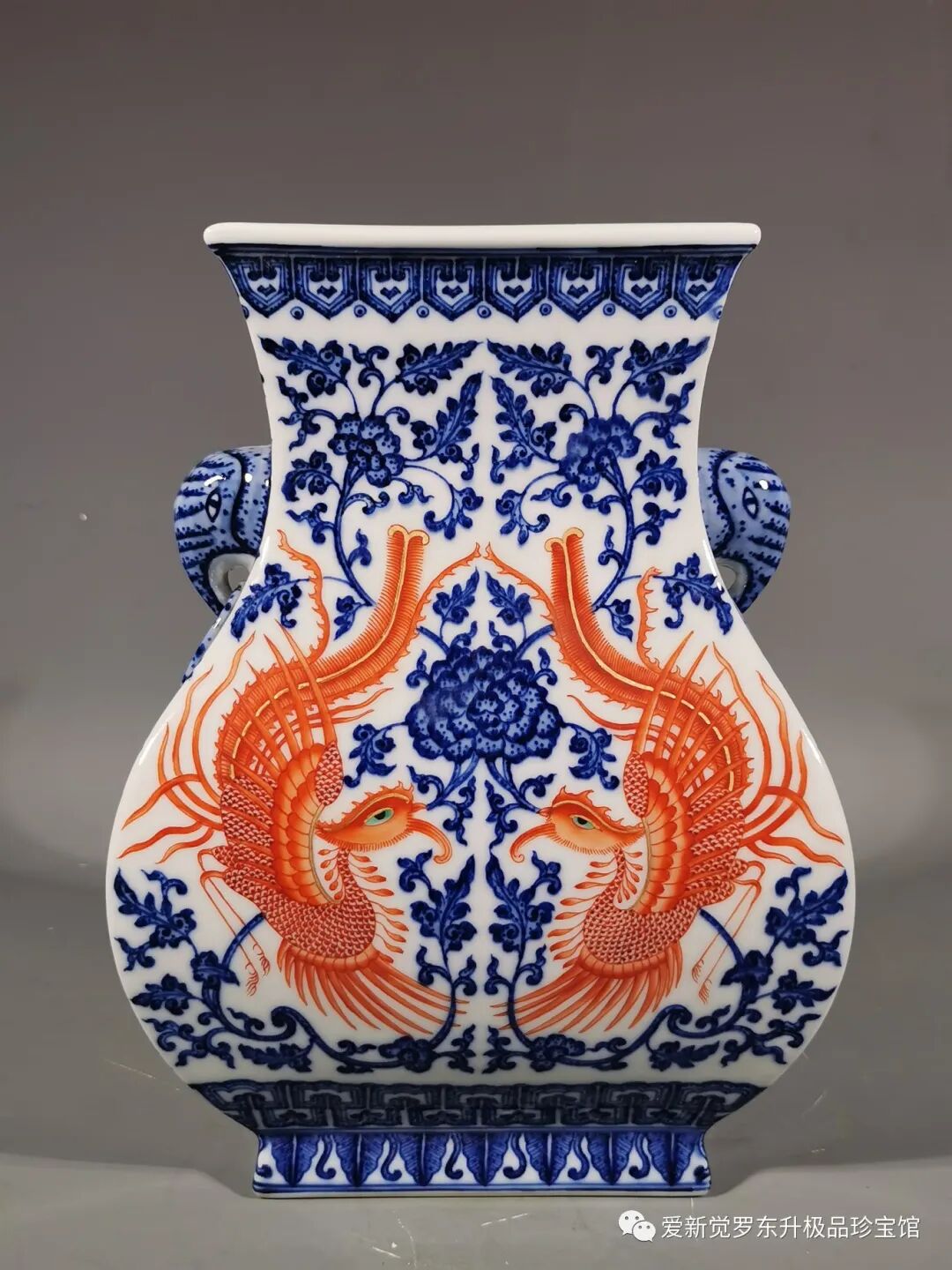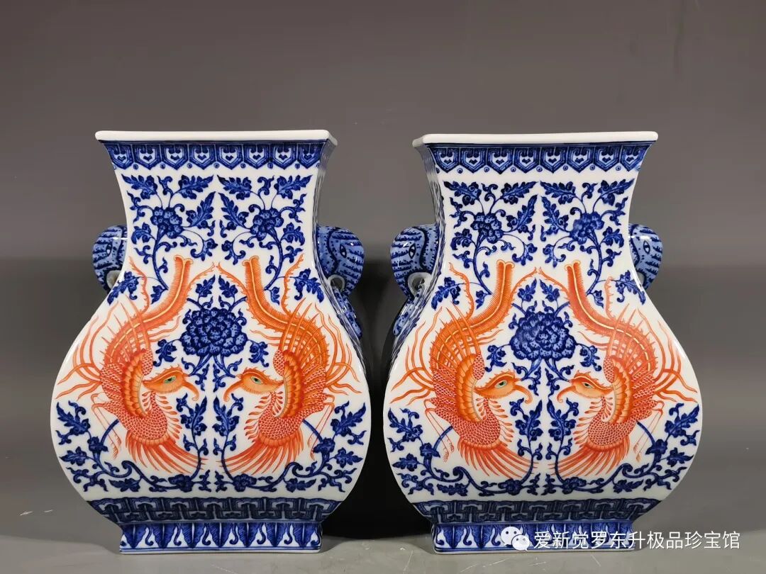 清乾隆,青花缠枝莲纹加彩双凤双耳四方瓶高度27点五,肚径19.5