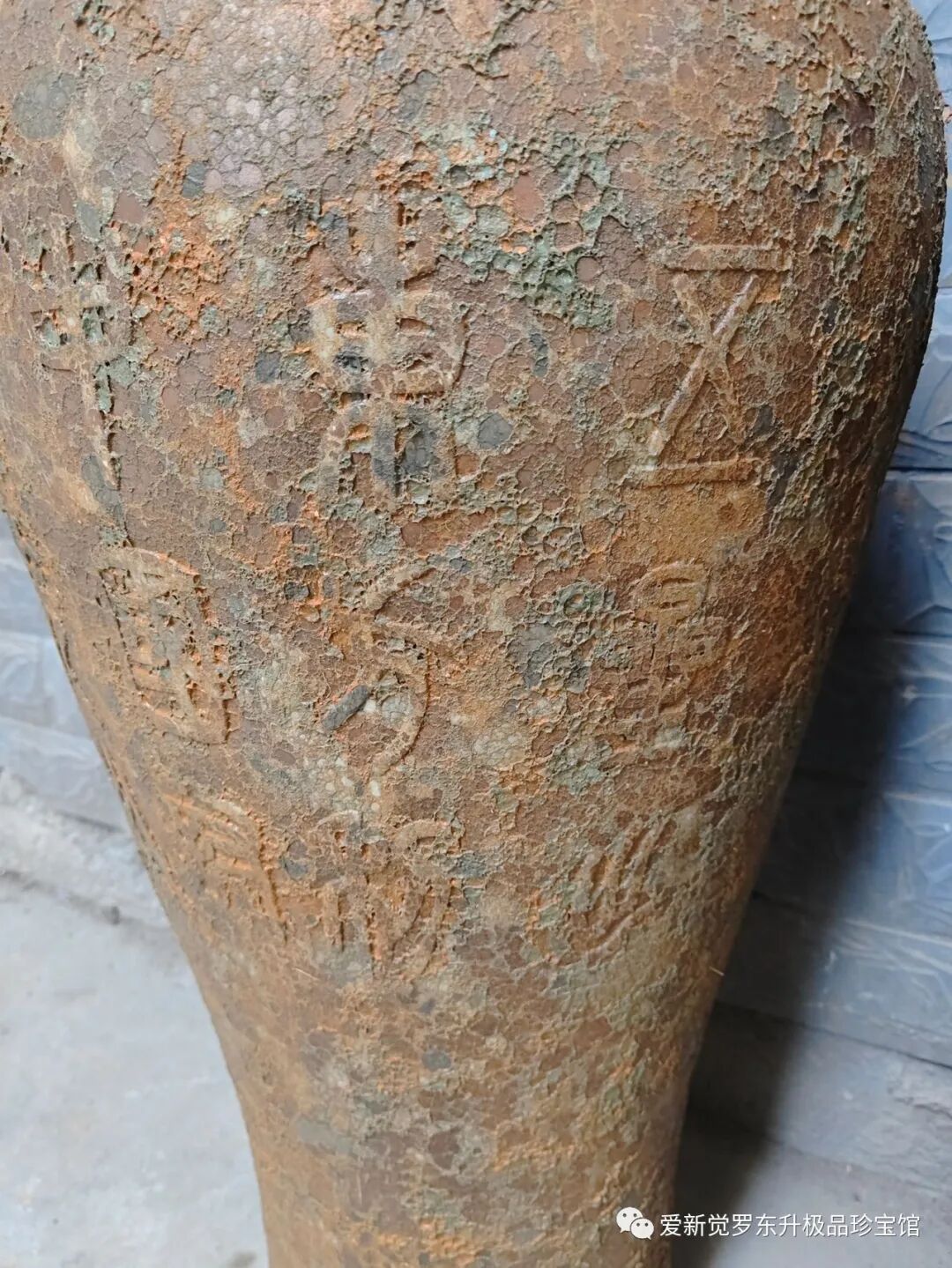 年代“汉”高一米零八,里面约酒六十斤,有虎骨酒,虎鞭酒,文字,五星出东方,利中国,討南羌,必大捷,神爵元年。有收藏考古重大意义。