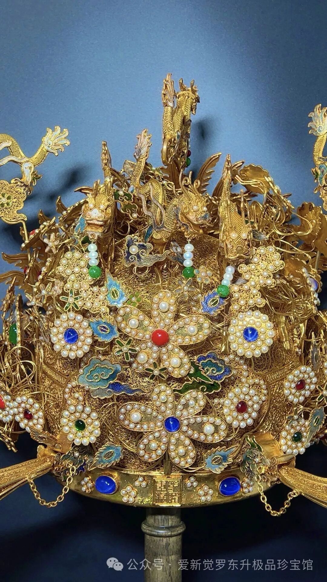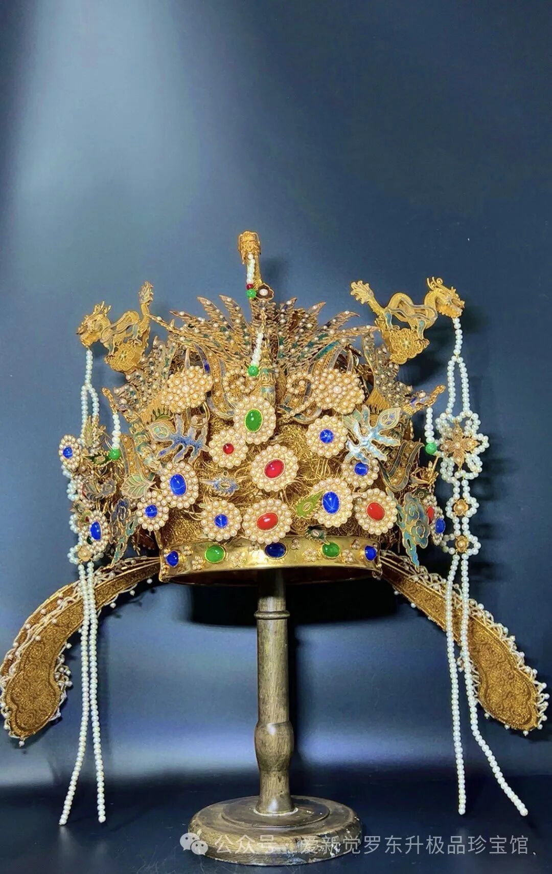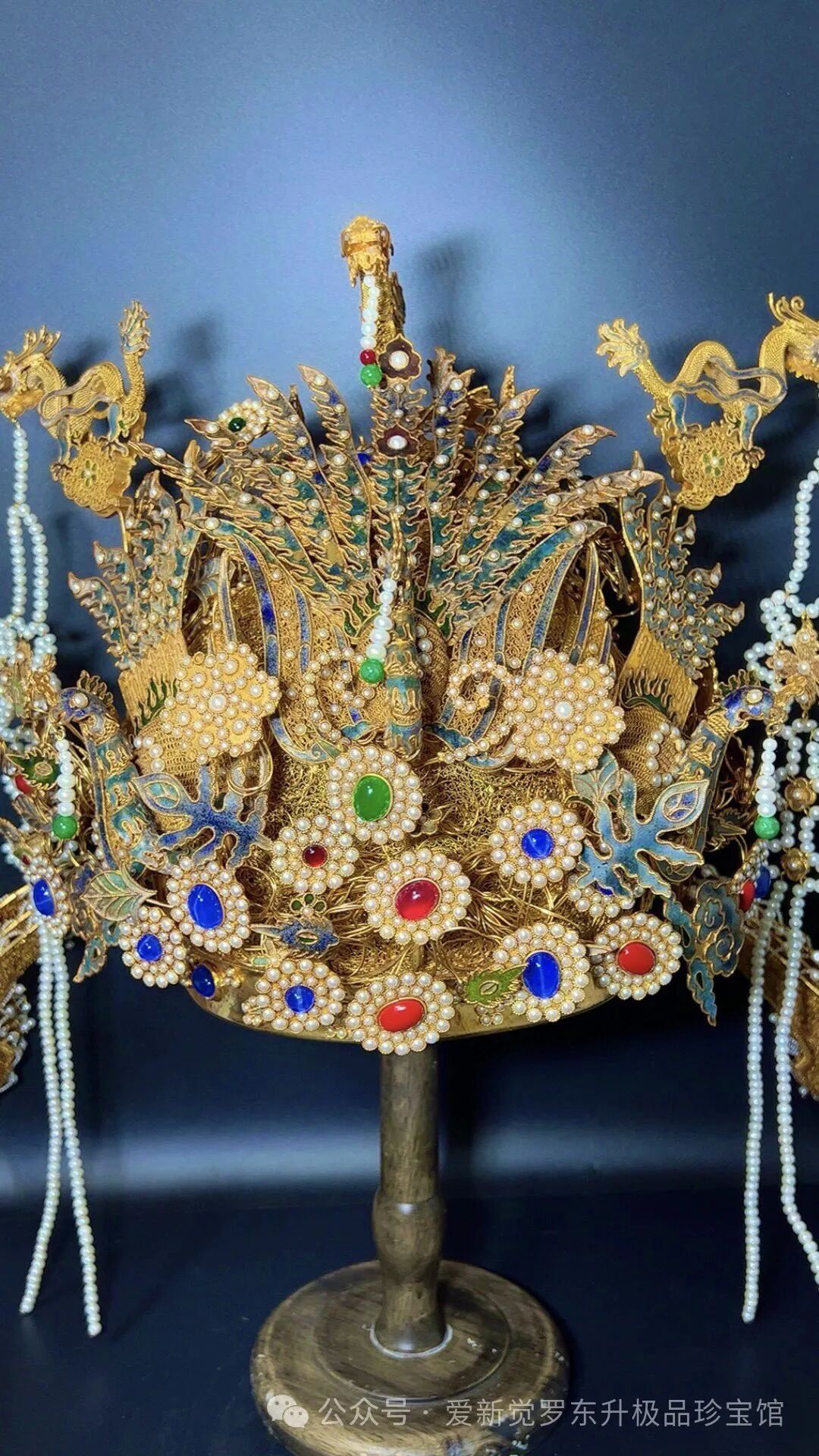 鎏金累丝镶嵌珍珠 翡翠 红宝 蓝星光 珊瑚【凤冠】高58cm 宽56cm重8.2斤