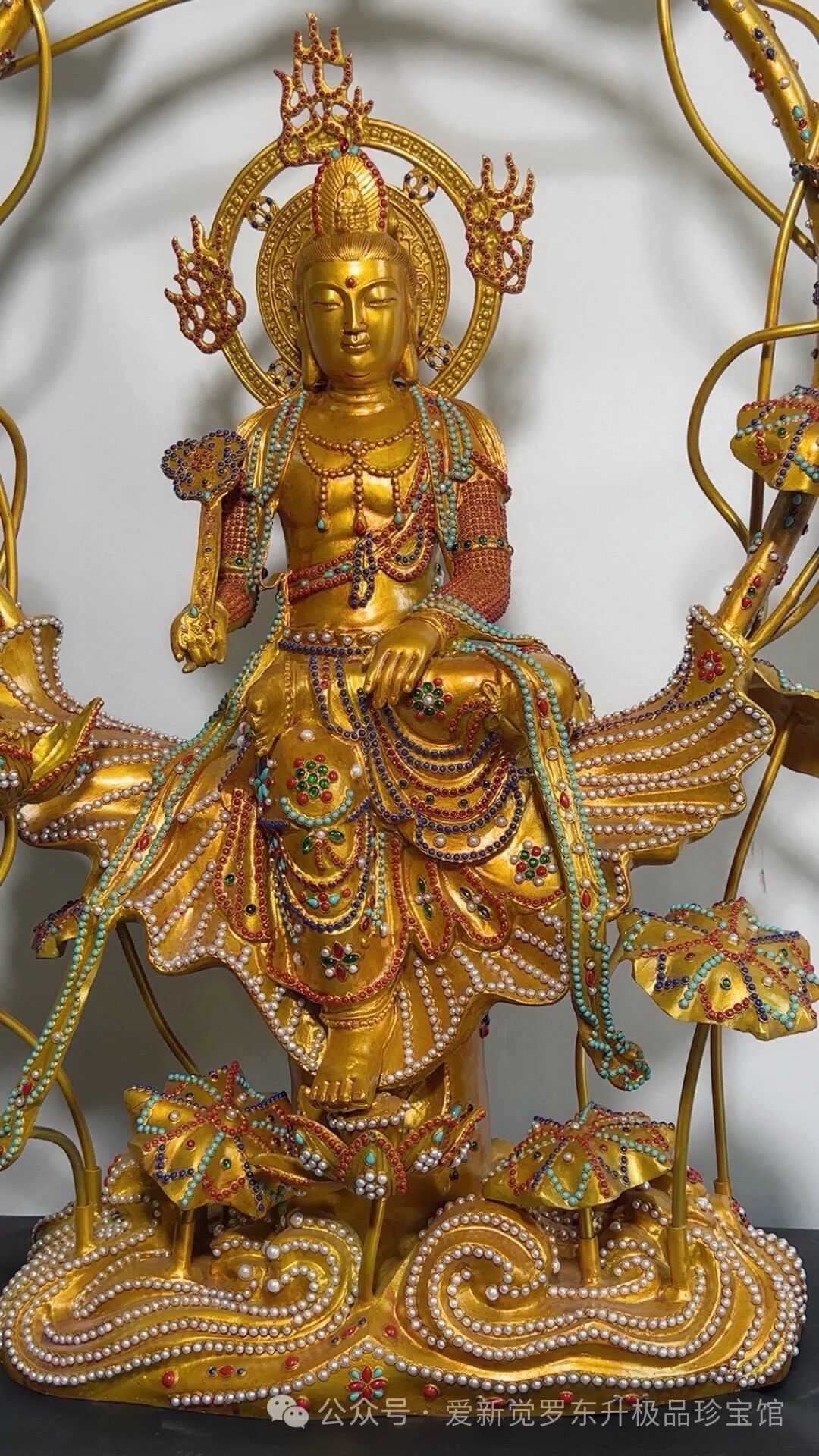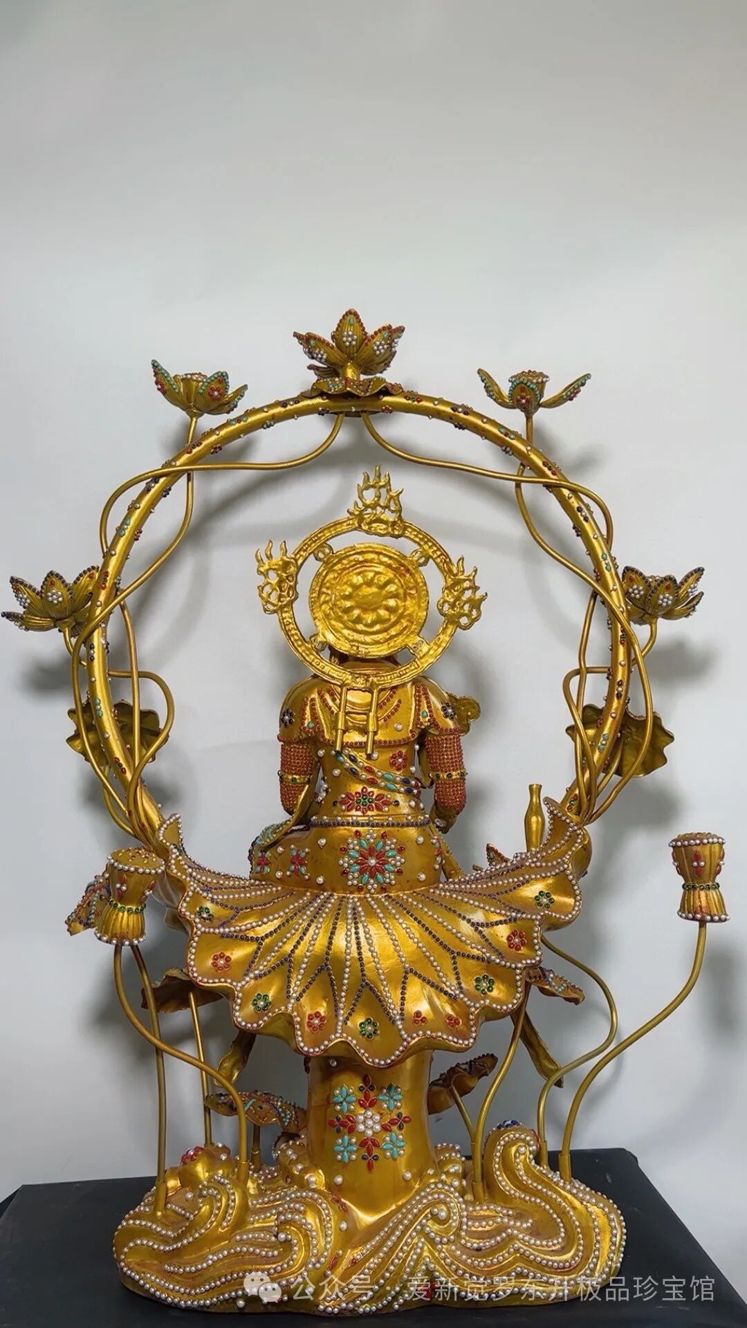 鎏金满镶珍珠、珊瑚、松石、青金石【莲花自在观音】高1.15米 宽90cm