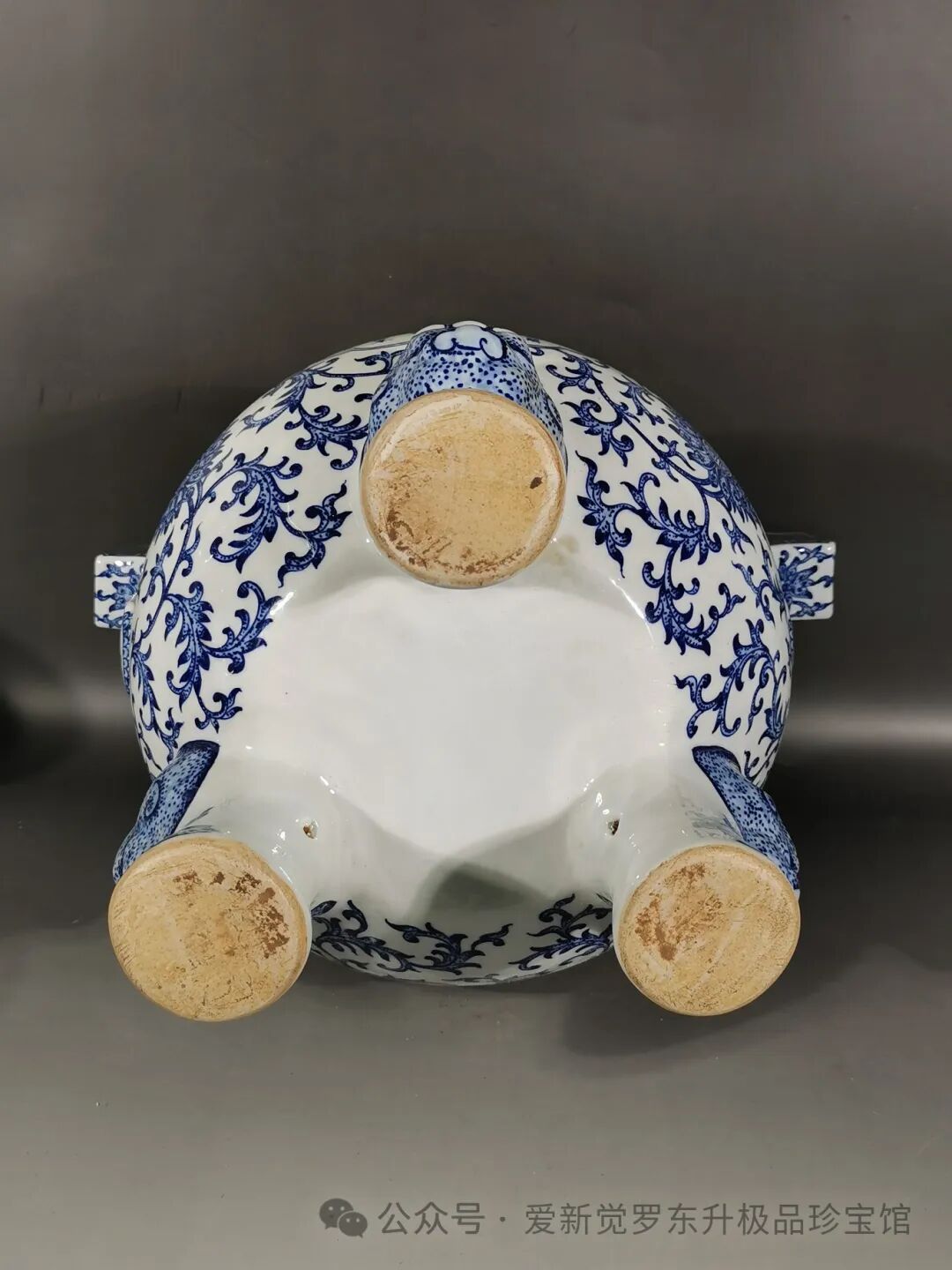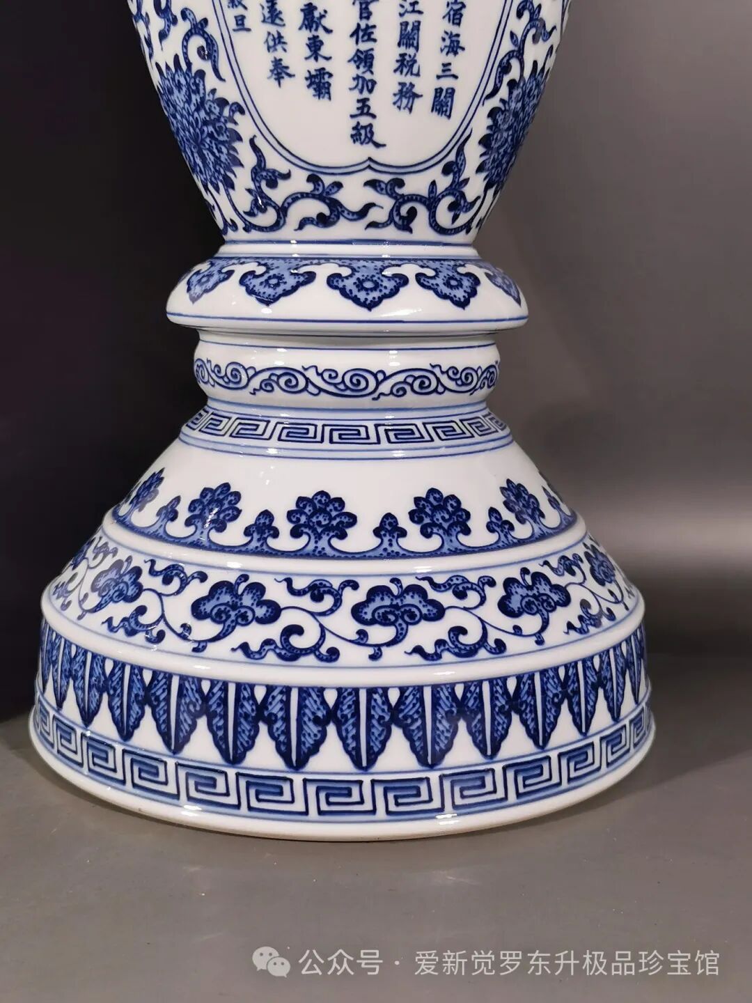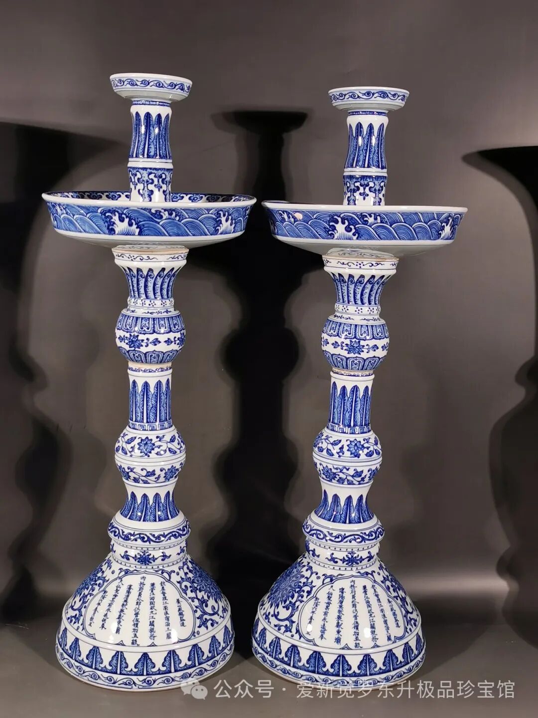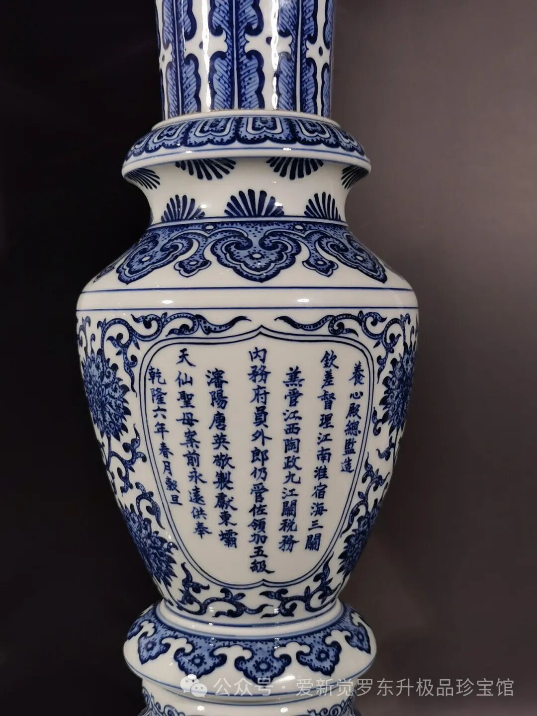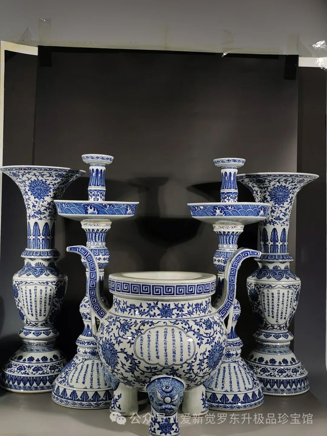 清乾隆,青花缠枝莲纹天仙圣母案前永远供奉青花五供高度63.6,花觚口径25.8,蜡烛台高度66.4香炉高度42.5,口径27