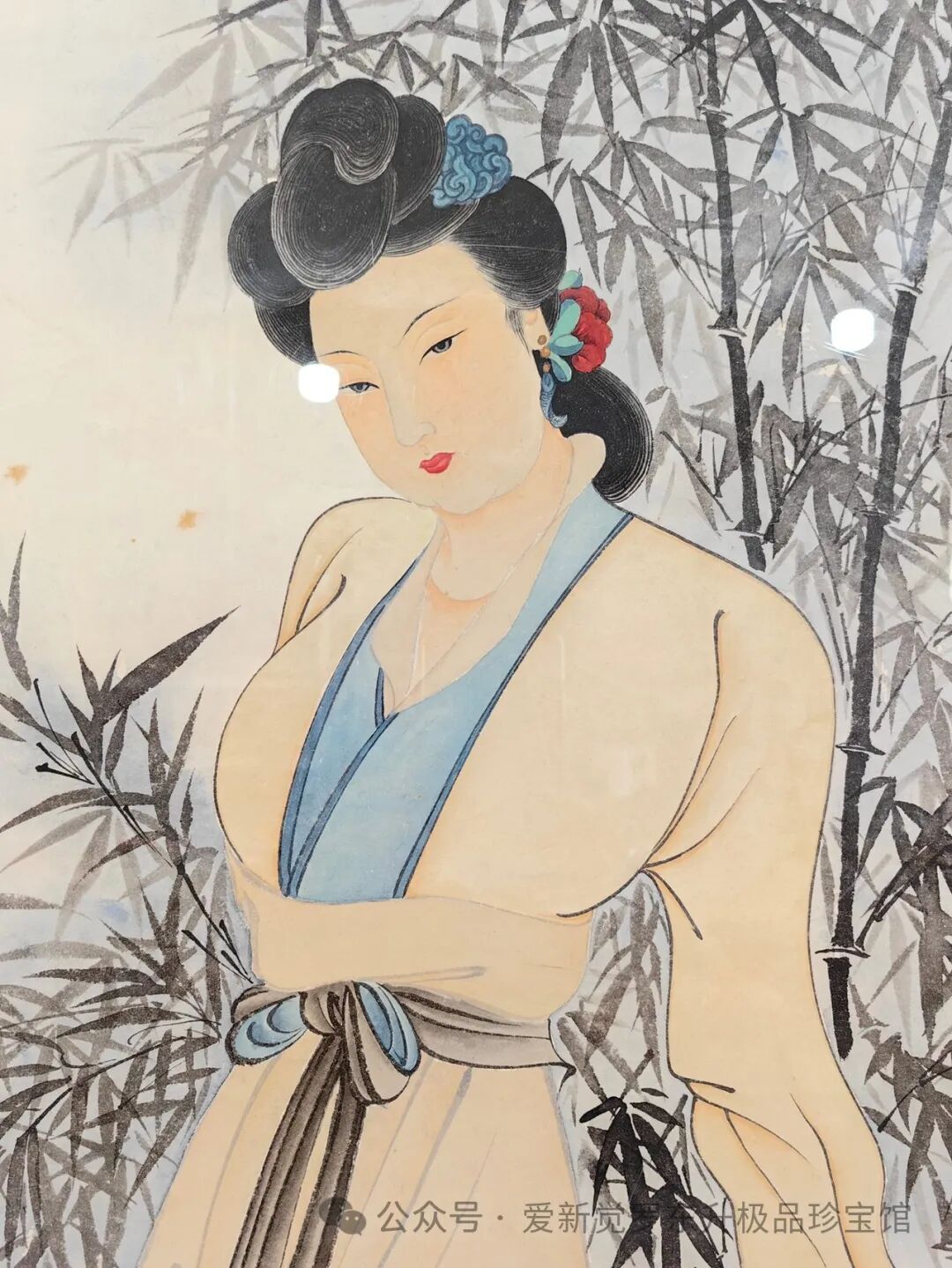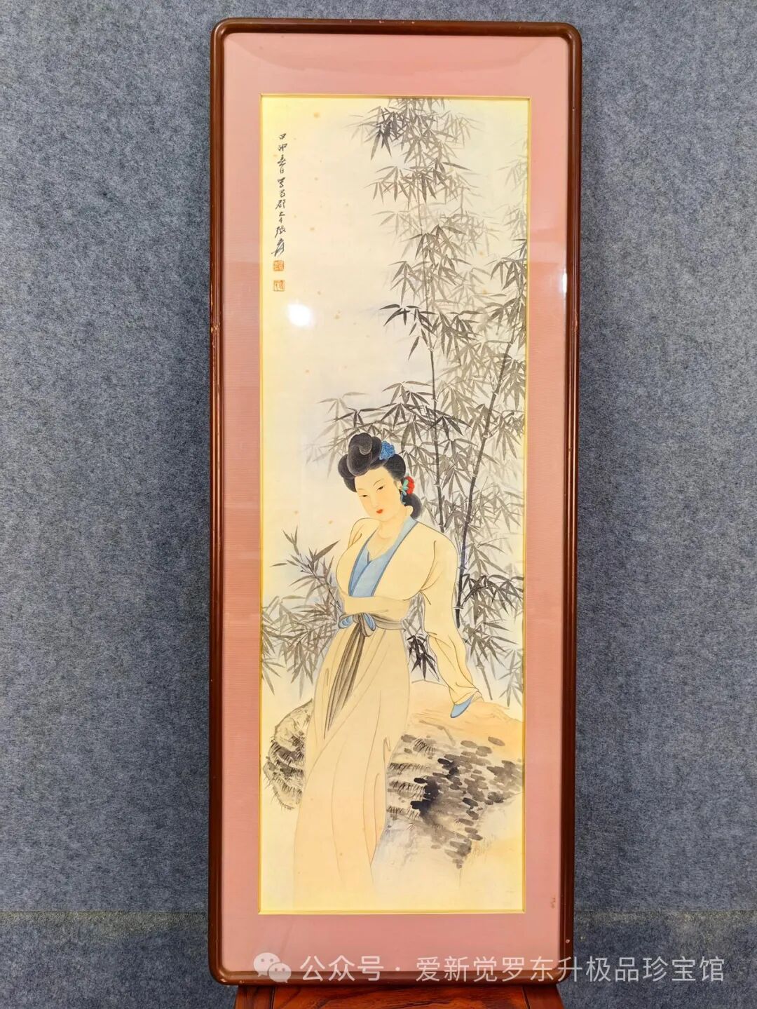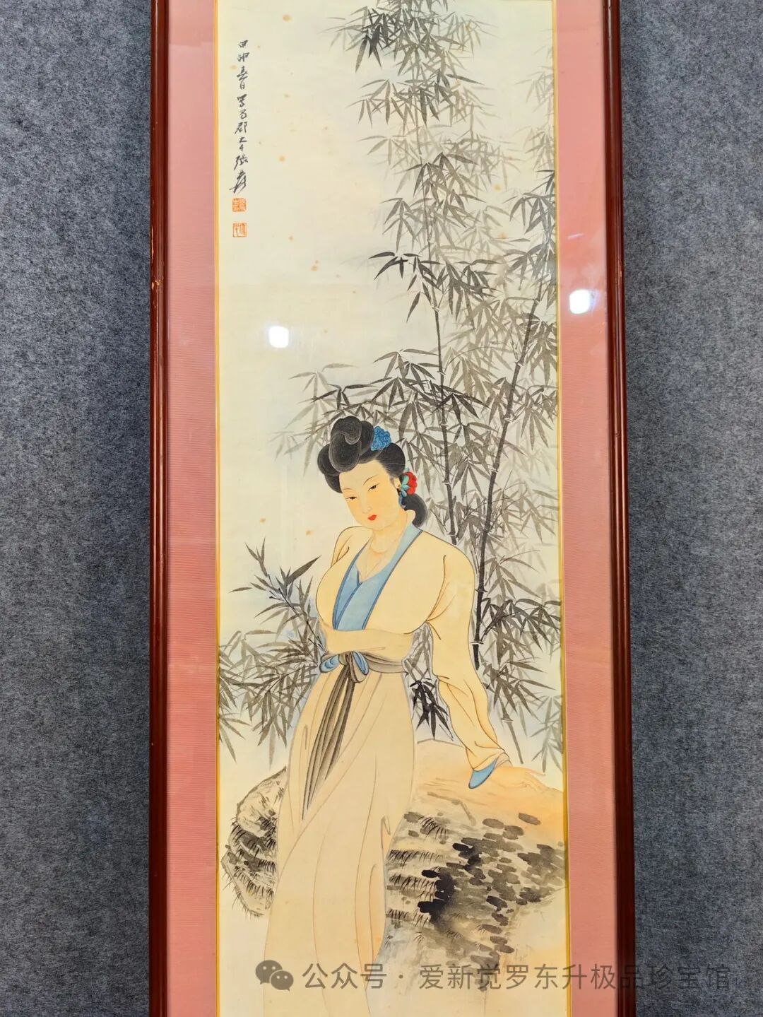 旧藏极品张大千工笔仕女老镜框,纸本,海外回流。此镜框外面有玻璃,玻璃是无机玻璃。………34*104厘米画心尺寸,47*125厘米是镜框总体尺寸