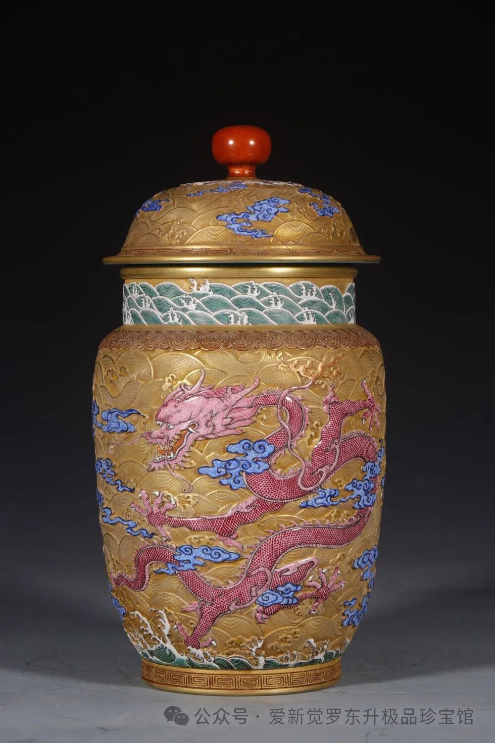 一、艺术品市场大变天的原因1. 技术进步:互联网、移动支付等技术的普及为艺术品交易提供了更加便捷、安全的平台。人们可以通过网络随时随地浏览艺术品、参与竞拍,不再受地域限制。2. 消费者需求变化:随着人们生活水平的提高,对艺术品的需求也在增加。消费者不再满足于地摊上随处可见的工艺品,而是追求更高品质、更具个性化的艺术品。3. 政策支持:政府对文化产业的大力支持也为艺术品市场的变革提供了有力保障。一系列政策的出台,为艺术品交易提供了更加规范、透明的市场环境。清乾隆:金丝珐瑯彩龙纹将军罐高17厘米 口径7.5厘米 底径7.5厘米