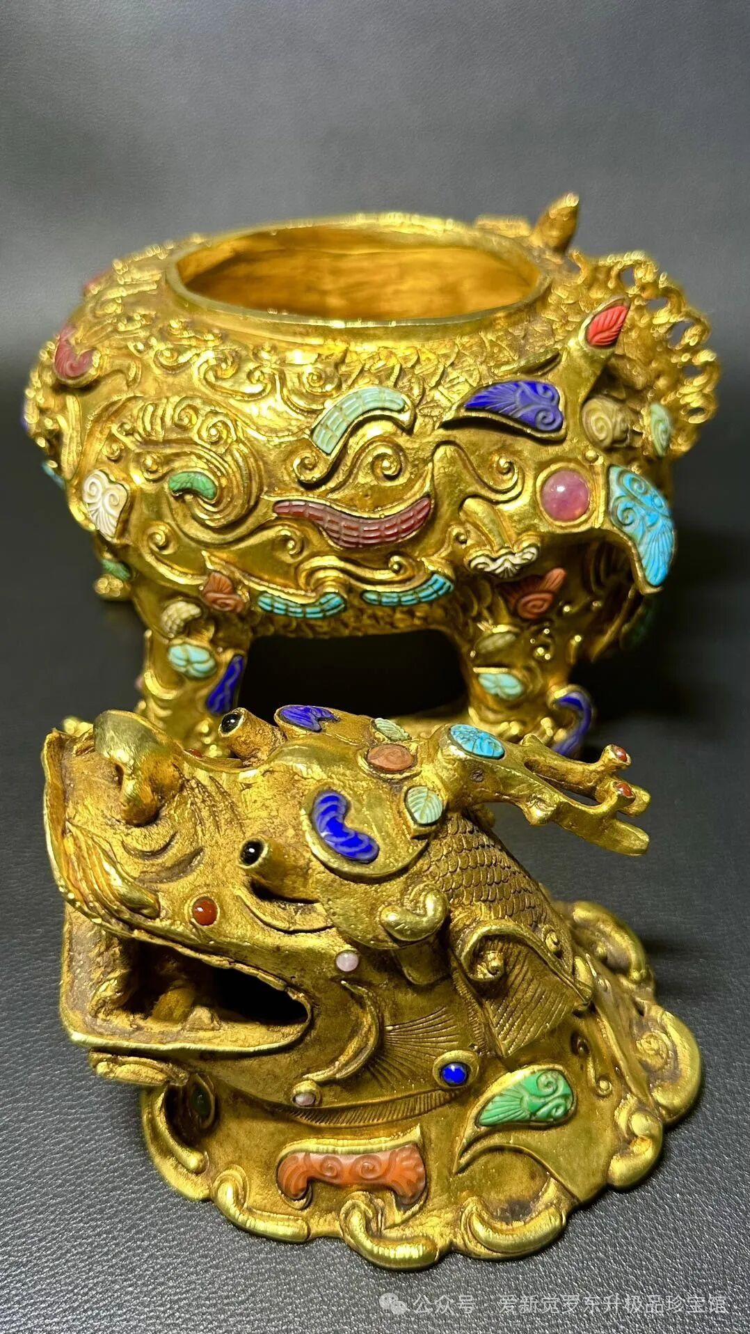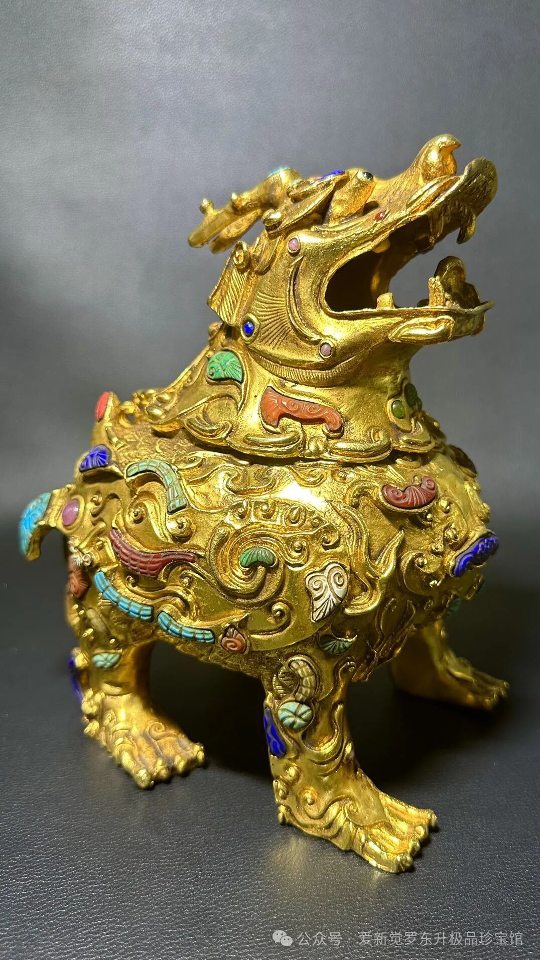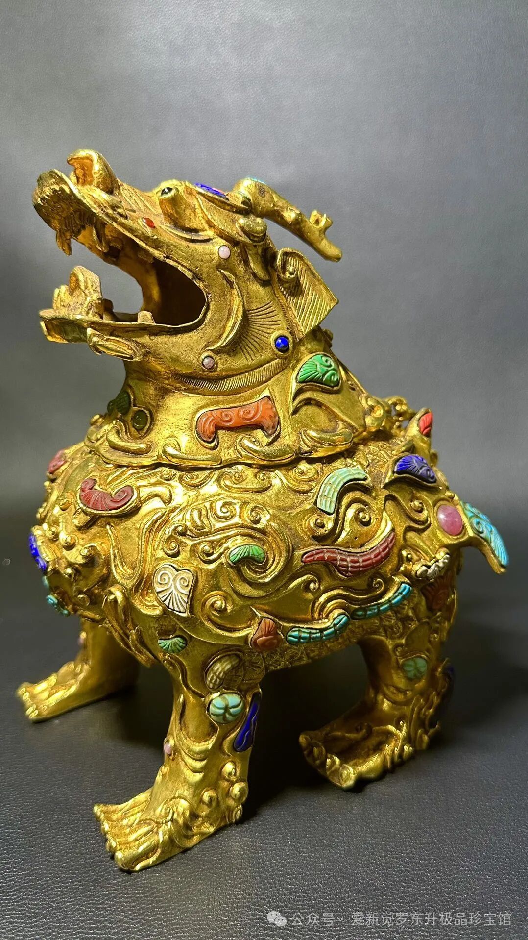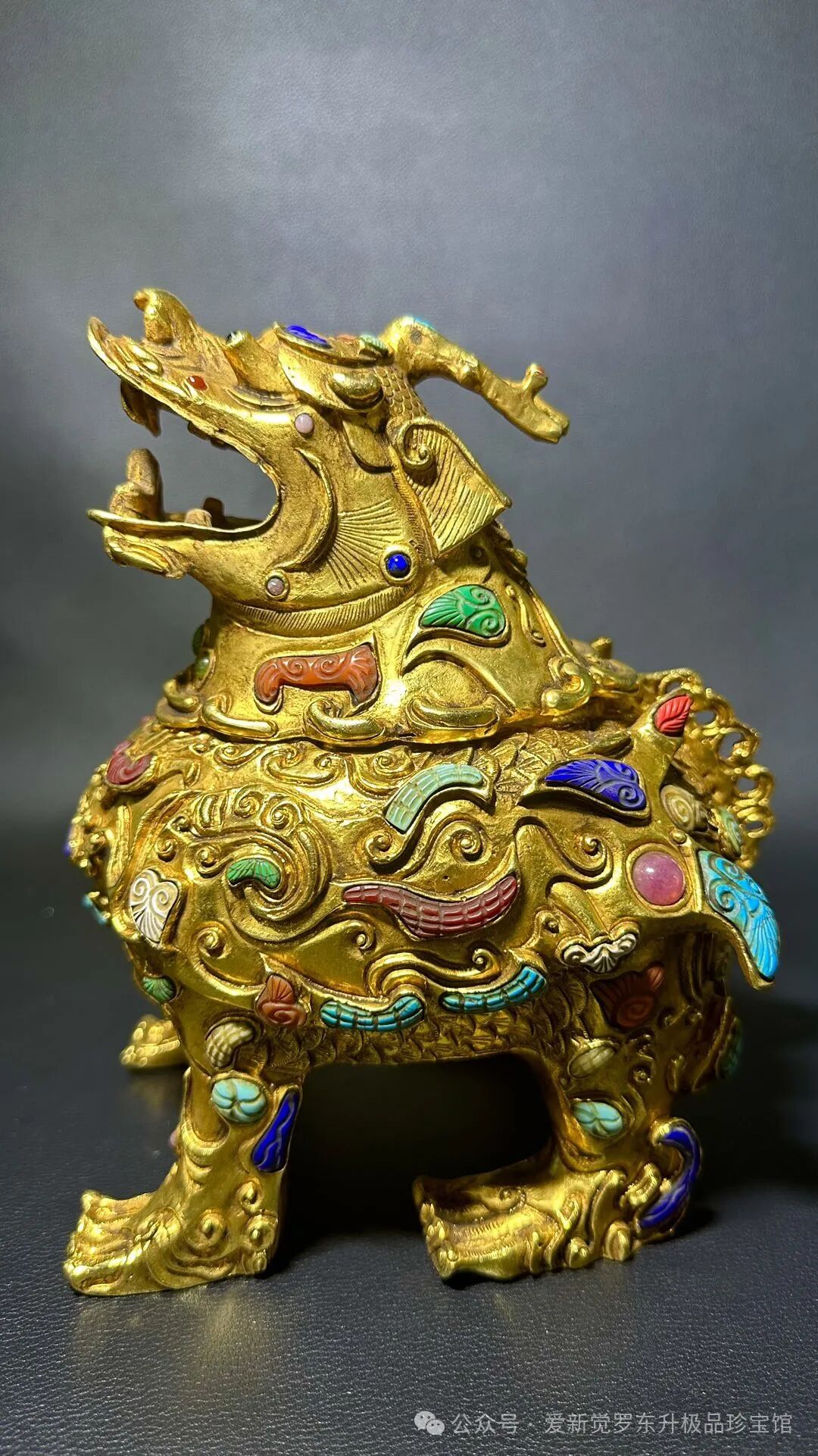 精工鎏金镶嵌百宝【瑞兽熏炉】高20cm 宽20cm重7斤
