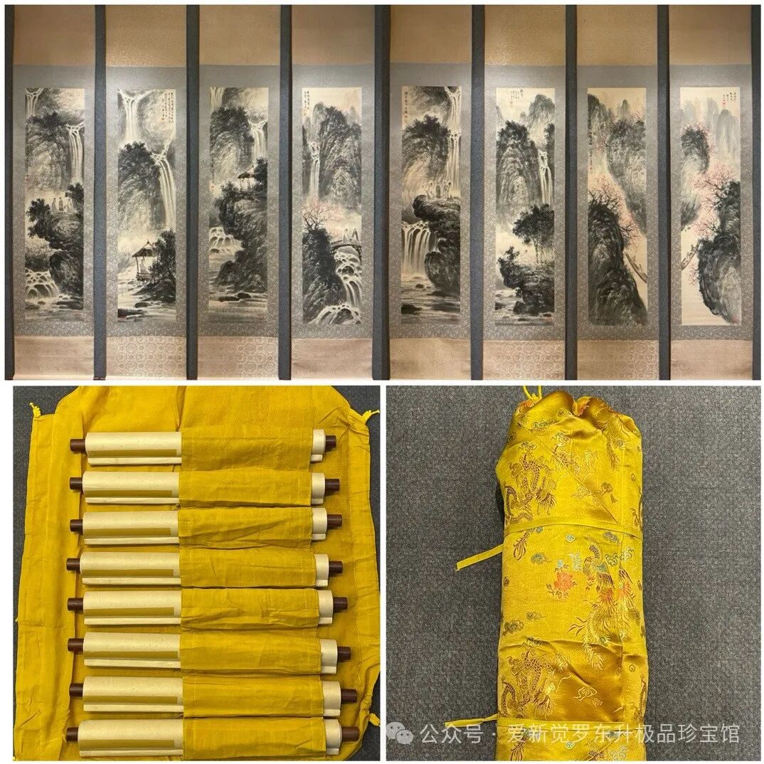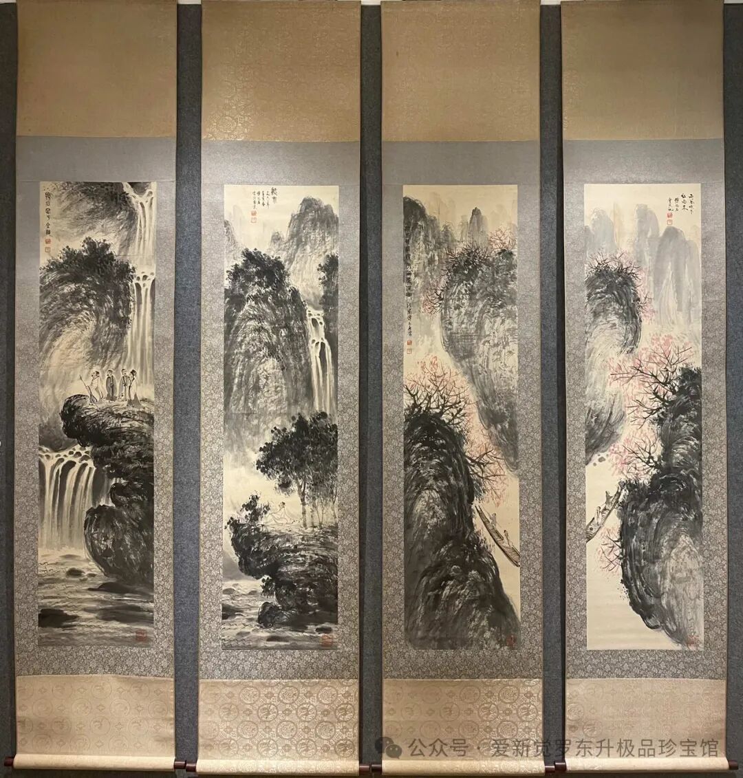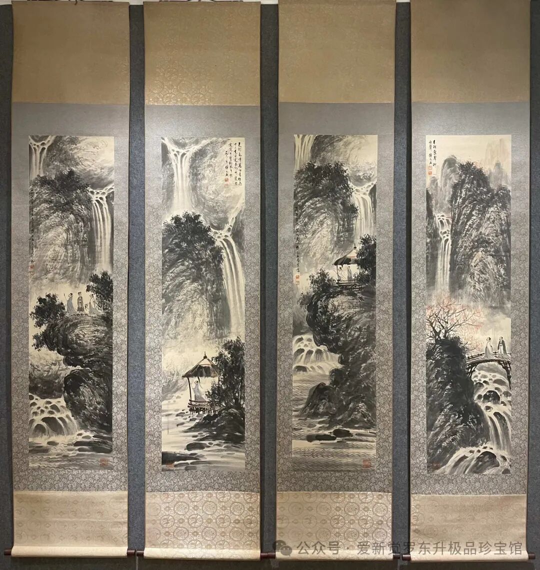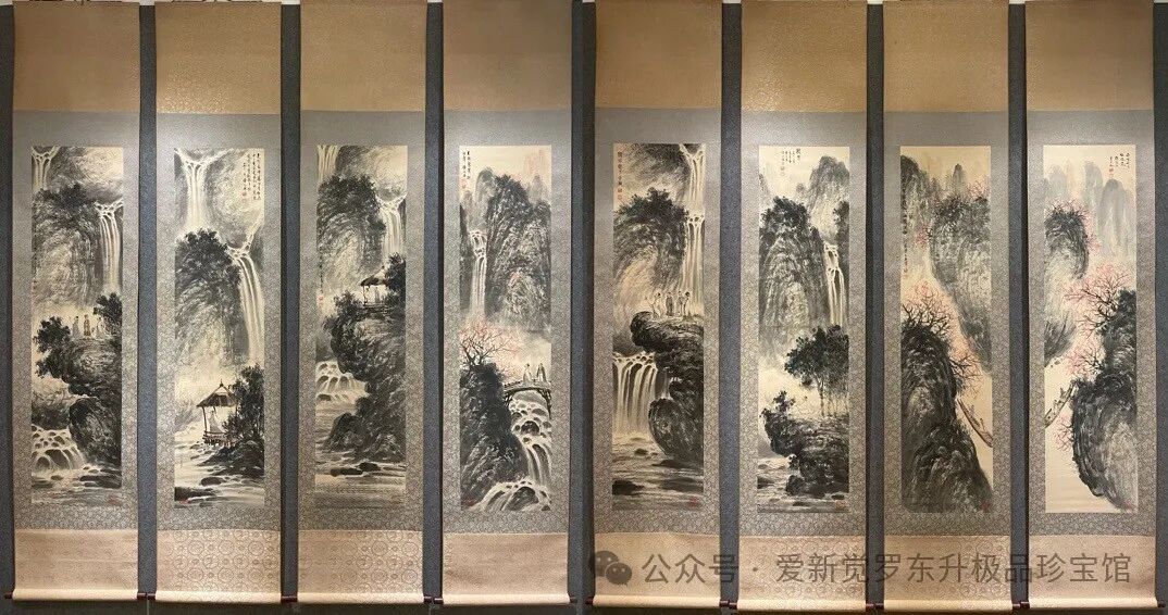 傅抱石高士观瀑图精品八条屏画芯尺寸:136x34cm*8
