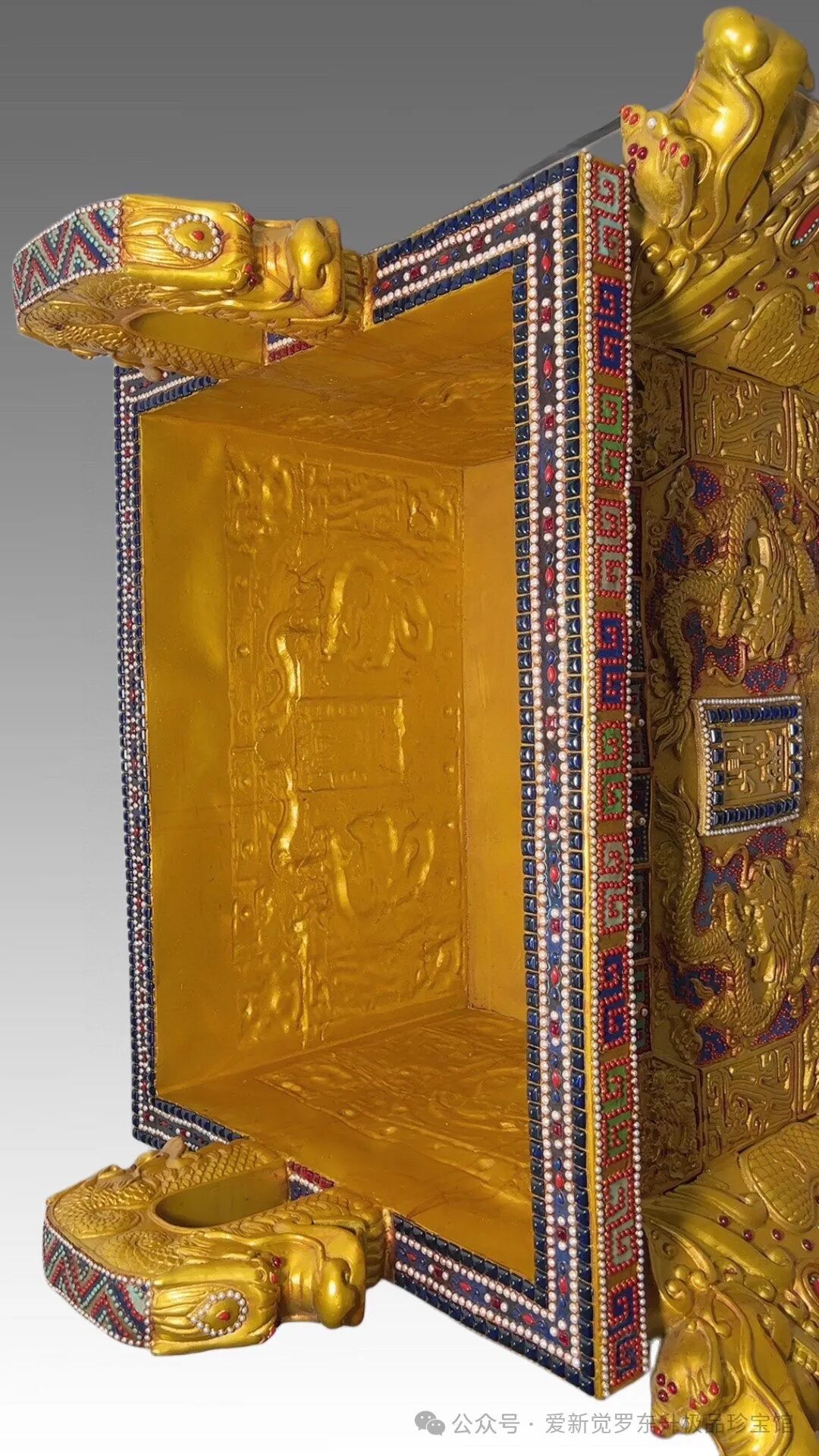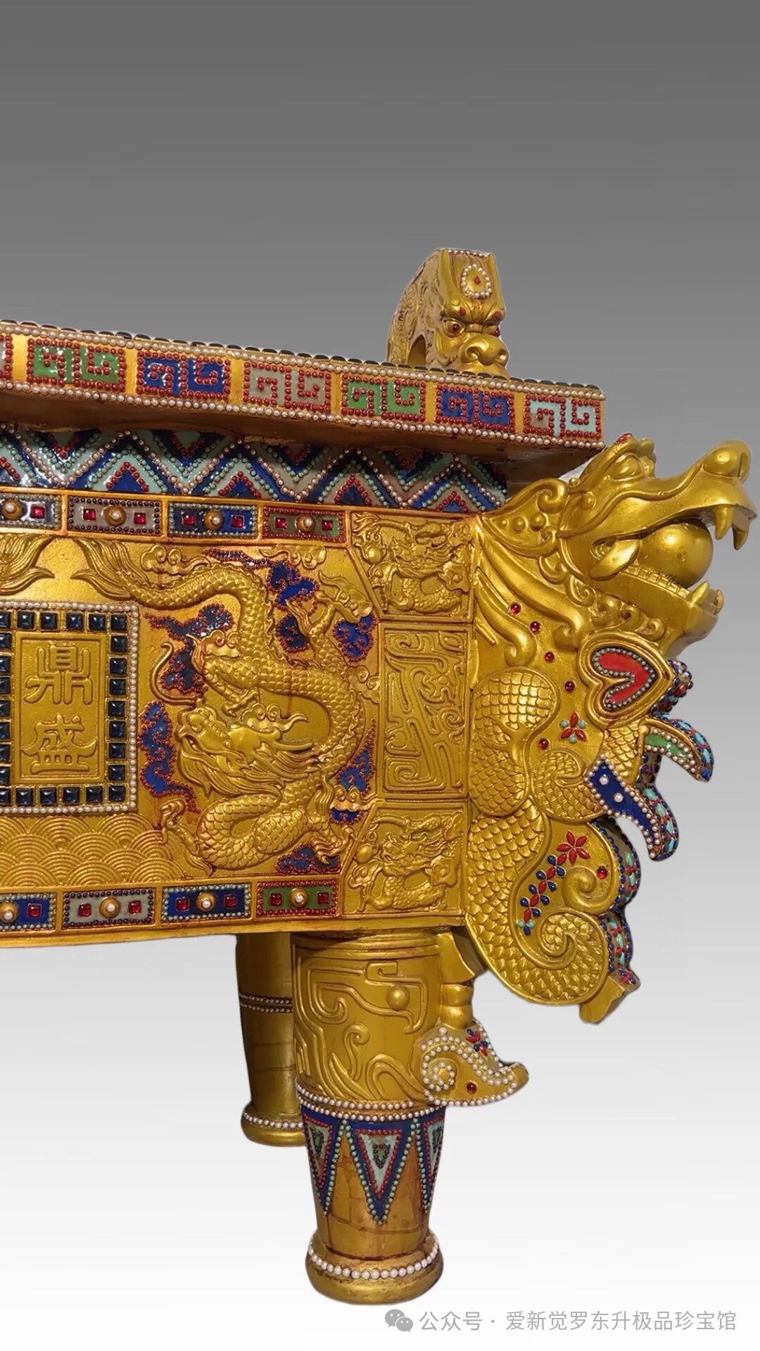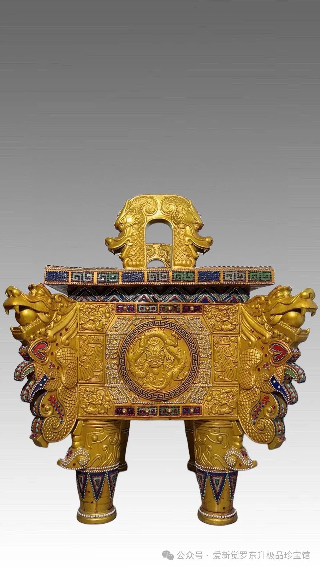 鎏金镶嵌 宝石 珍珠 珊瑚 松石 青金石 【双龙方鼎】鼎盛千秋高1.2米 宽1.3米 厚1.1米 重约500斤