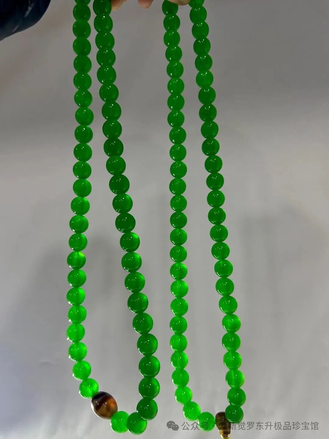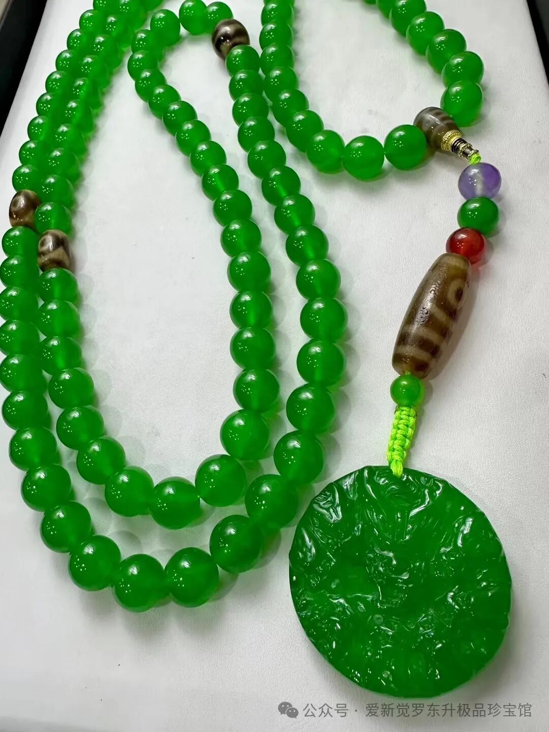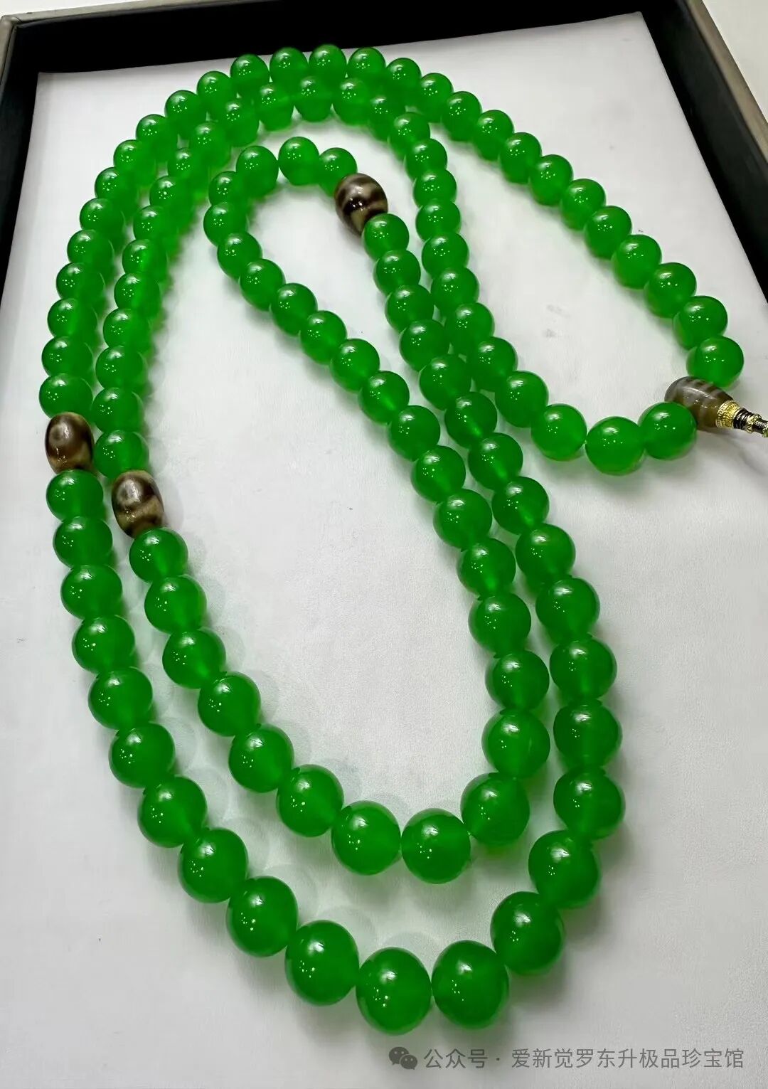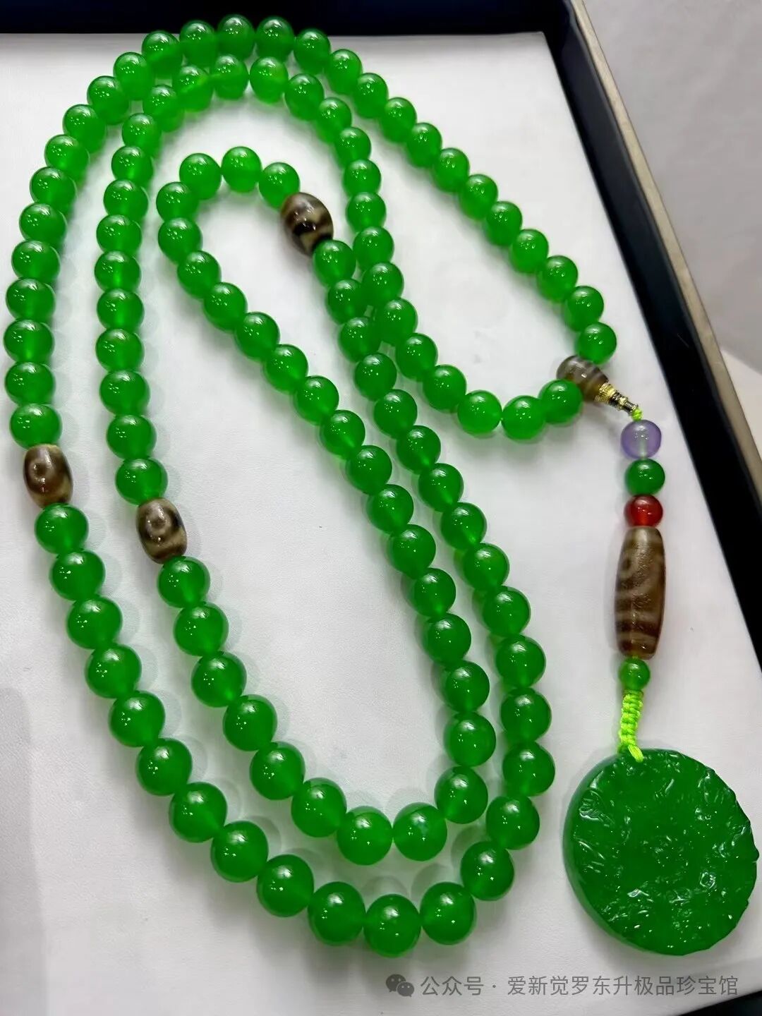 老翡翠 高冰帝王绿 完美无裂【九龙护主 九眼天珠108佛珠】珠子直径1.4mm