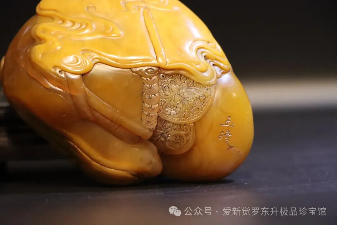 此外,政府对于文化产业的扶持也是推动全民艺术品收藏热的重要原因之一。中国政府近年来出台了一系列政策,鼓励文化产业的发展,包括对艺术品市场的规范和扶持。这些政策的实施为艺术品市场的健康发展提供了有力保障。☆【海外回流】☆ 精品田黄螭龙老坑小摆件 玉璇作尺寸: 9*6.6*4.2cm 净重:317g