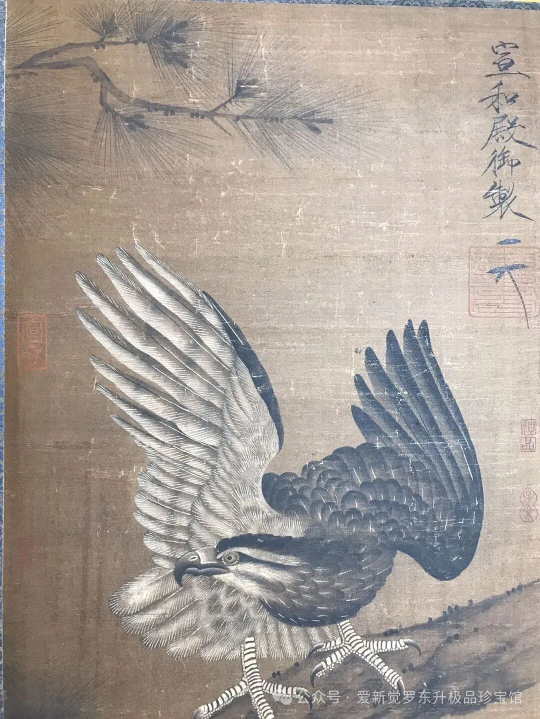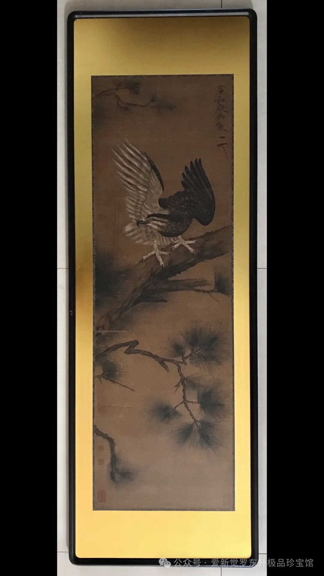 宋徽宗《鹰》日本回流带原框绢本,画心39x120框尺寸53x154。
