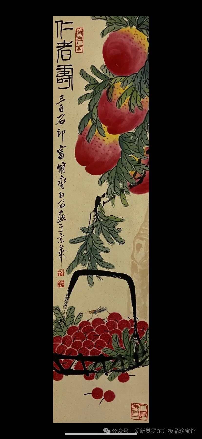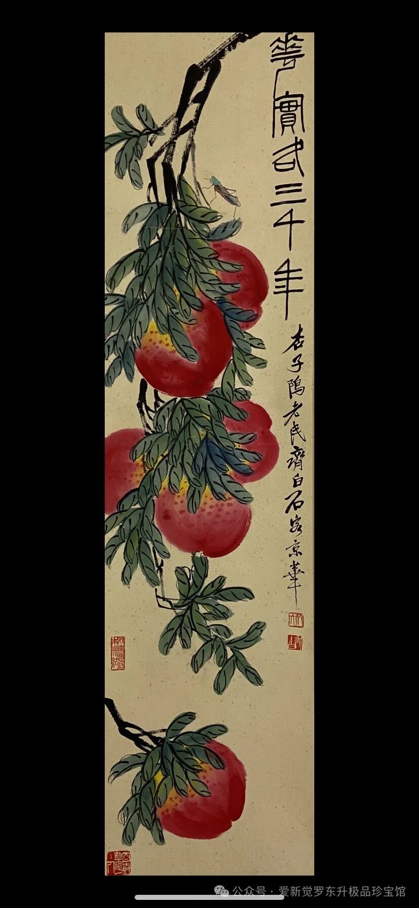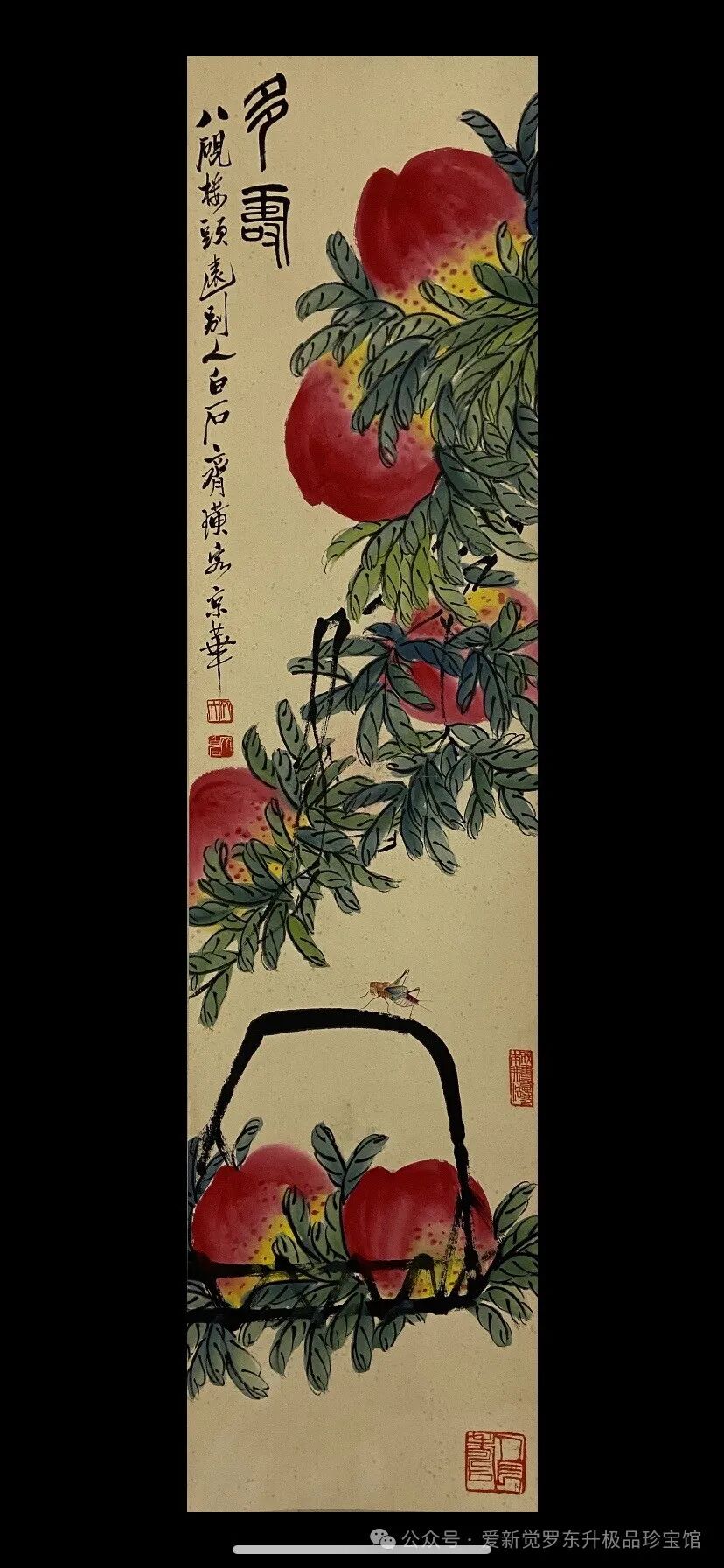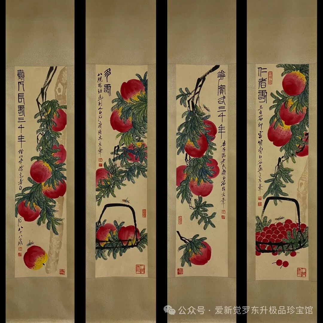 齐白石桃子四条屏精品尺寸:137-34厘米x4