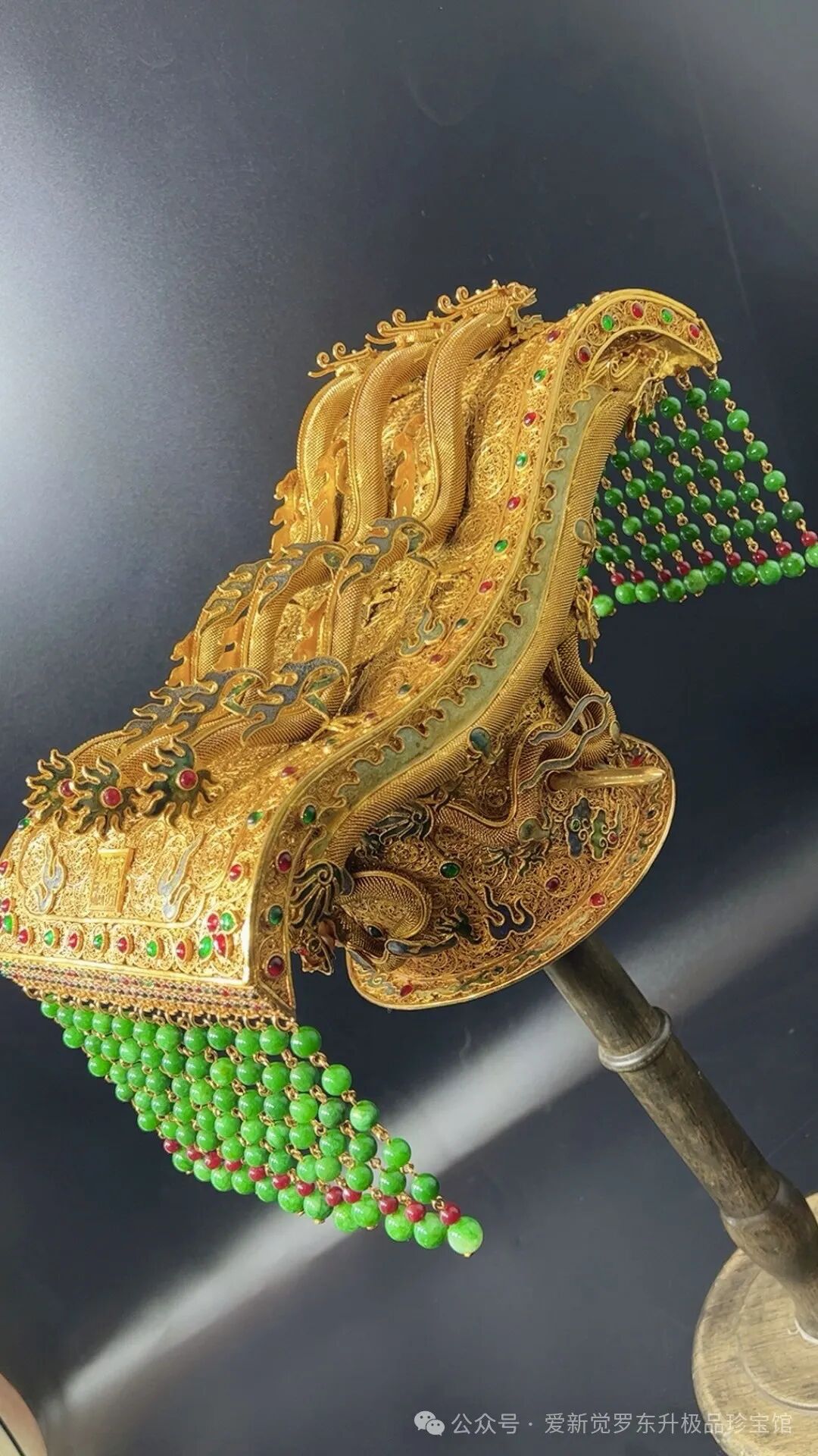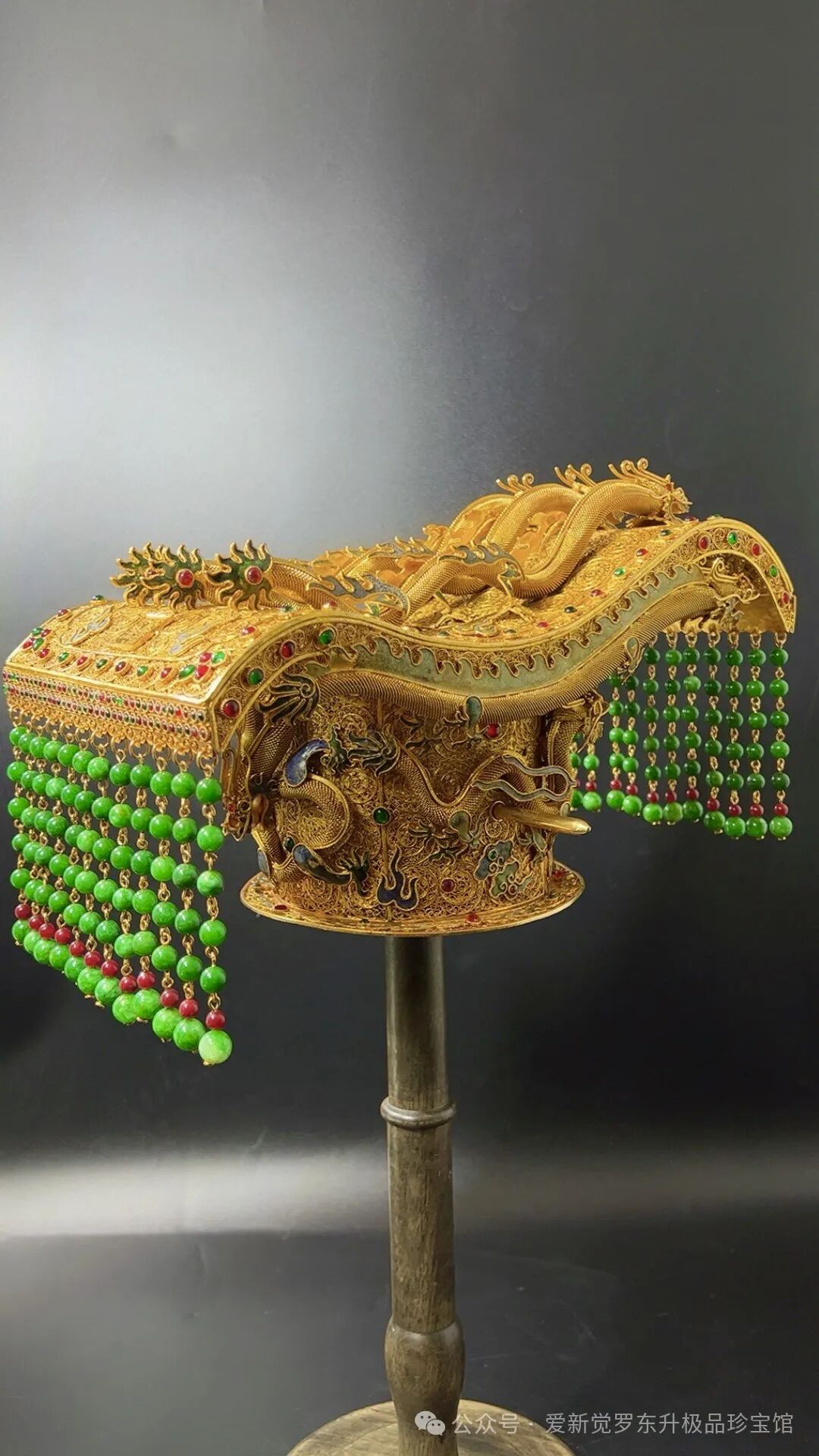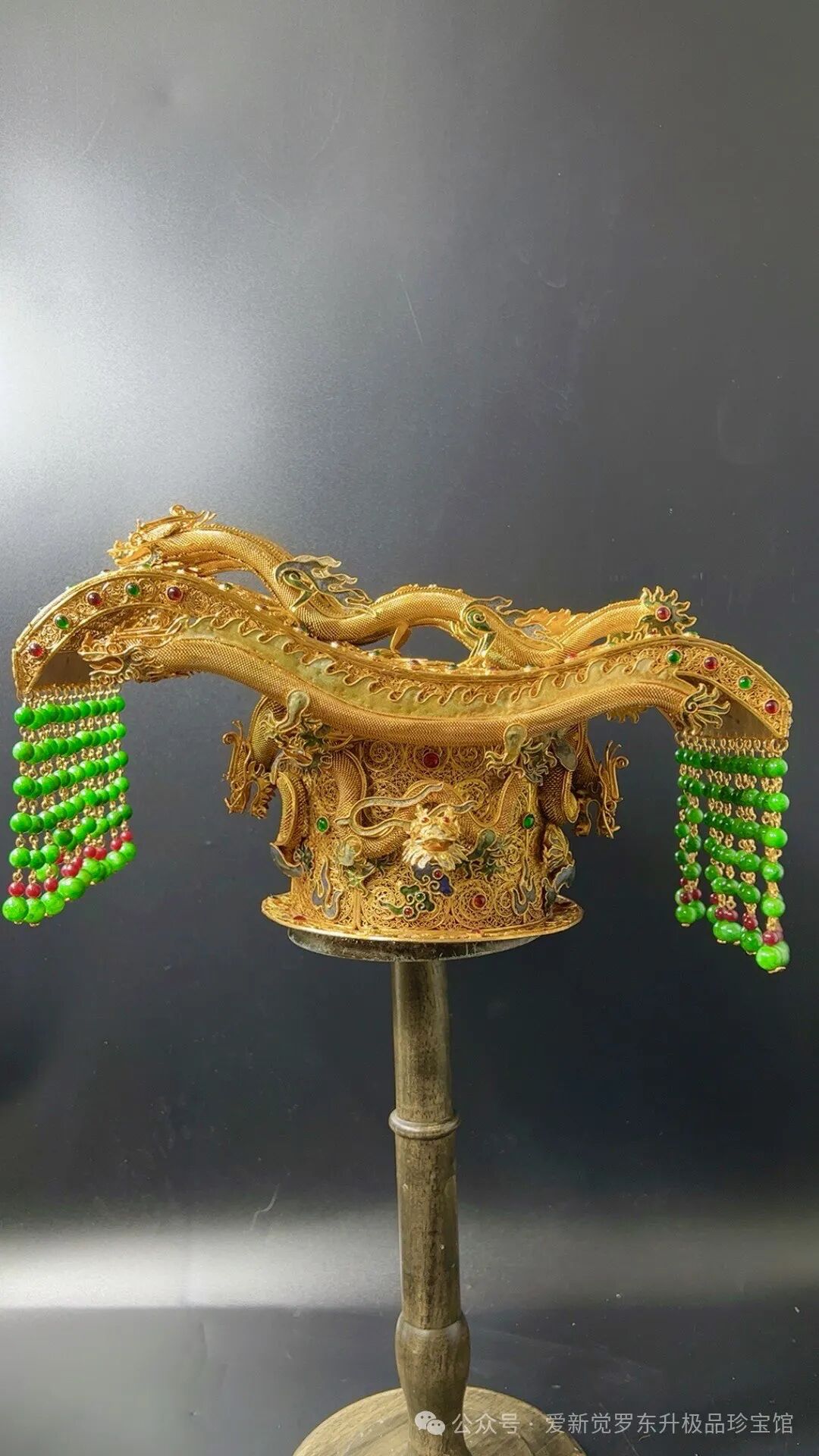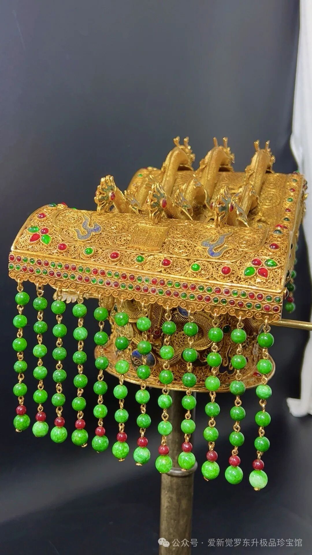 精工鎏金累丝镶嵌宝石 翡翠【九龙 龙冠】长35cm宽20cm 高19cm重3.95斤