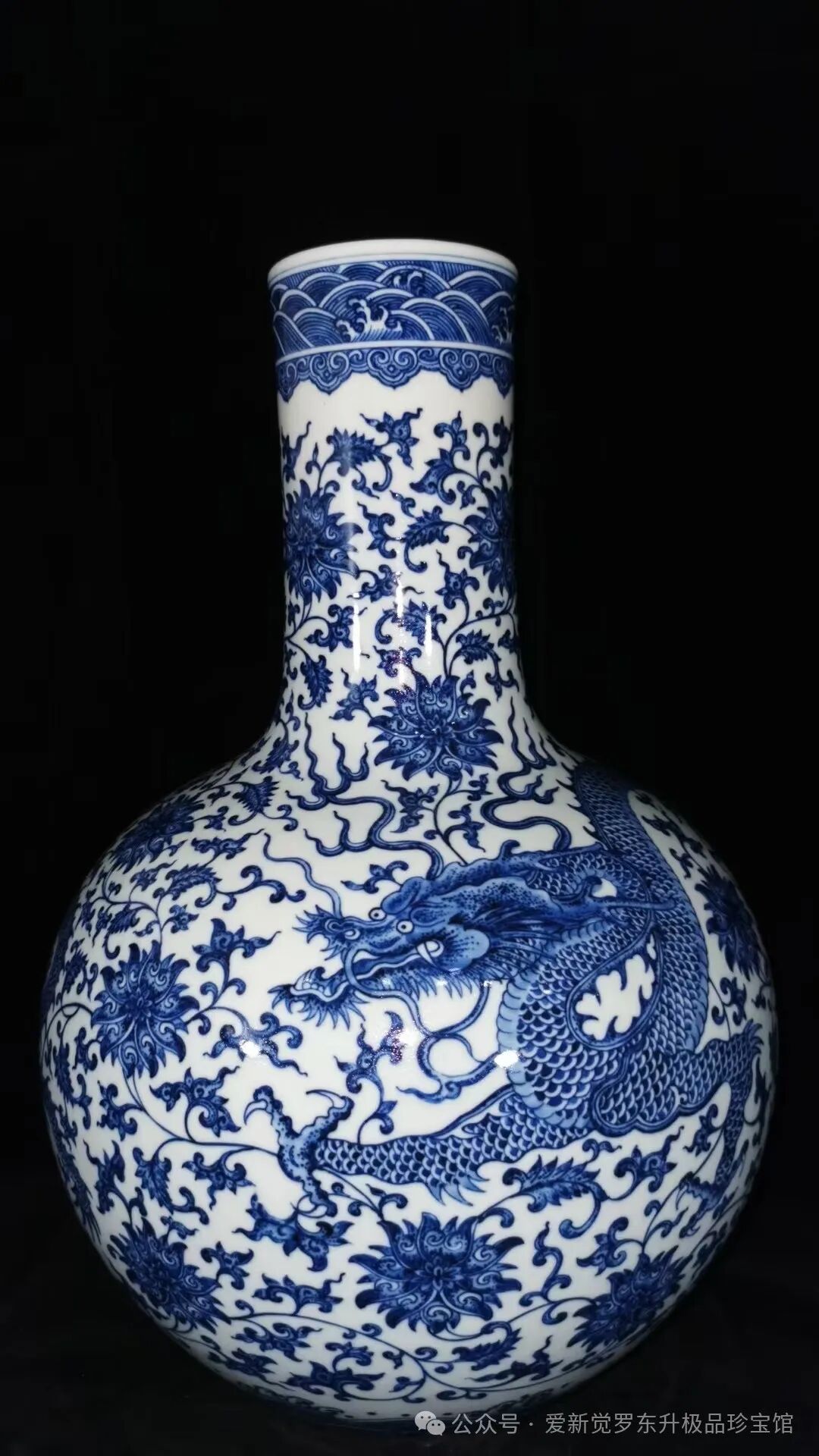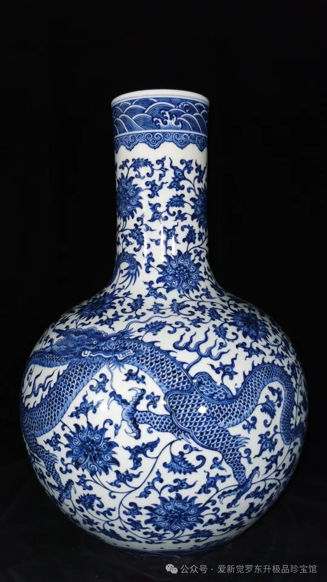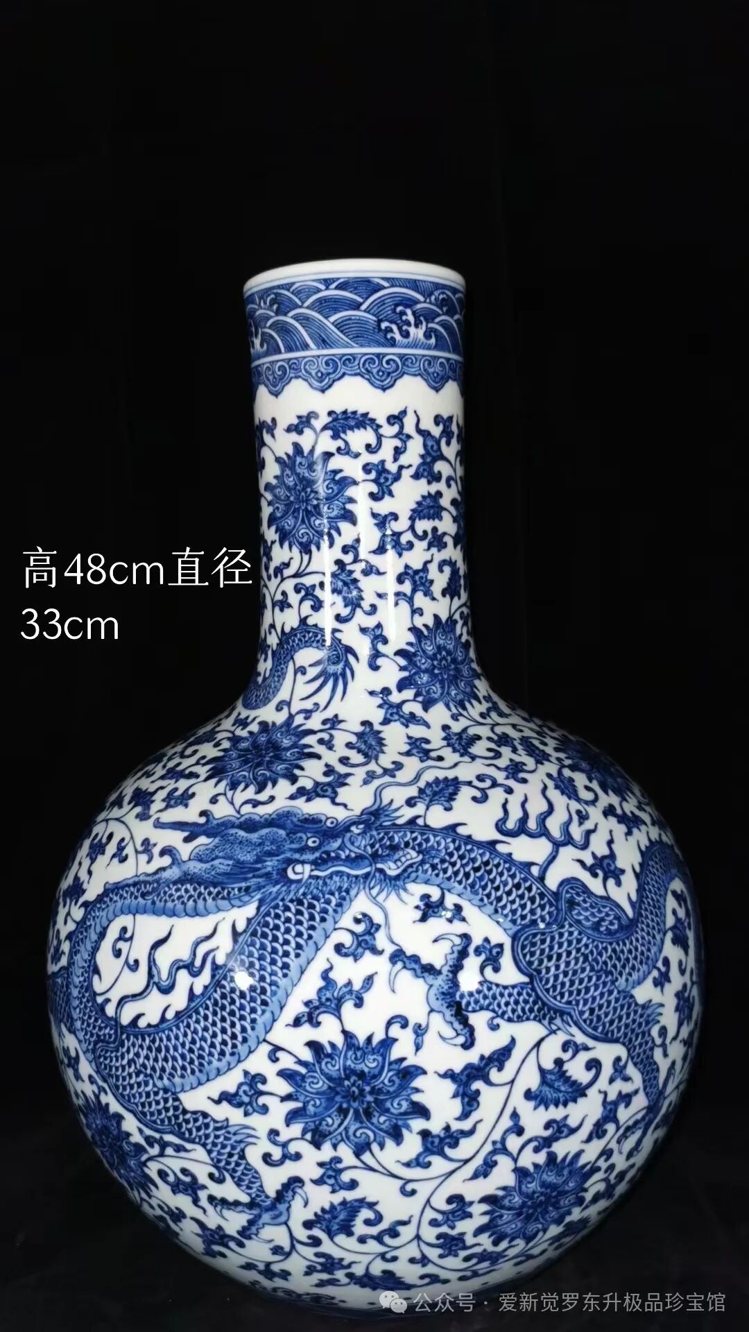 大清乾隆青花龙缠枝天球瓶,高48厘米,肚径33厘米