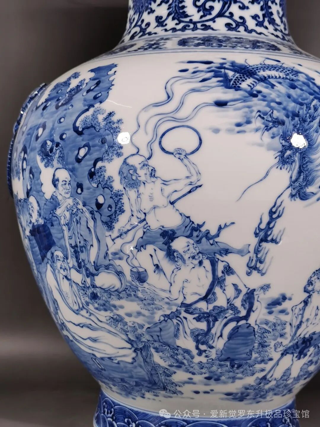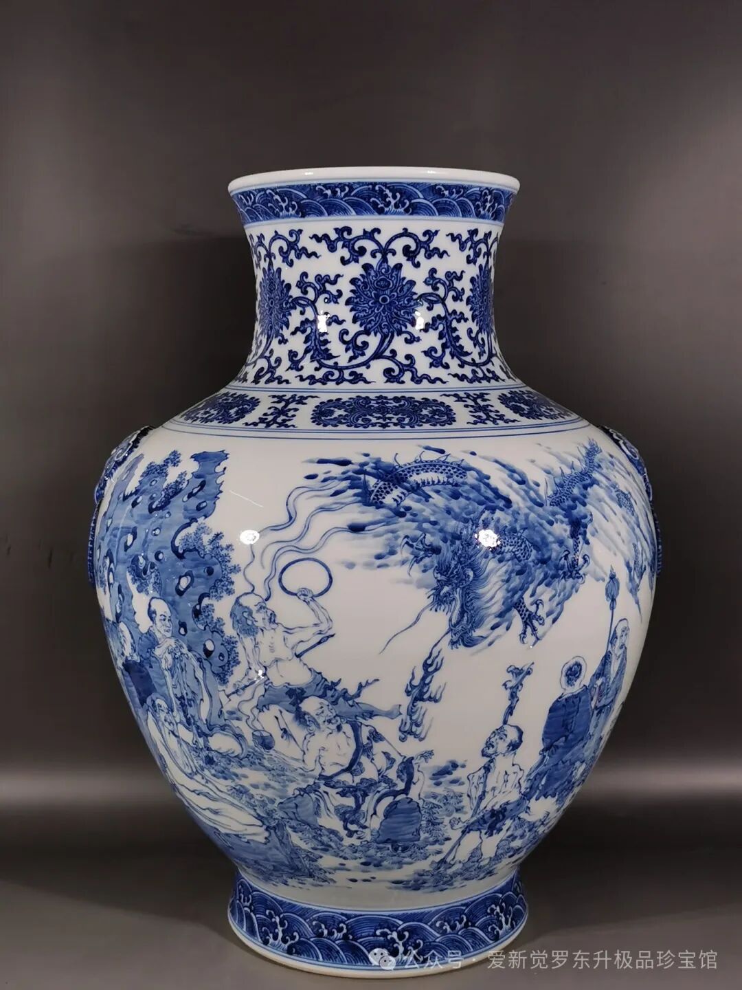 清乾隆,青花缠枝莲纹人物18罗汉辅首尊高度52.6口径19.8,肚径39