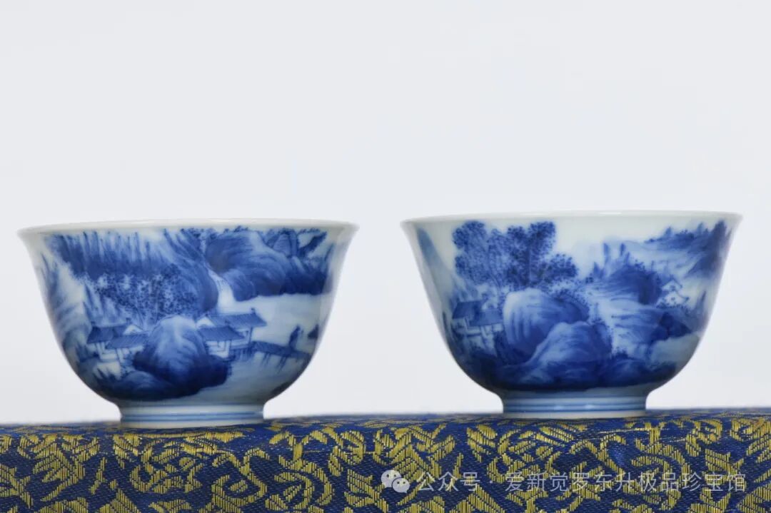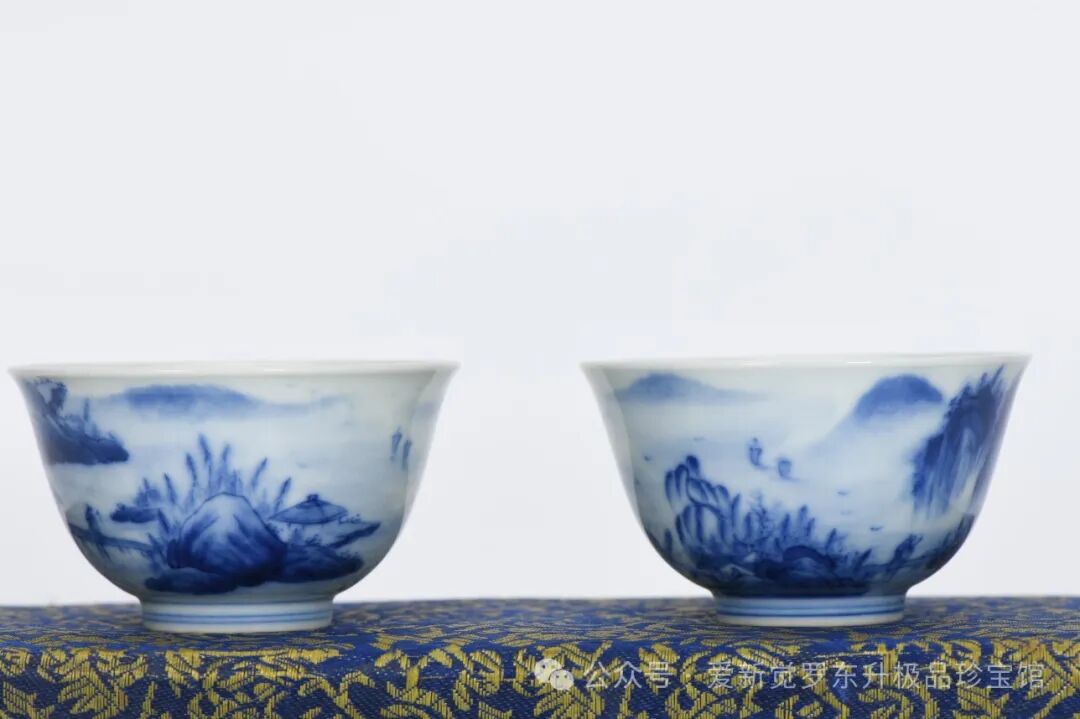 大清康熙青花山水人家小杯,高4.6厘米,口径8厘米