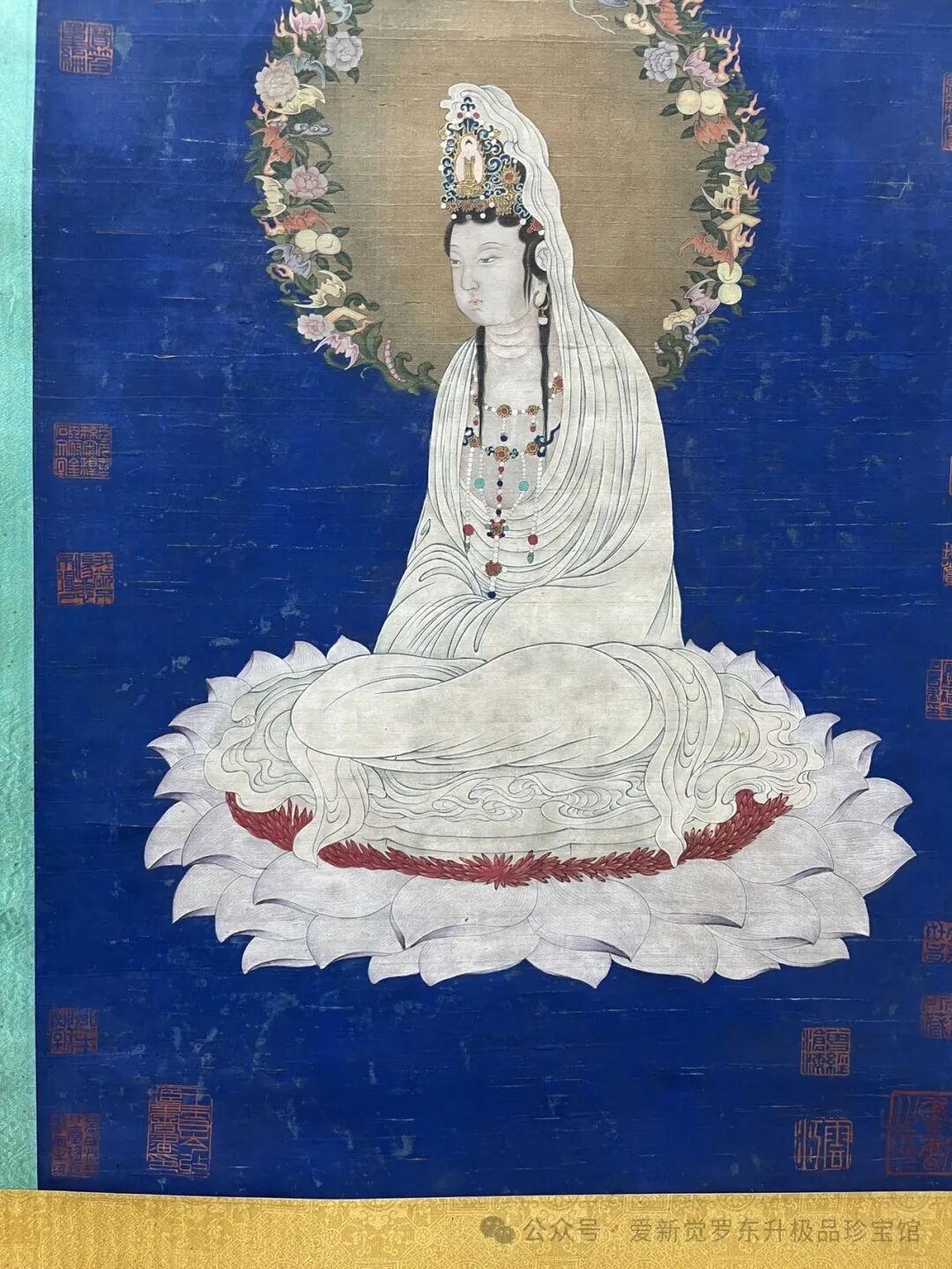 四、为2024年打开变现市场做背书随着国家新政的出台和商业银行与国家艺术品相关机构的合作深入开展,我们可以预见,未来的艺术品变现市场将更加规范和便捷。这一方面将吸引更多的投资者和收藏家进入市场,促进市场的发展壮大;另一方面也将提高市场的公信力和透明度,增强消费者信心。 旧藏.宋.刘松年.精品丝绢(菩萨像)画心尺寸:48cm*125cm。
