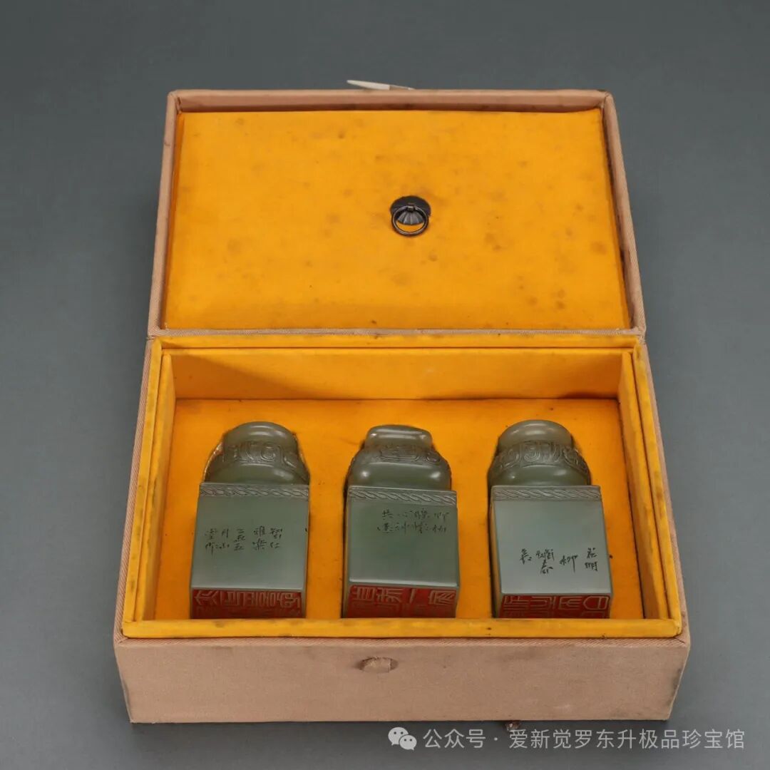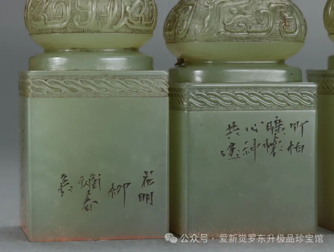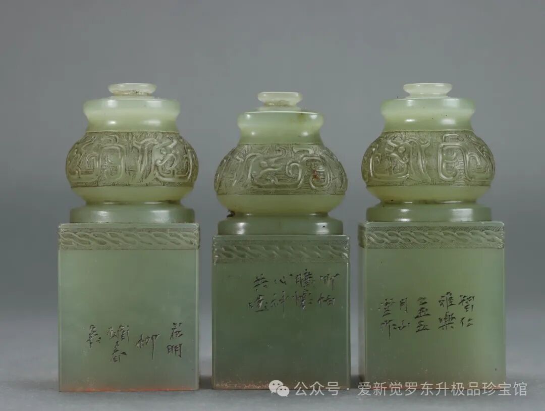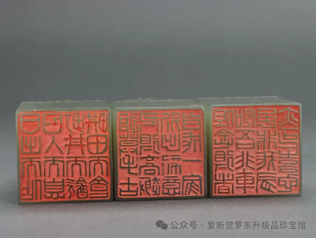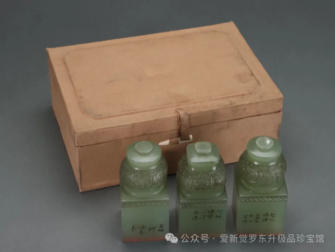 晚清 艾叶绿石印章一套。规格:宽3.6㎝高10㎝总重765g