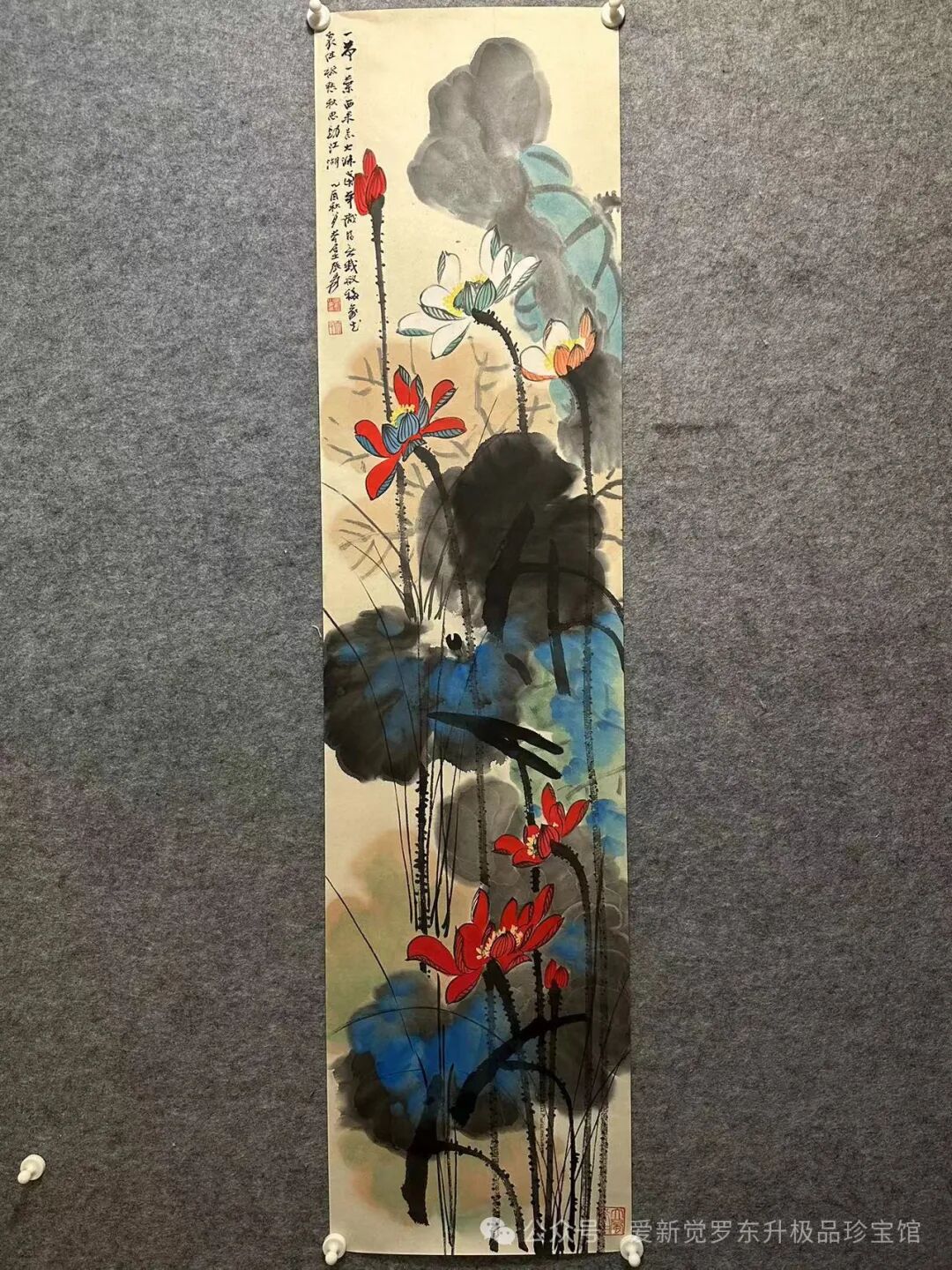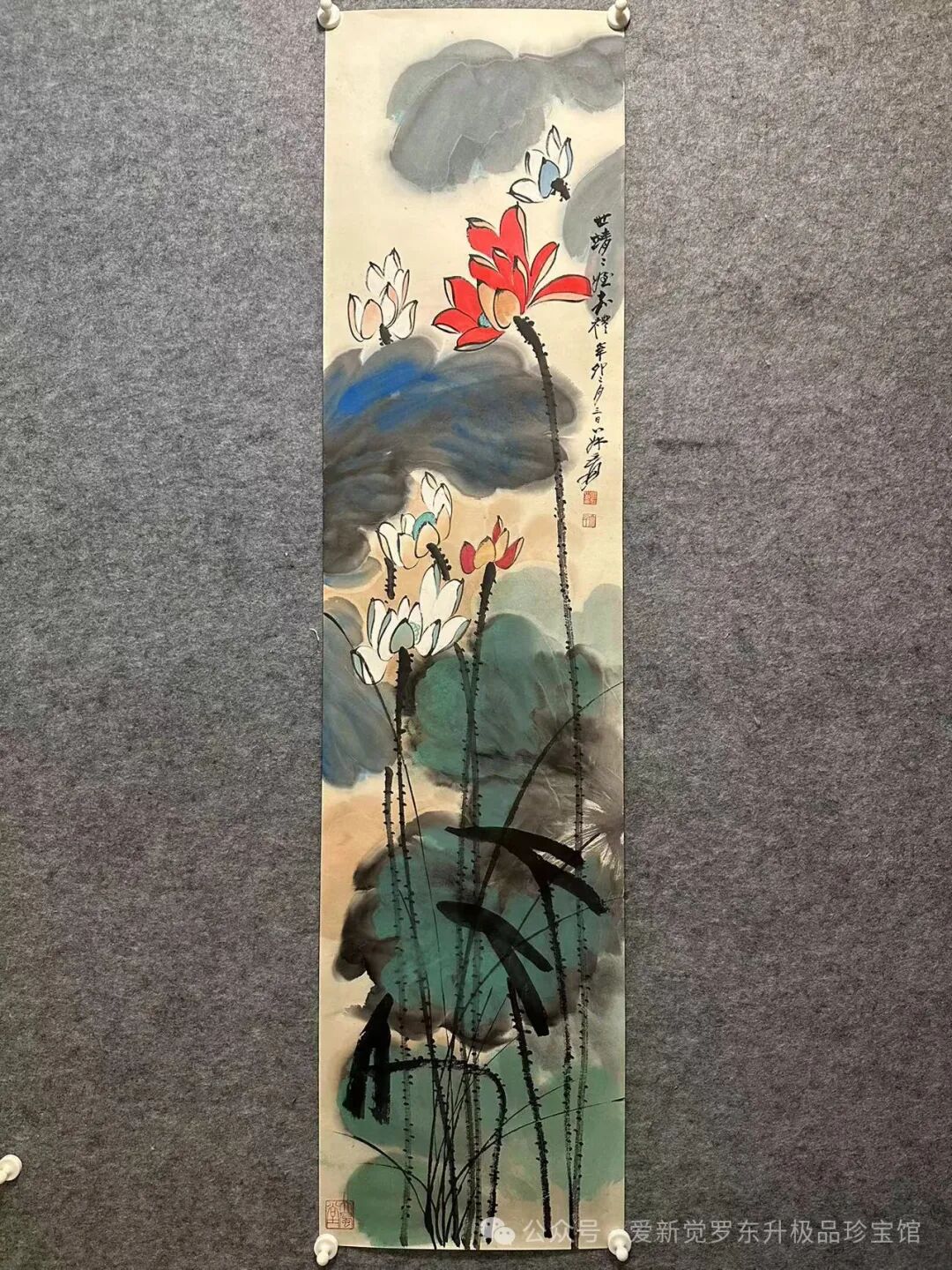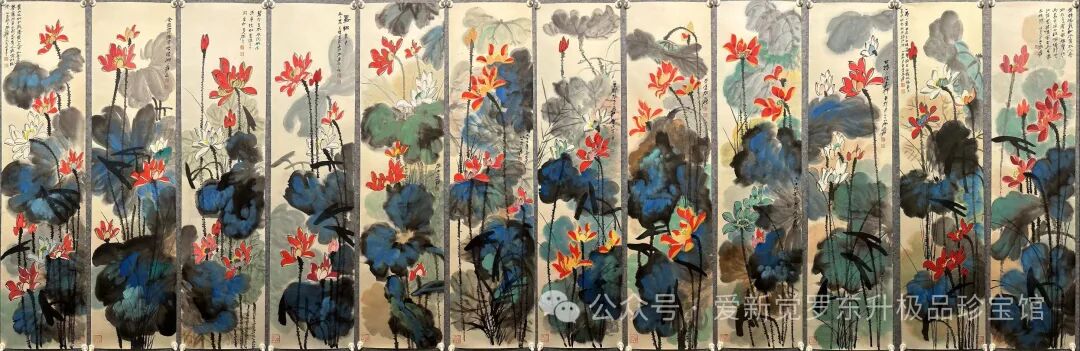 民间收藏●张大千●《荷花十二条屏》箱内十二幅张大千所画荷花图箱子尺寸:10×40×50CM画芯尺寸:139×34CM