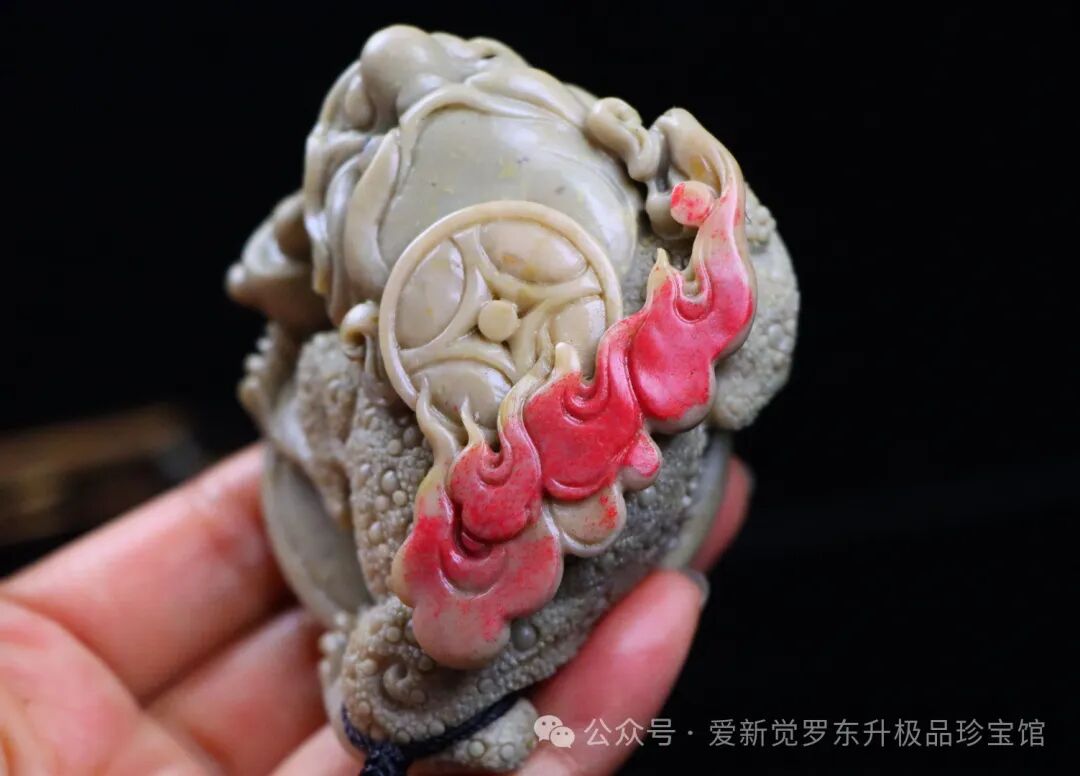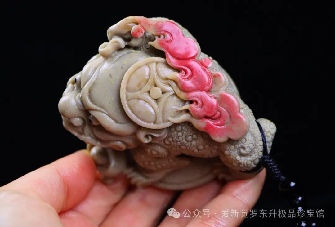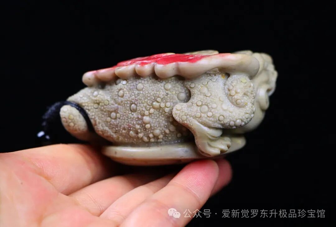 旧藏精品篆刻昌化鸡血石富贵金蟾挂件把件尺寸:77mm68mm37mm 重量:205克旧藏精品篆刻鸡血石。取料上乘,颜色漂亮,包浆醇厚,老味十足,线条流畅,质地细腻油润,收藏佳品!实物更漂亮!