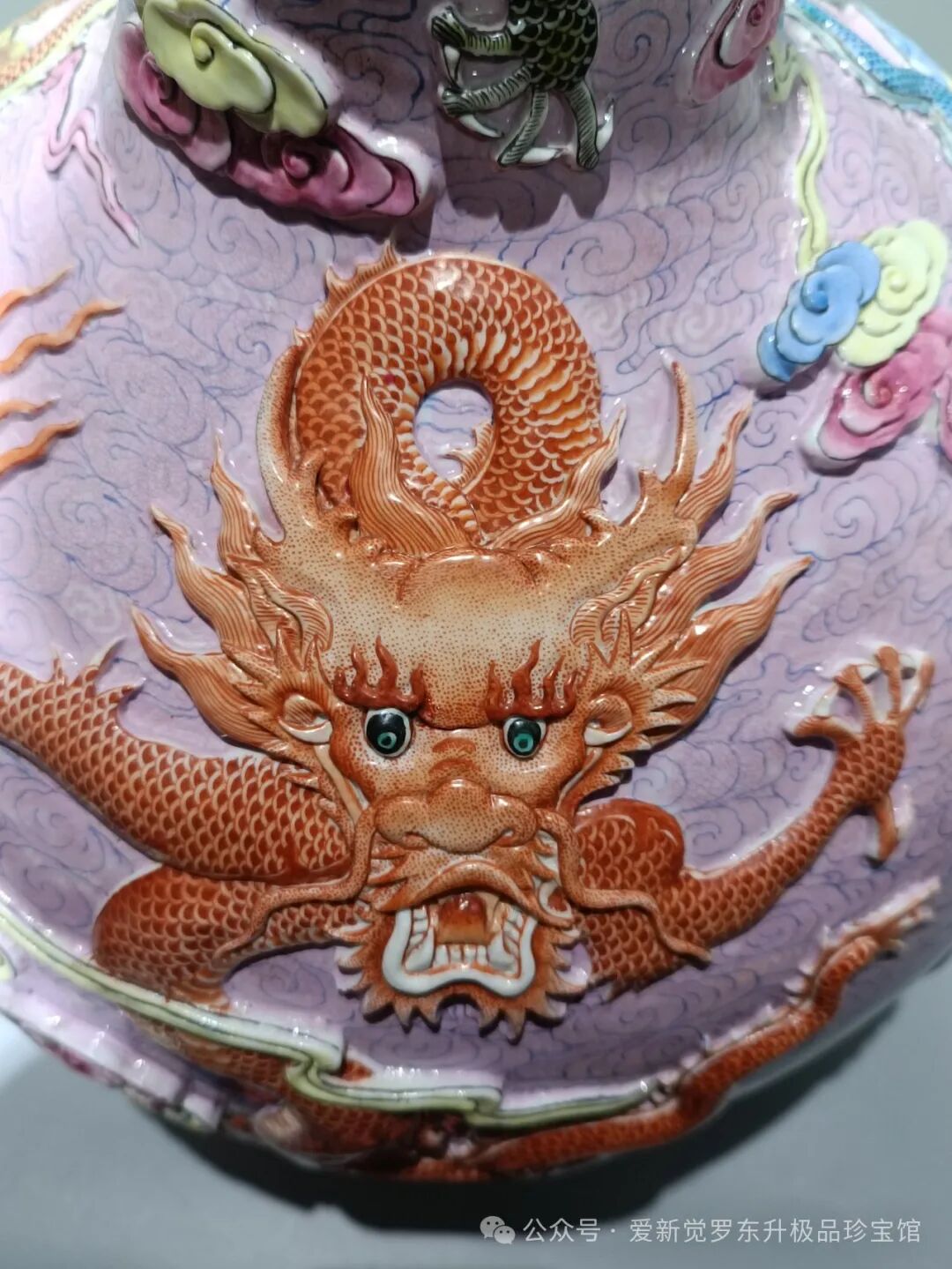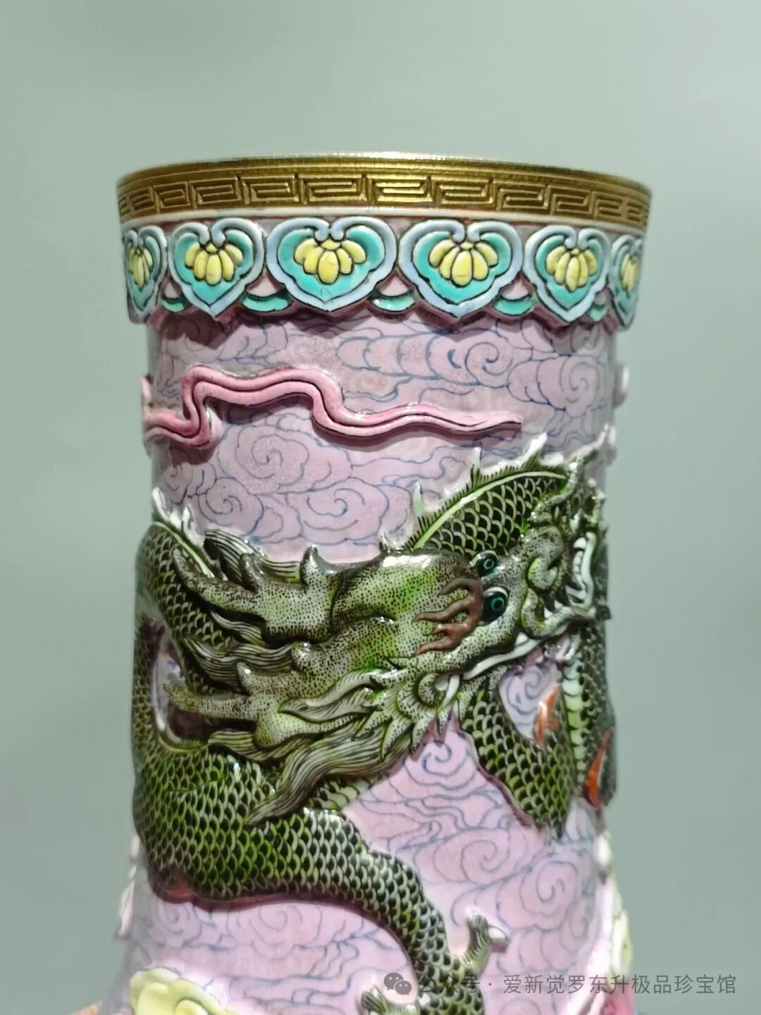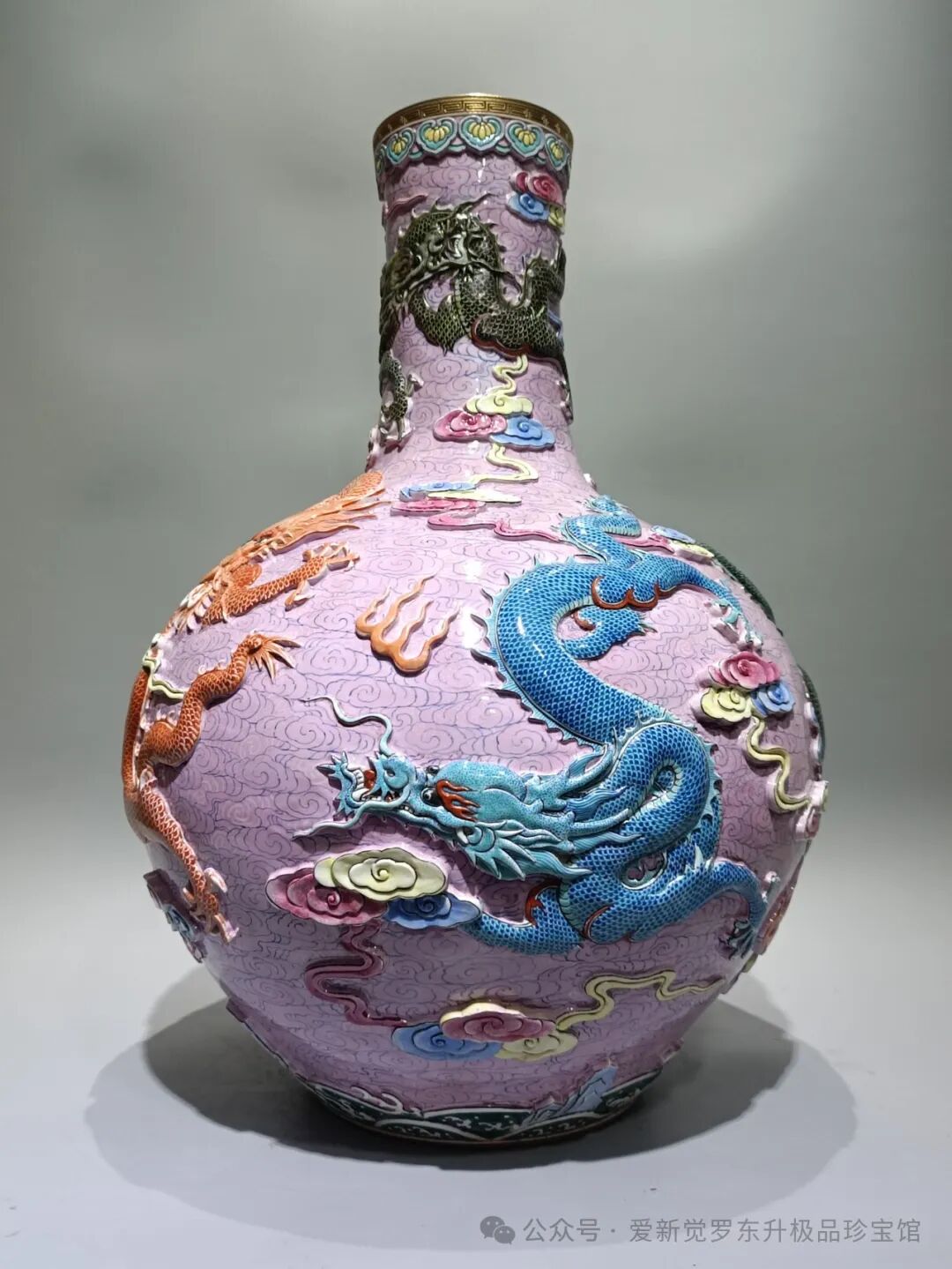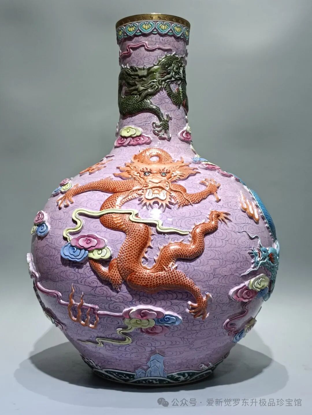 清乾隆款,粉彩宫粉地雕刻五龙海水云纹天球瓶 高:55.8cm宽:39cm
