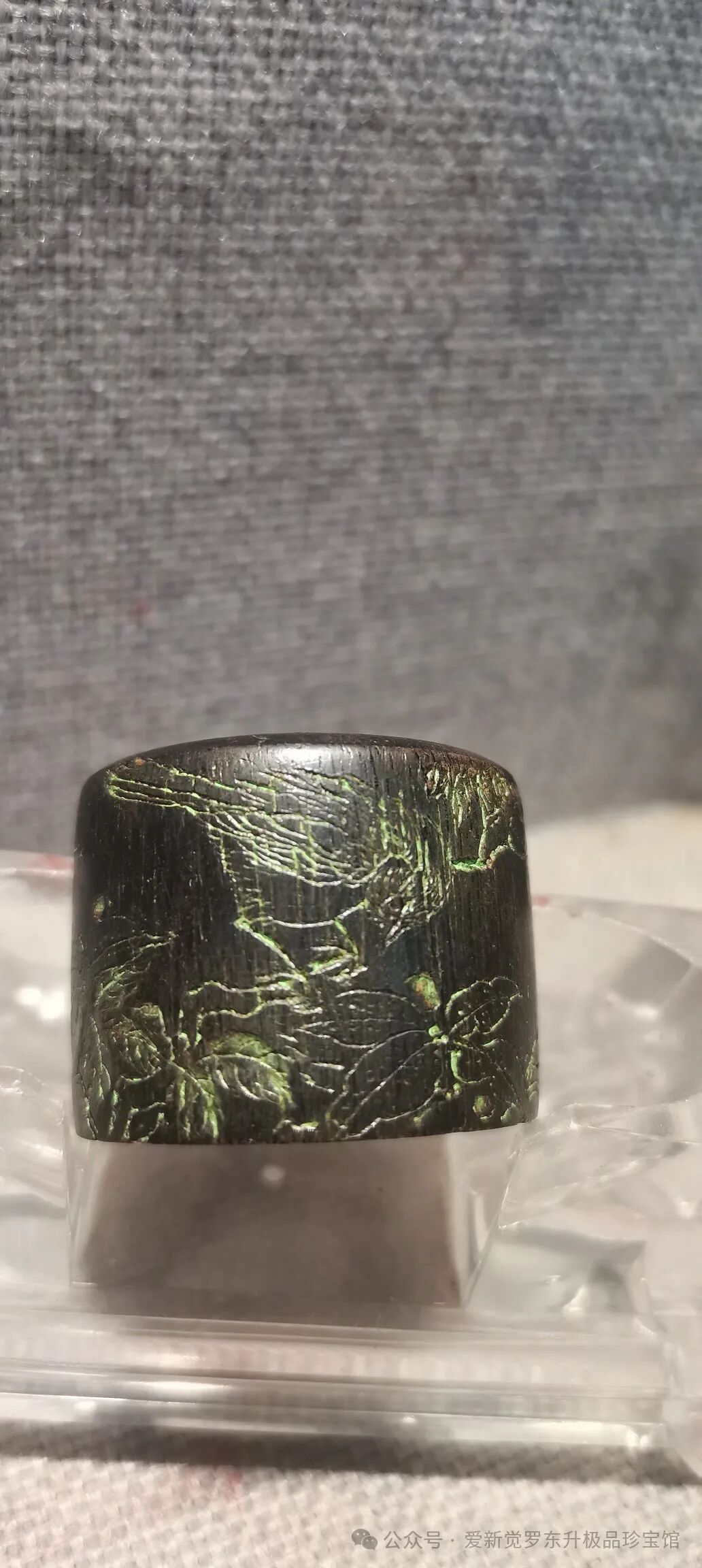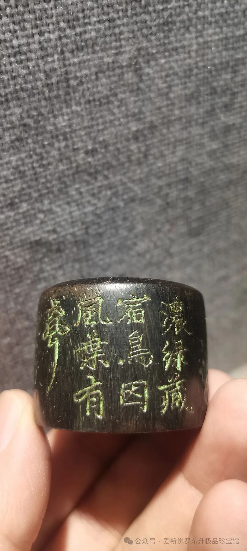 旧藏 老沉香花鸟班指一套 此藏品所取用上等沉香木为材料,刀笔有力,运转自如,遇水则沉,沉香味道清香迷人,年久不散,纹理清晰,油性好,皮壳靓,把玩佳品。尺寸3--3.8---2.4公分 重45克 锡盒重335克