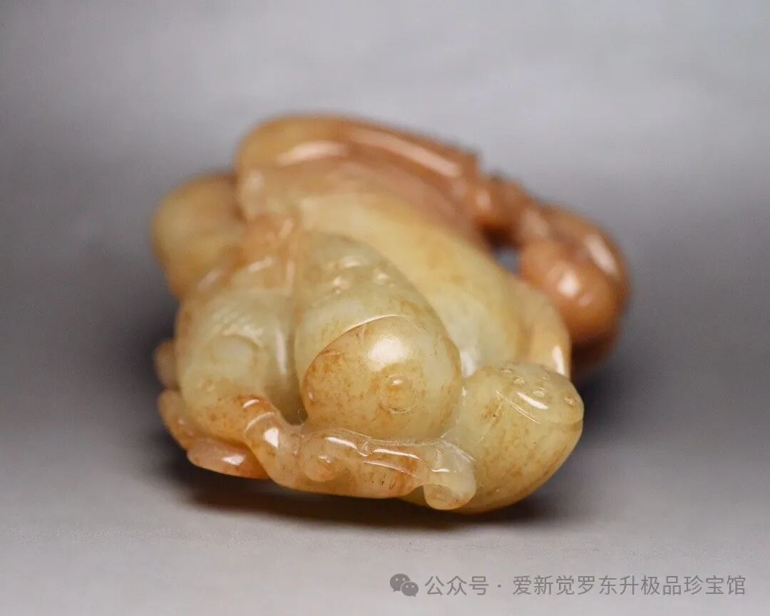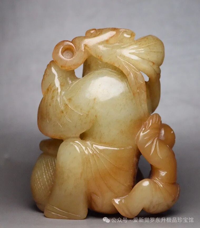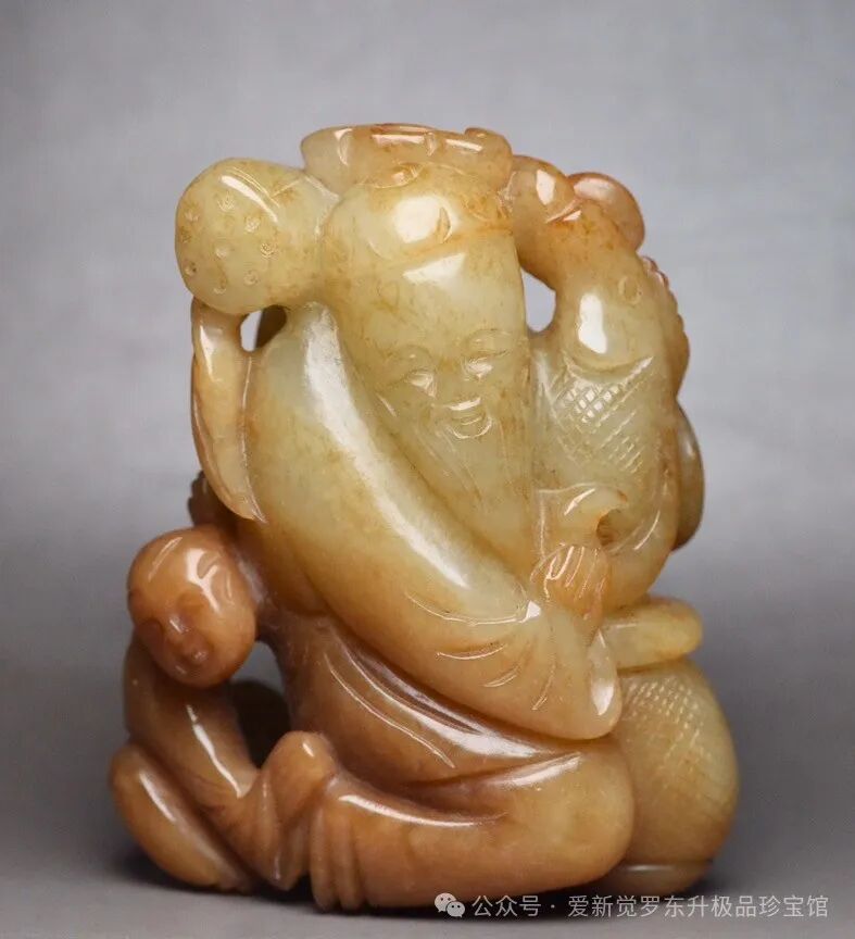 清 和田玉渔翁得利,老少同乐 规格: 7.8×6.3×3.6厘米 重 226克。 玉质温润细腻,沁色自然,刀功老道,皮壳包浆一流,雕刻生动,线条流畅,品相完美!