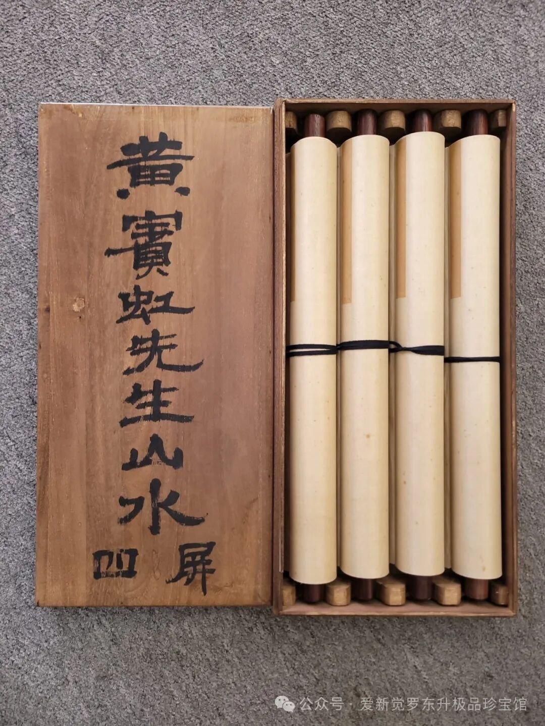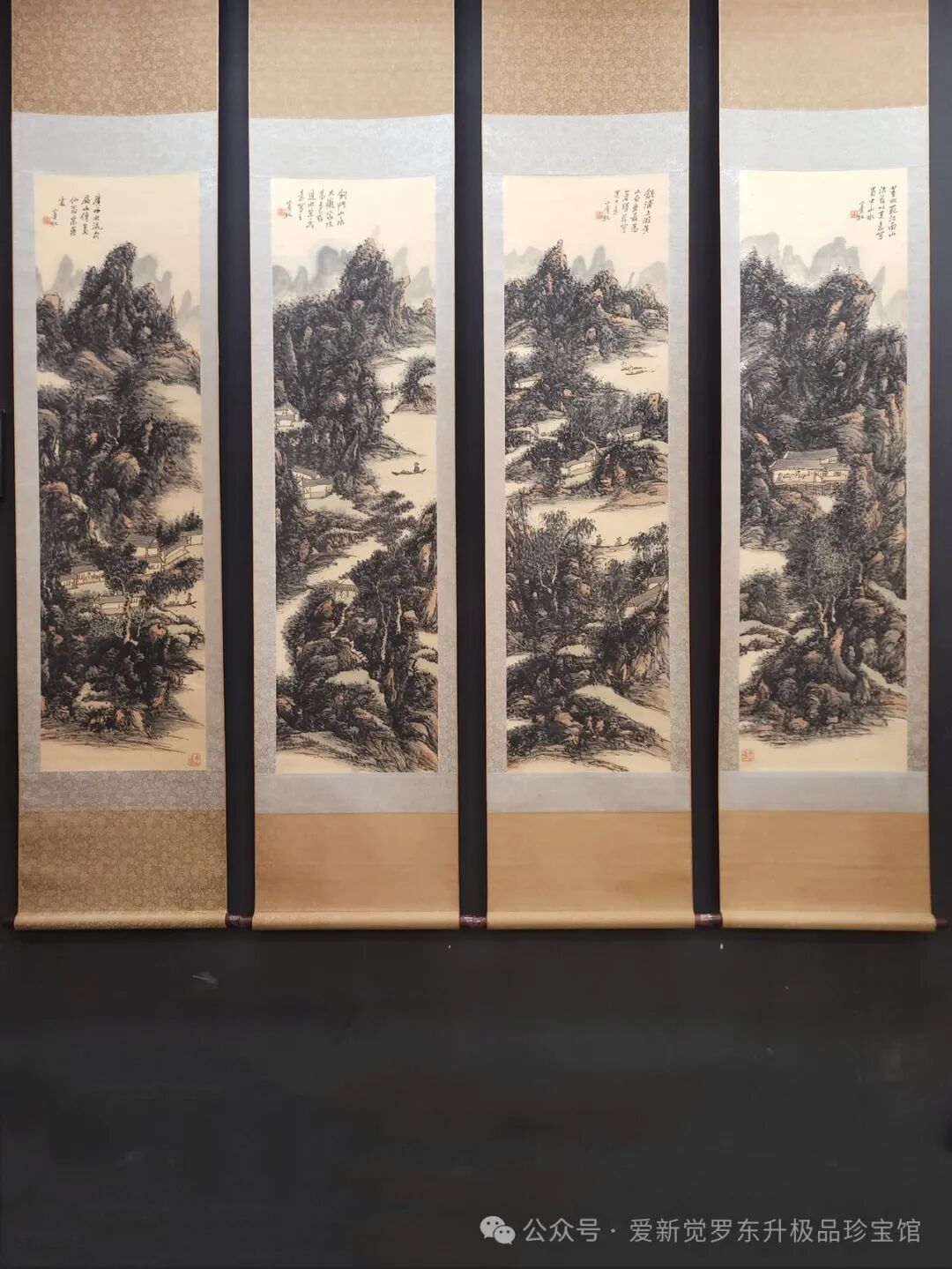 黄宾虹 精品纸本山水四条屏(含木盒)单屏画心尺寸37.5x136.5cm