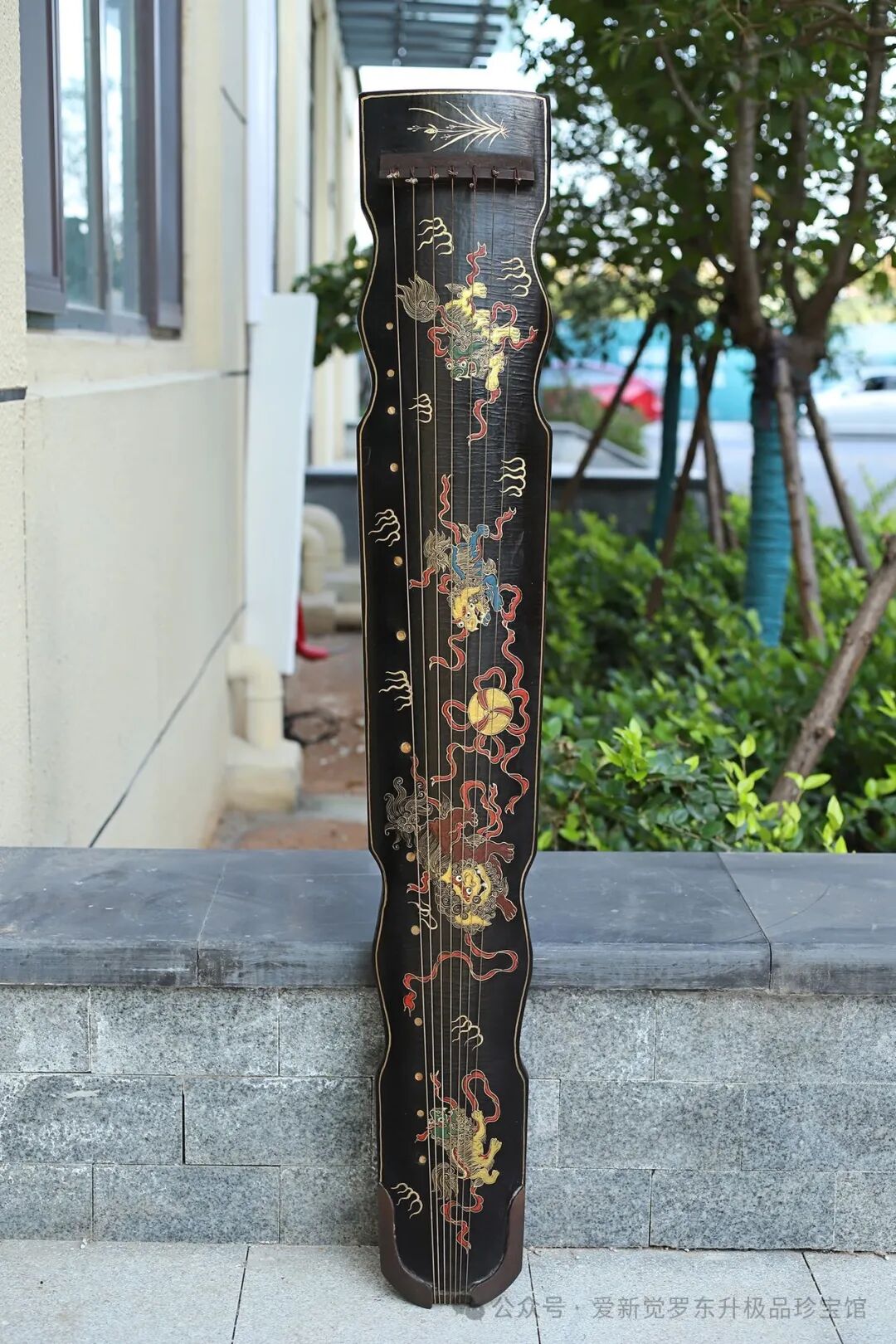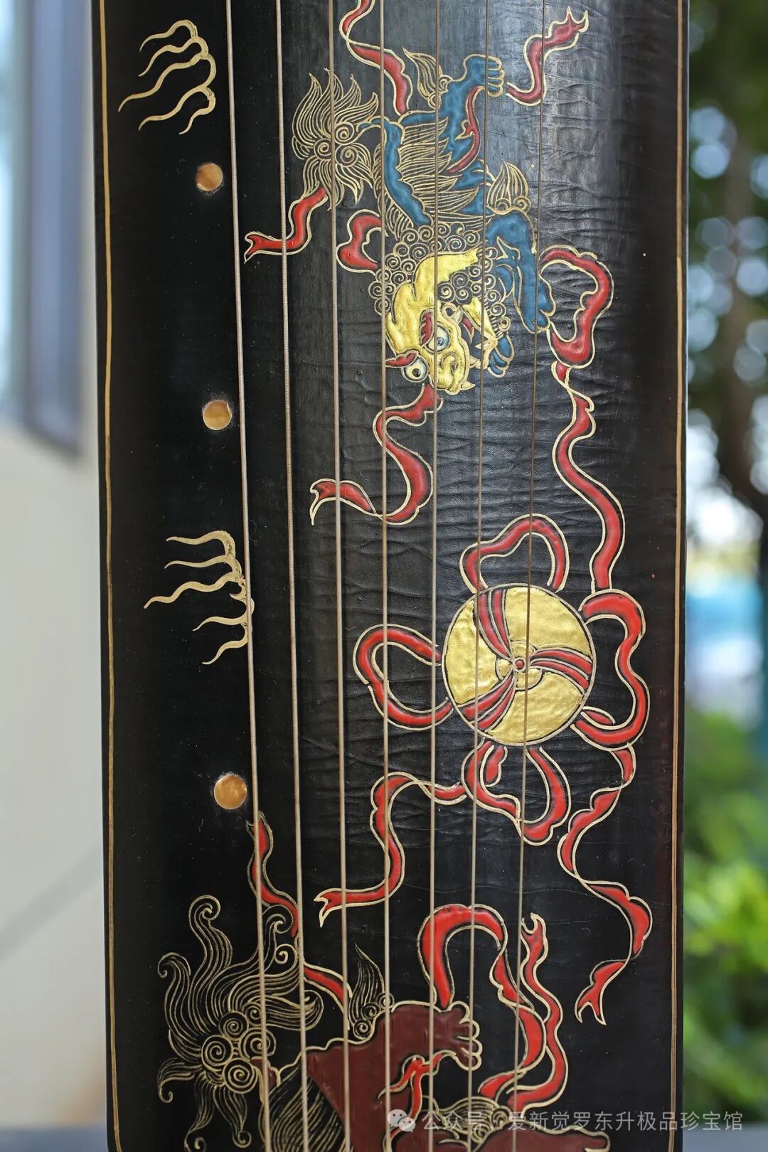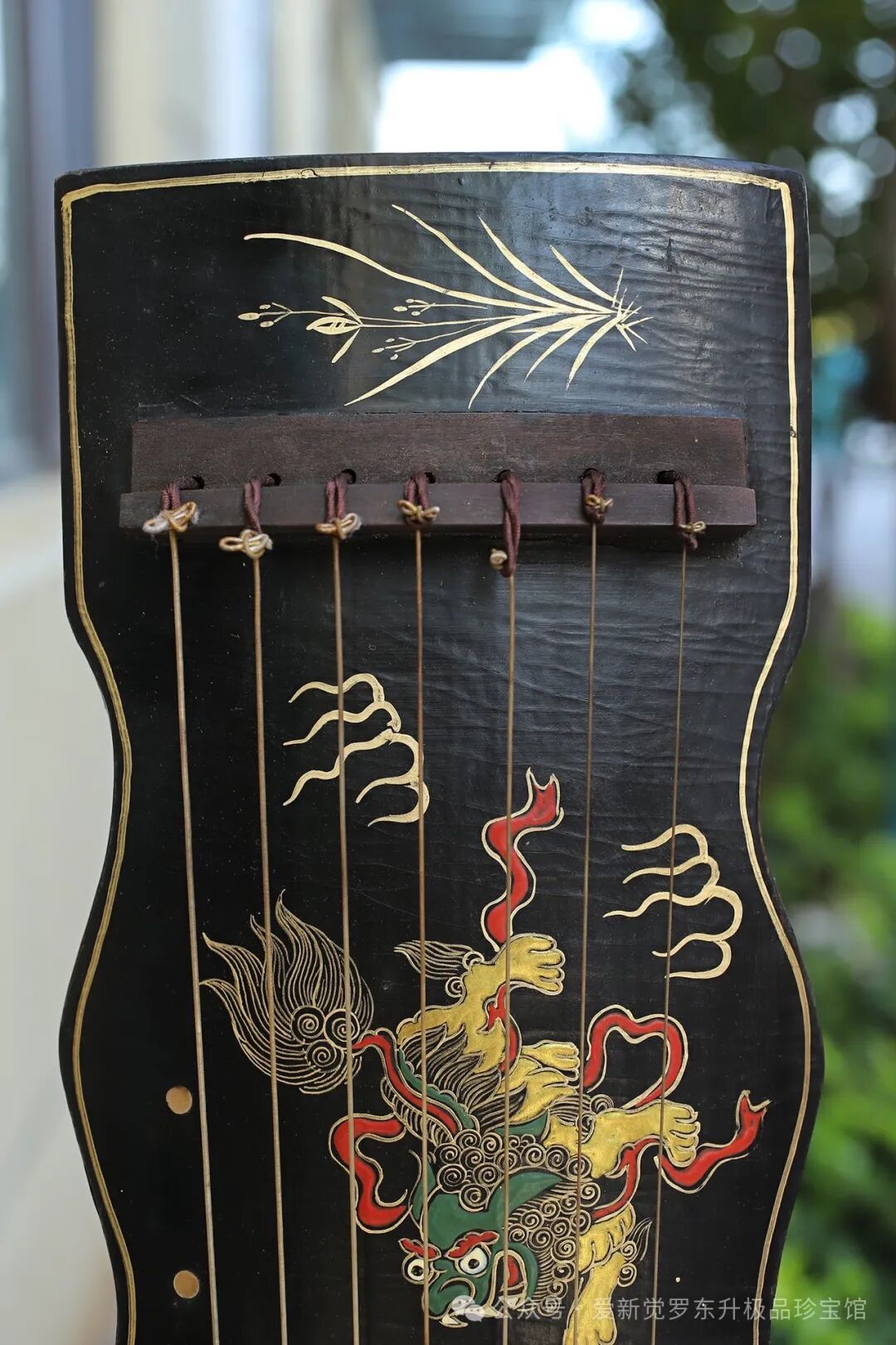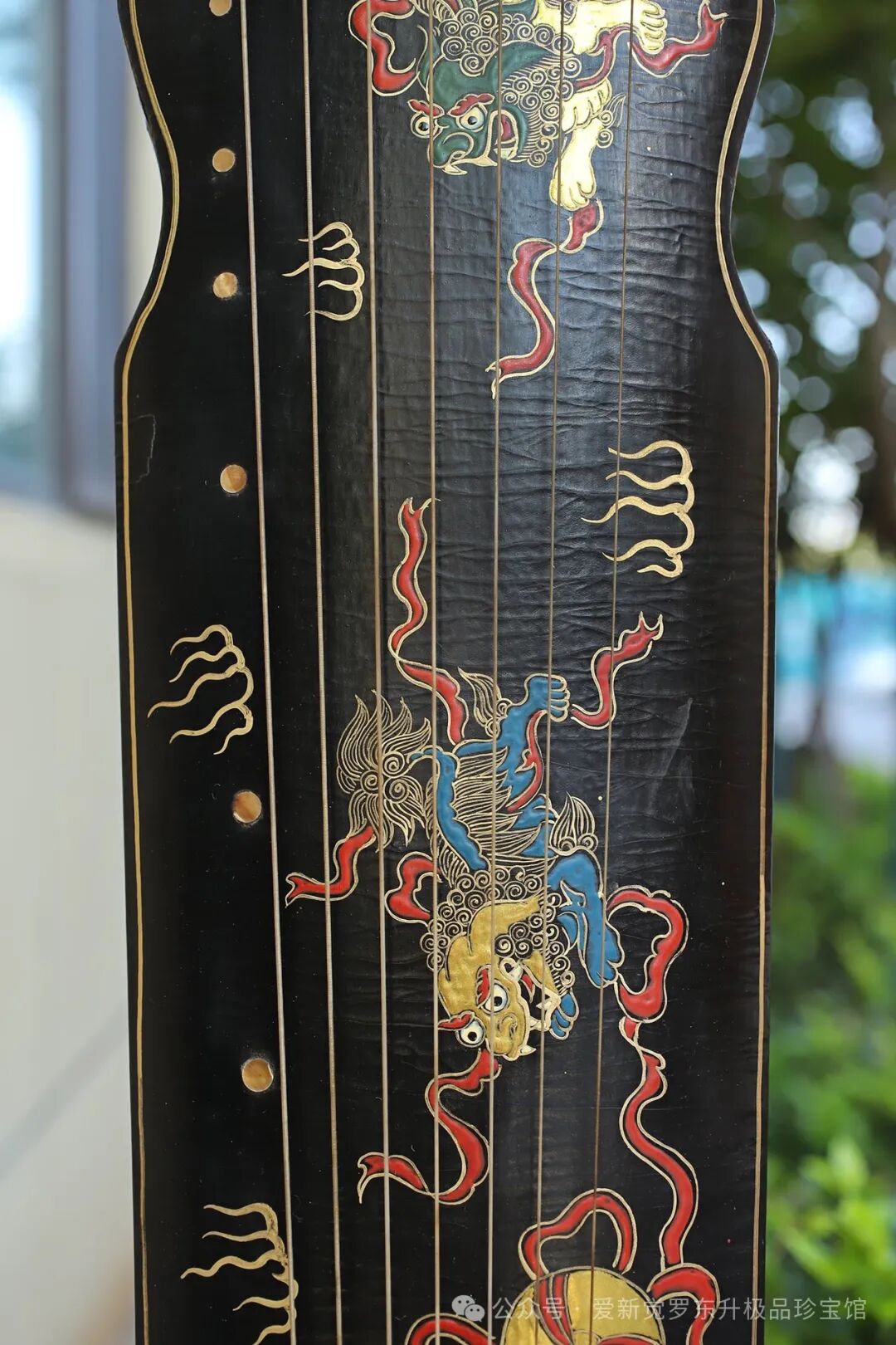 旧藏木胎漆器彩绘民族古琴乐器,古琴长度122厘米宽21厘米厚8厘米,