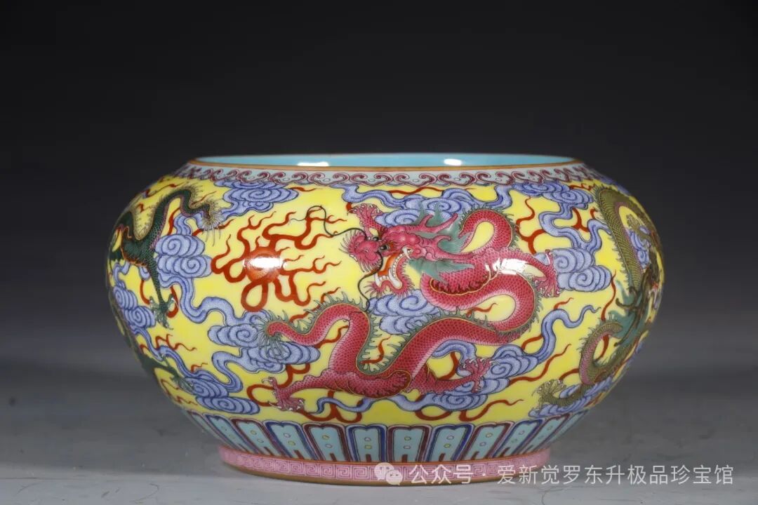 清乾隆:黄色龙纹祥云水浅高11厘米 口径13.5厘米 底径10.5厘米